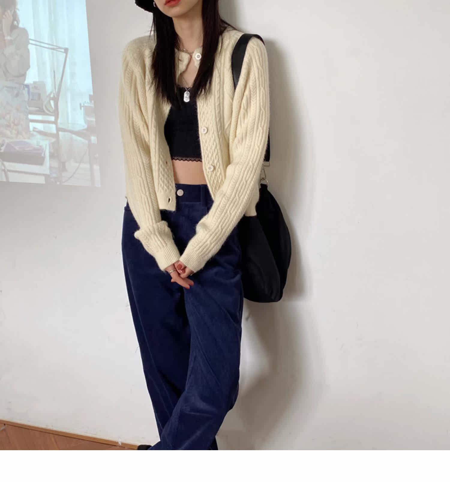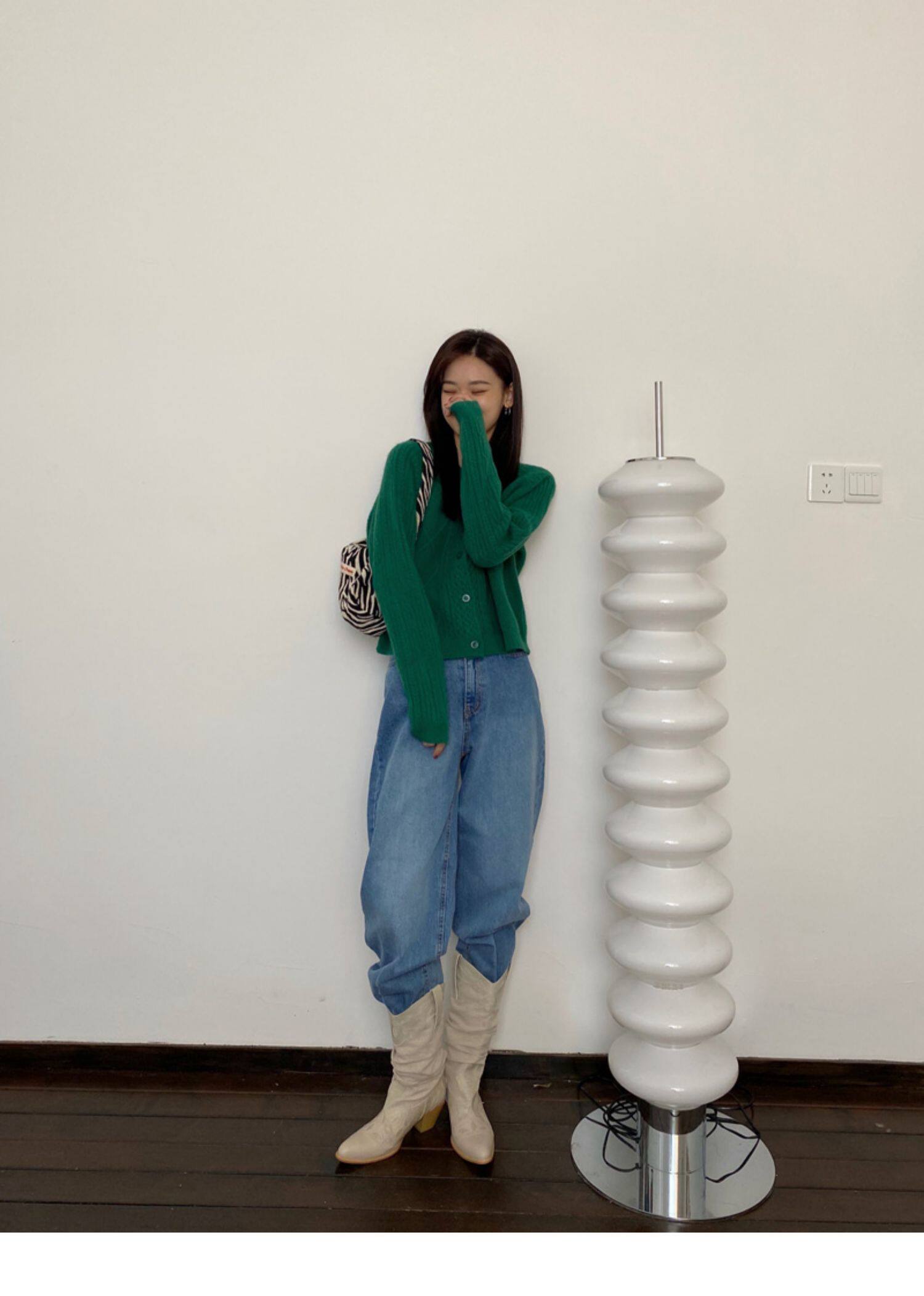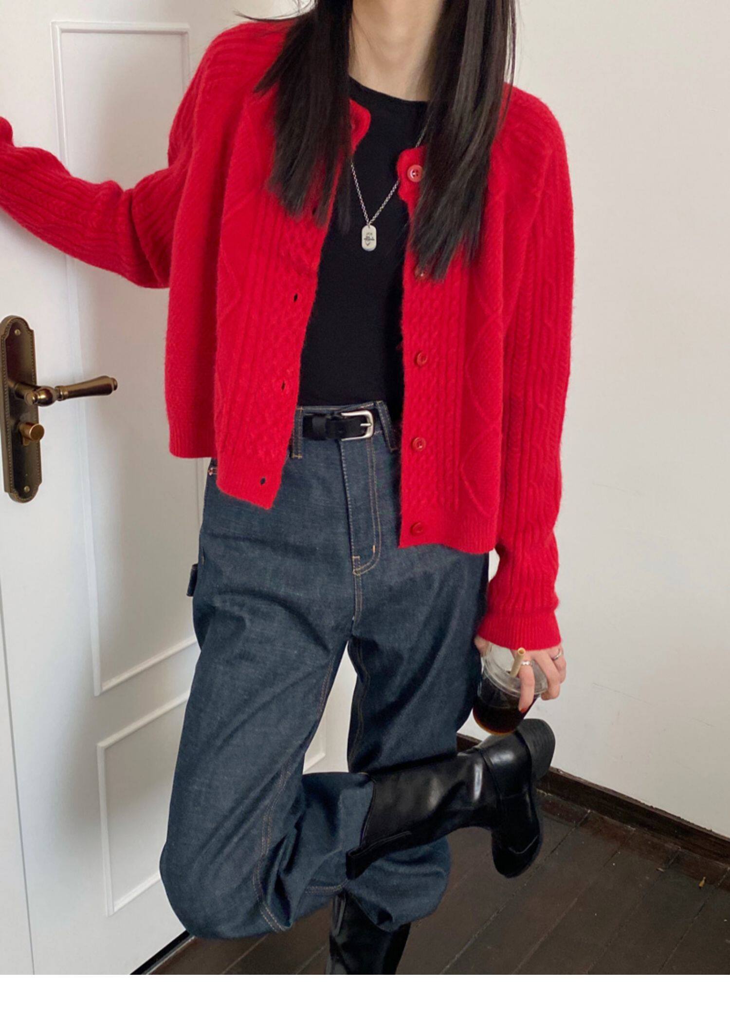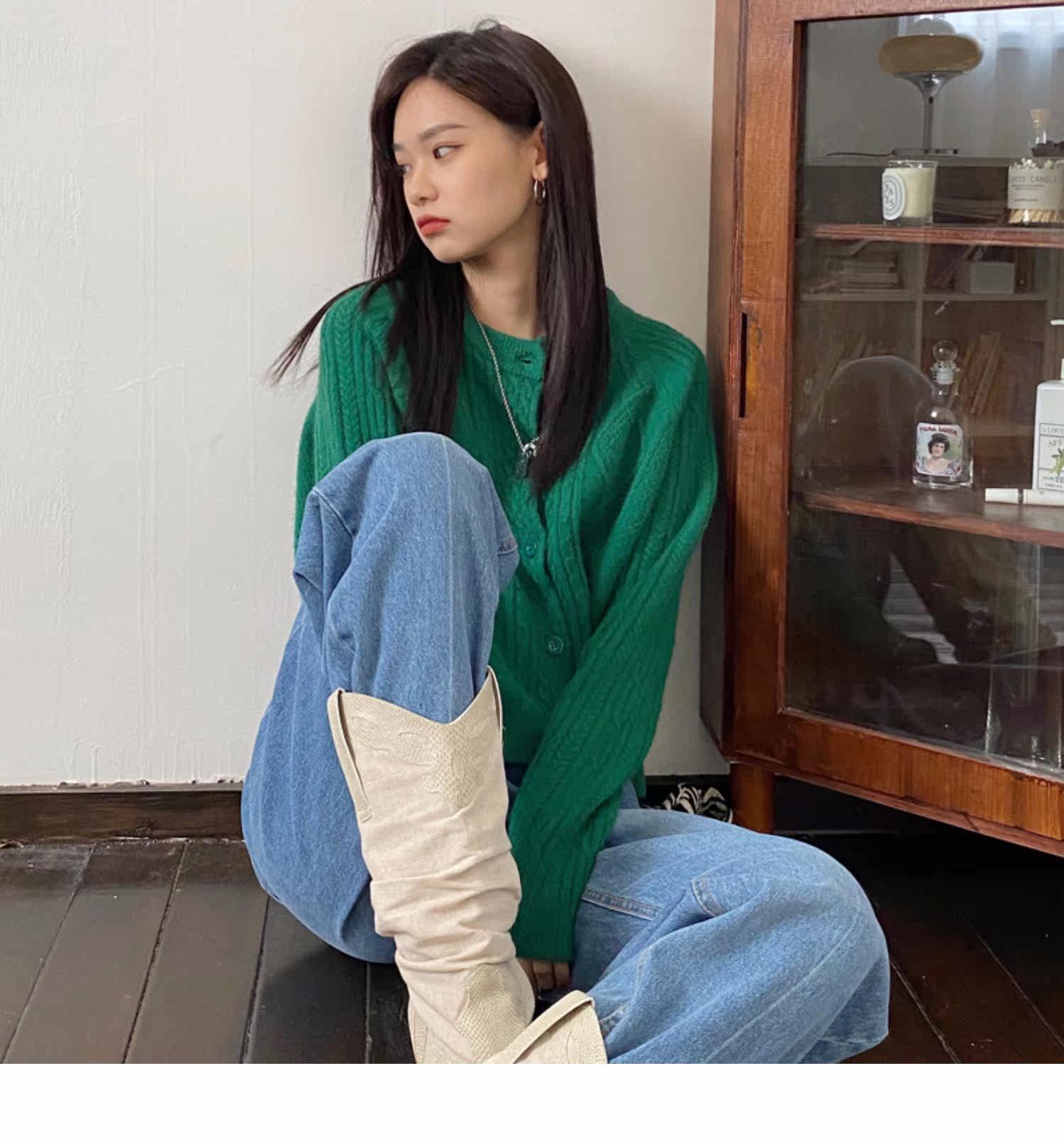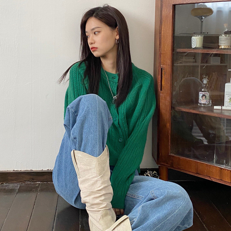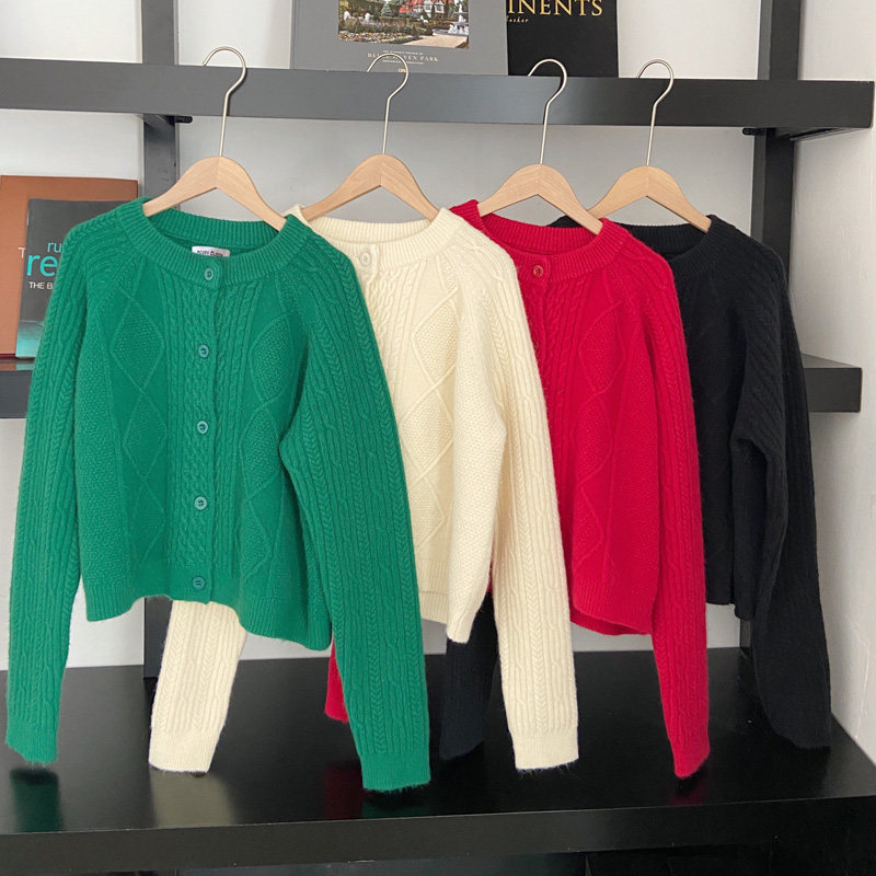 Брендовый зеленый свитер, ретро кардиган, короткая трикотажная куртка с ромбовидным узором, в западном стиле, популярно в интернете