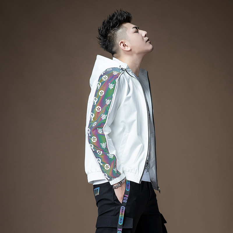 Светоотражающая трендовая куртка с капюшоном, в корейском стиле, европейский стиль