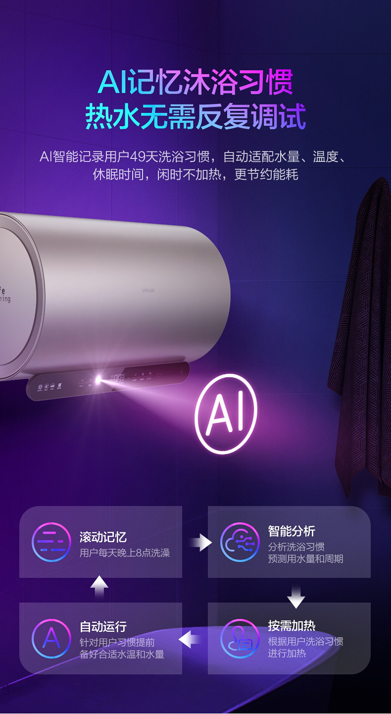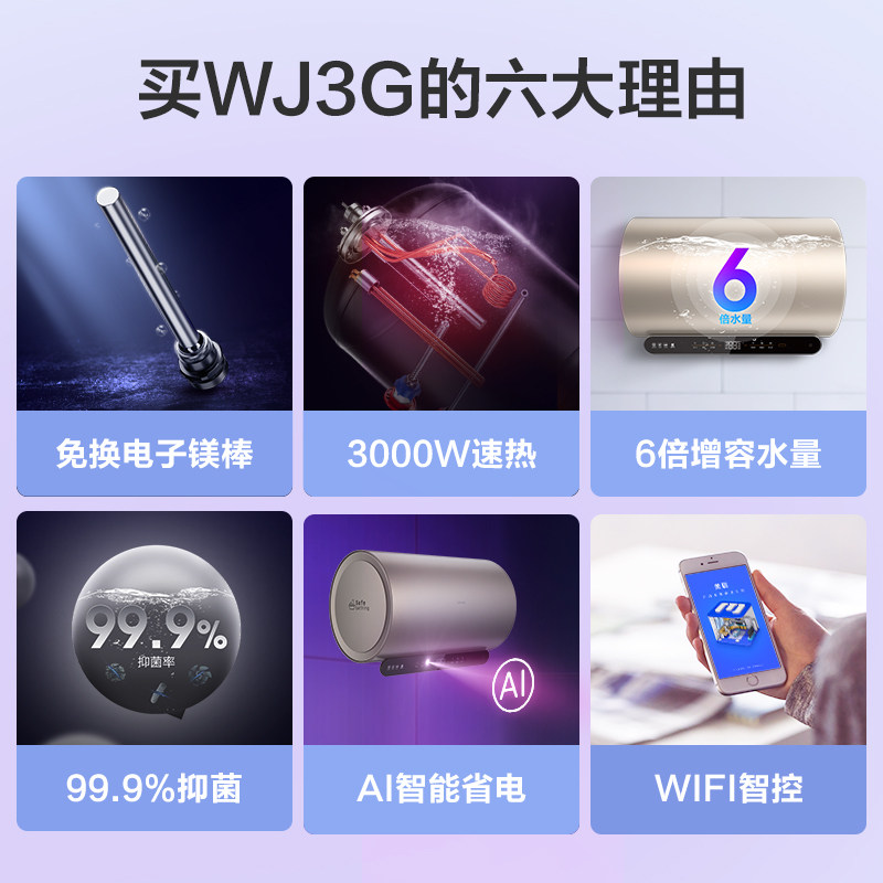 华凌 80 -Литр WJ3G Электрический водонагреватель Скорость горячее хранилище в стиле вода -Ванная комната для ванной комнаты для душевого купания электронное магниевое магниевое интеллект