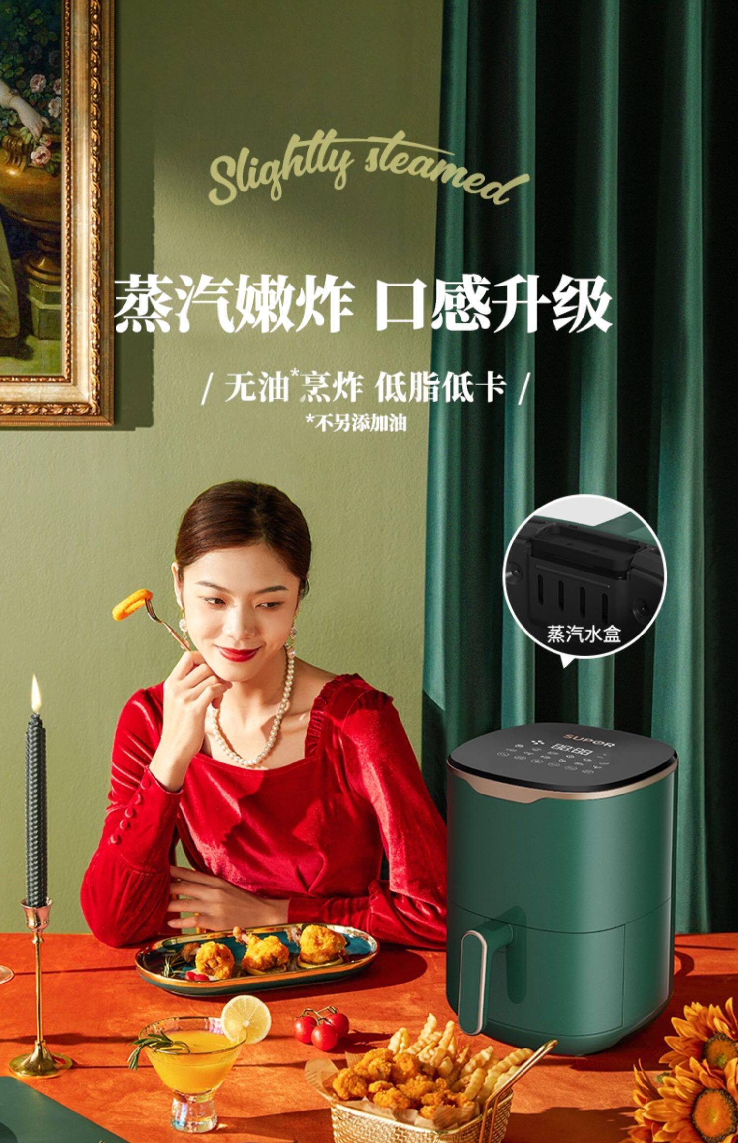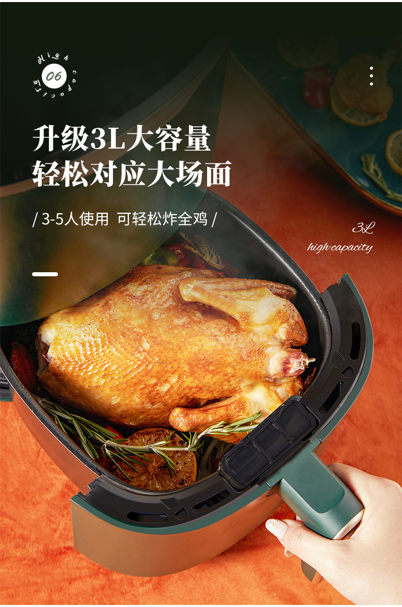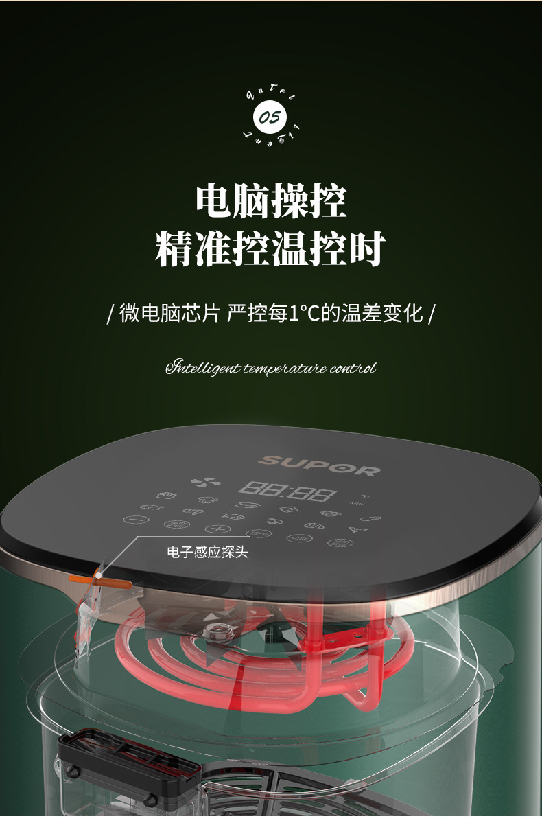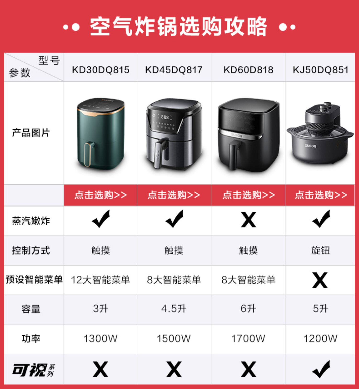 Supor Air Fried Pot 3L Большой способность многофункциональный интеллектуальный фритюрный домик. Автоматический сенсорный экран без жареных