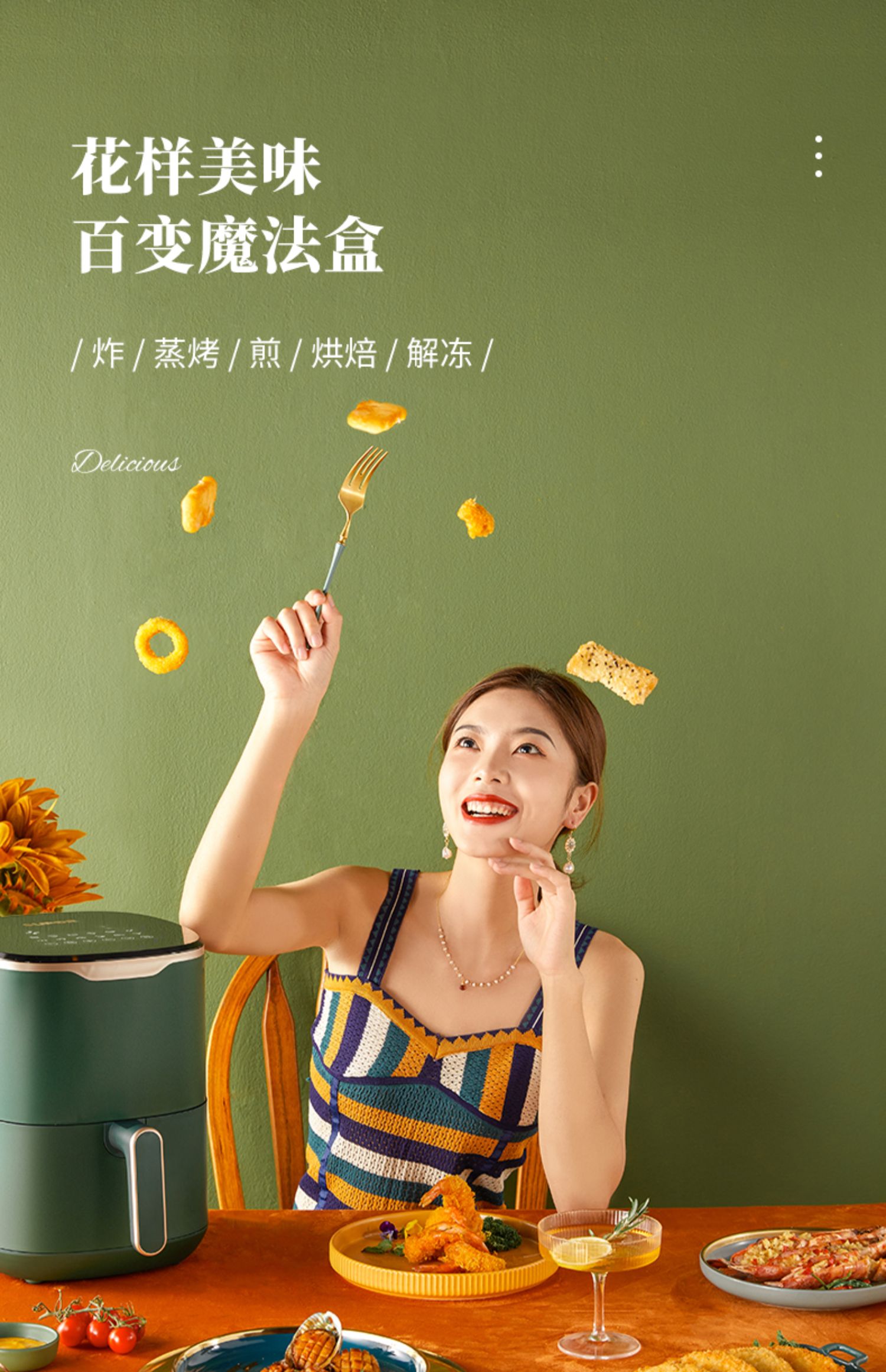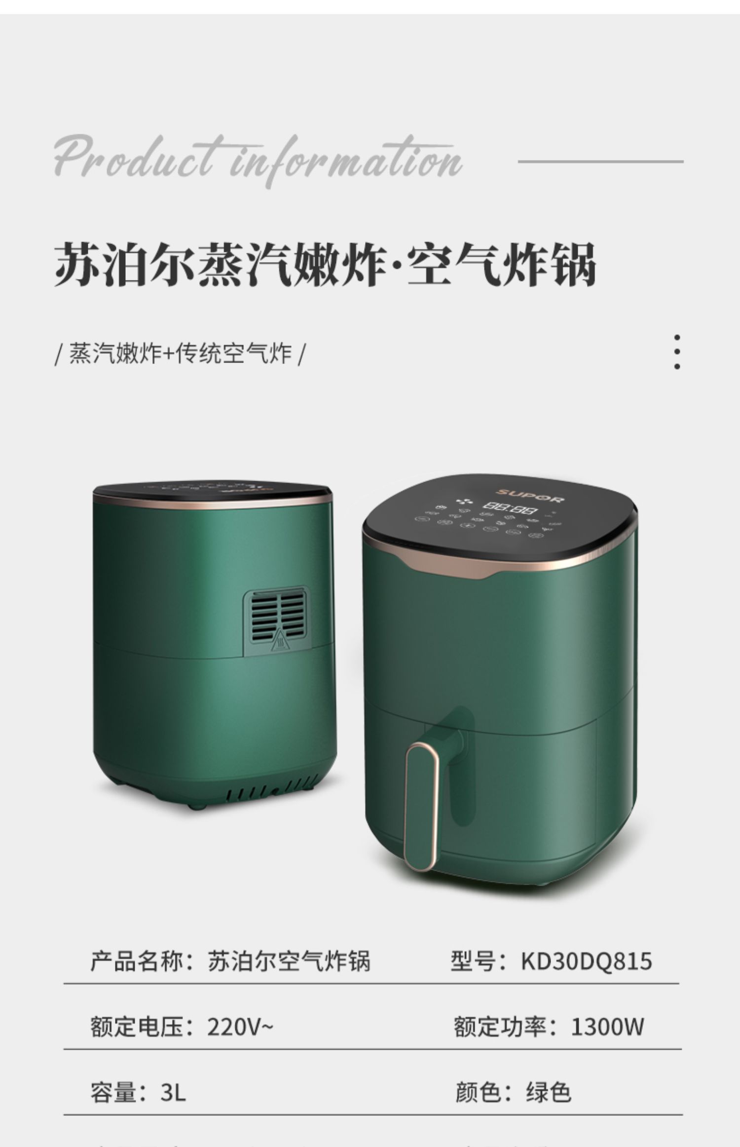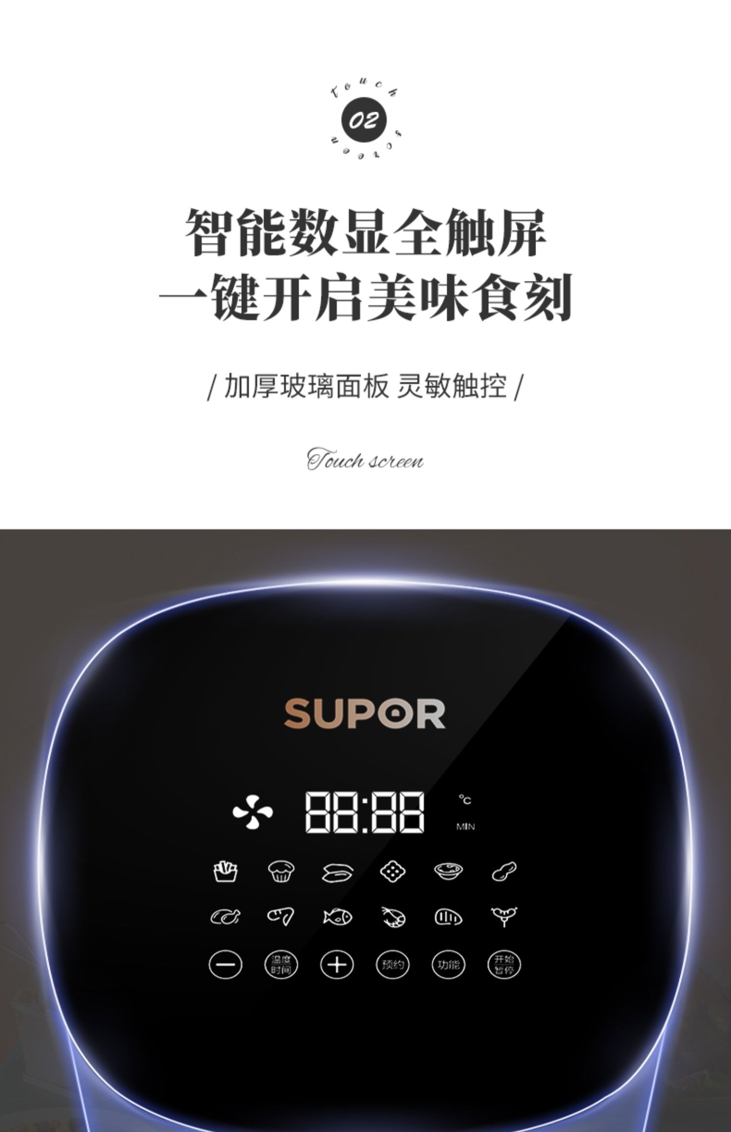 Supor Air Fried Pot 3L Большой способность многофункциональный интеллектуальный фритюрный домик. Автоматический сенсорный экран без жареных