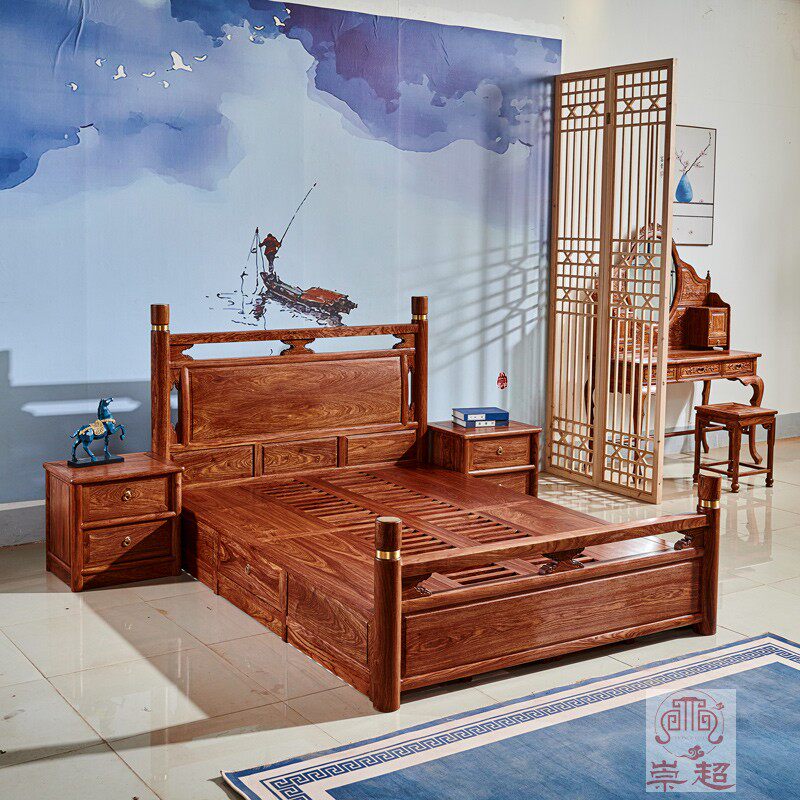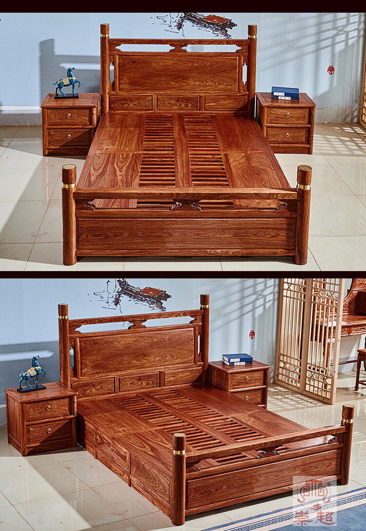 Мебель из розового дерева для двоих из натурального дерева для спальни, 1.8м
