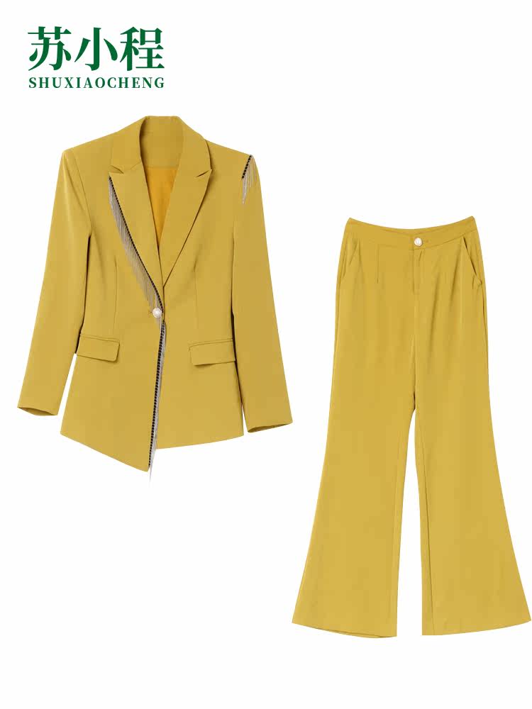 Осенний небольшой пиджак классического кроя, комплект, штаны, коллекция 2021, городской стиль, в западном стиле