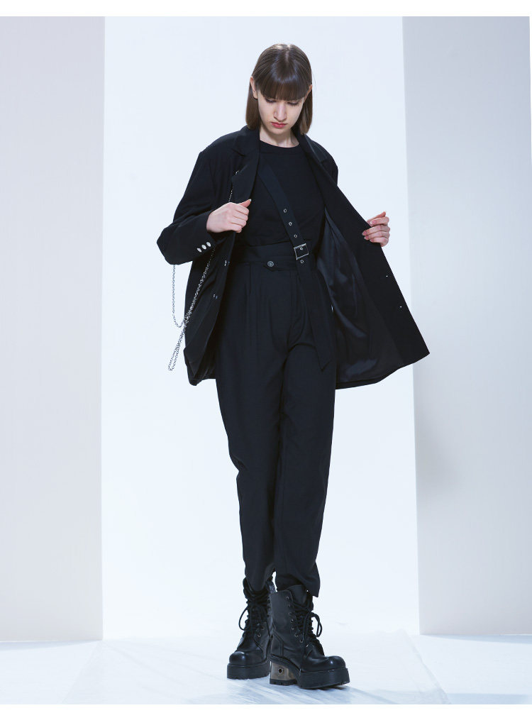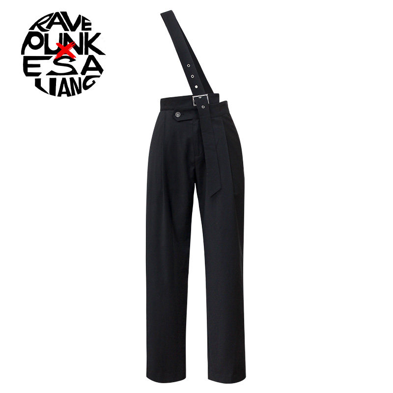 Черный модный асимметричный комбинезон, штаны, высокая талия, свободный прямой крой