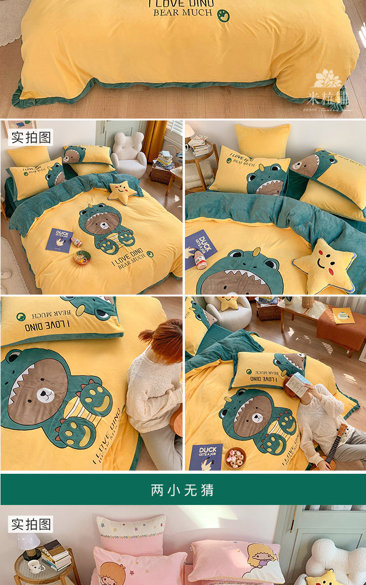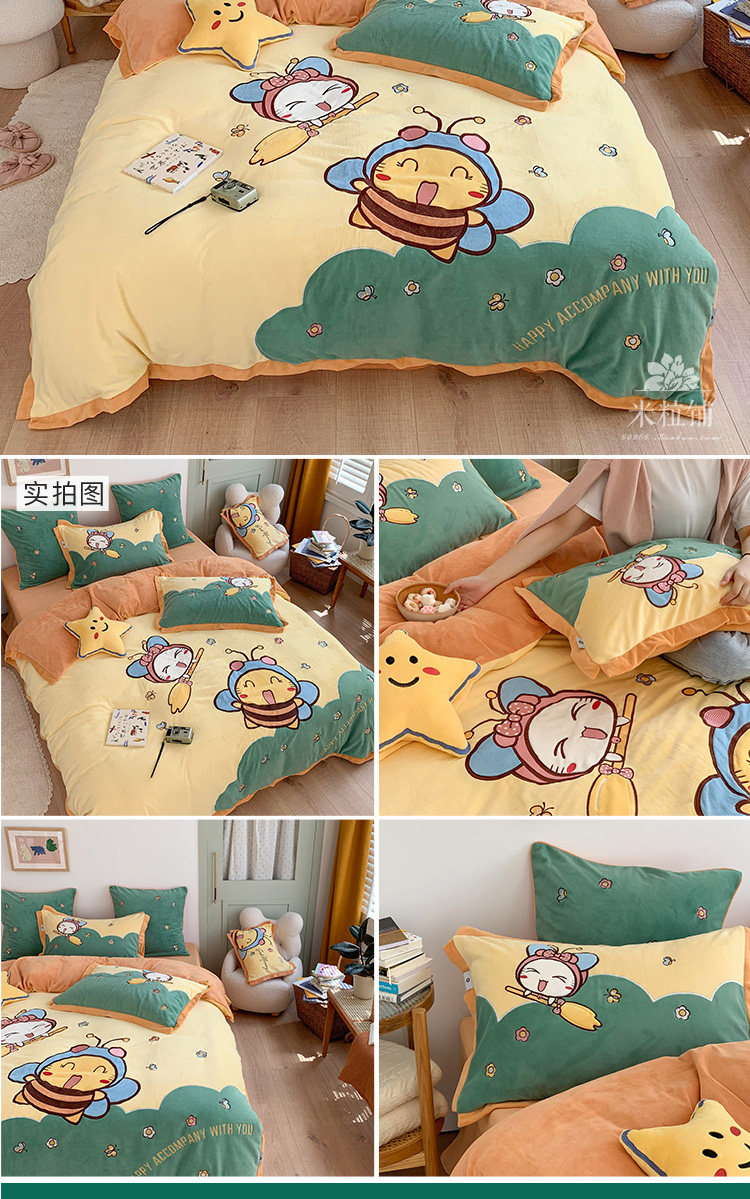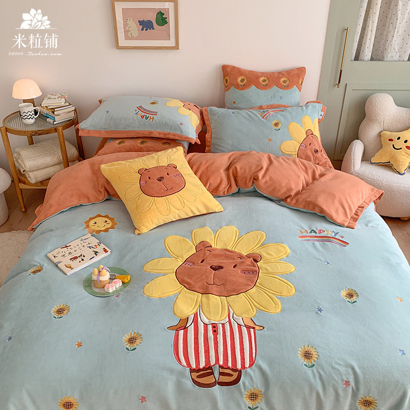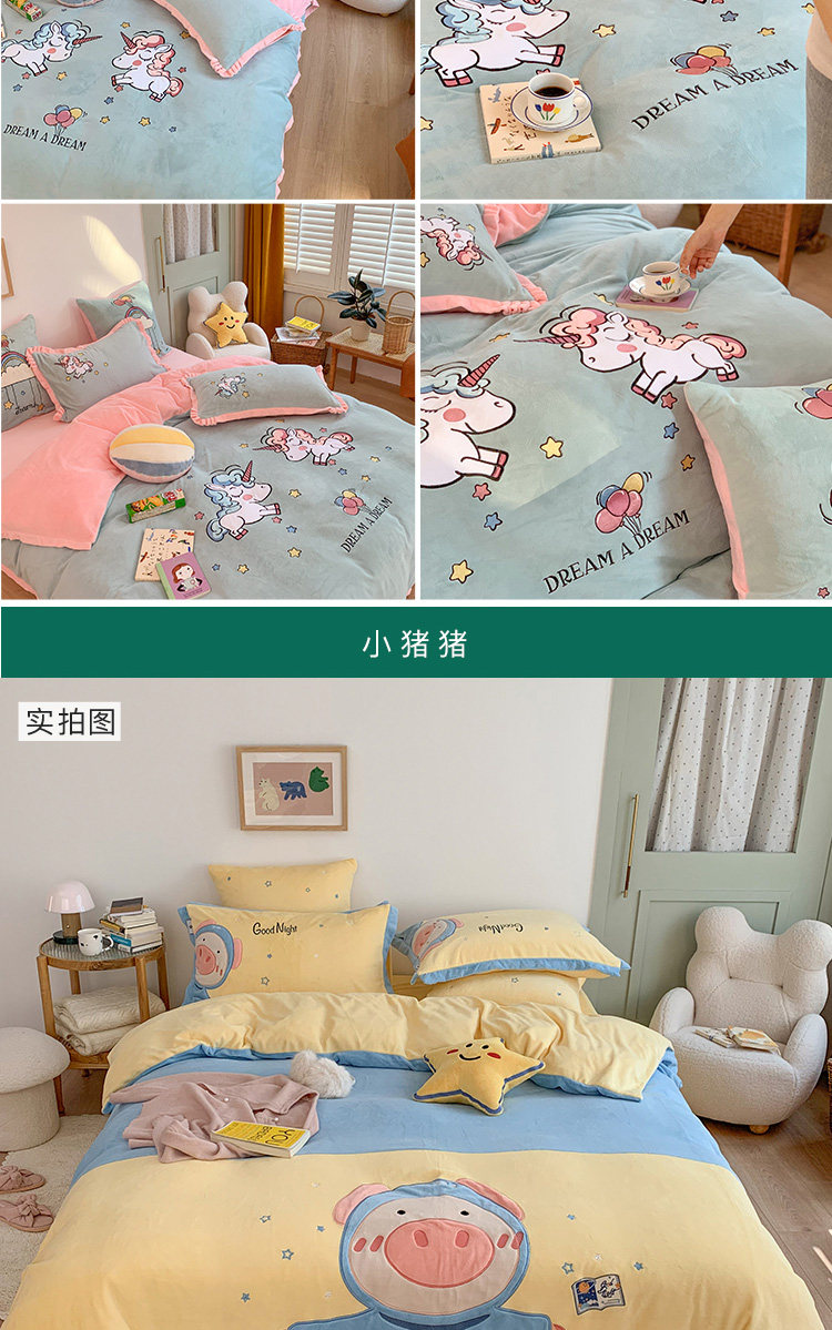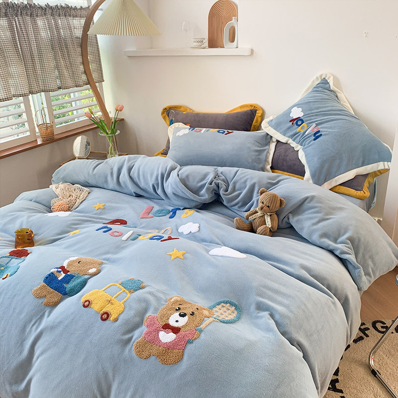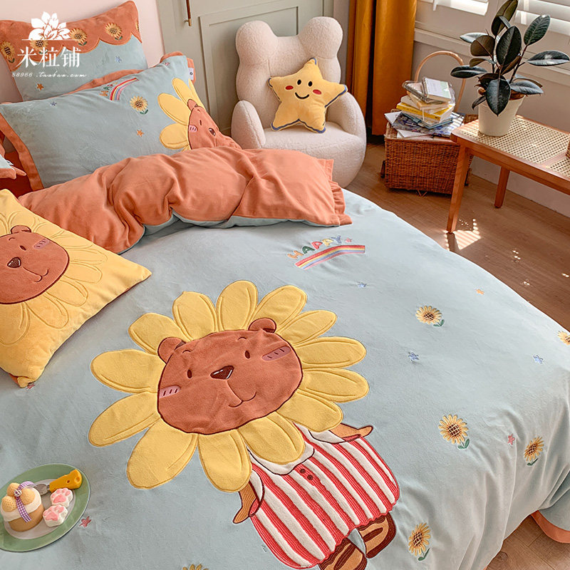Милый мультяшный зимний коралловый комплект, двусторонний пододеяльник, простыня для кроватки, покрывало, 4 предмета