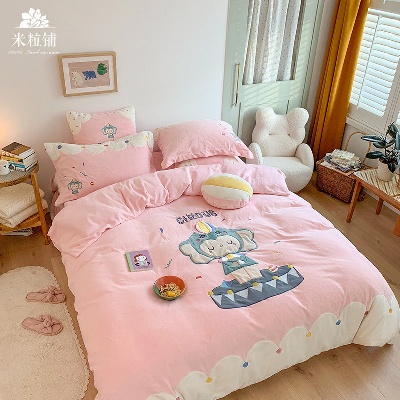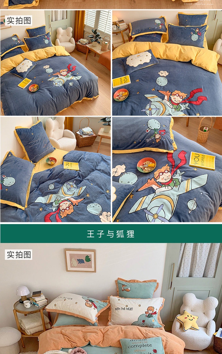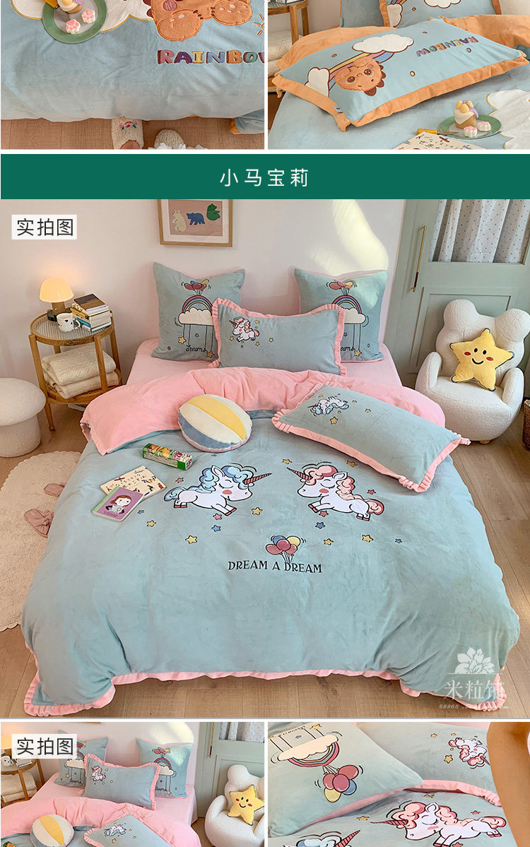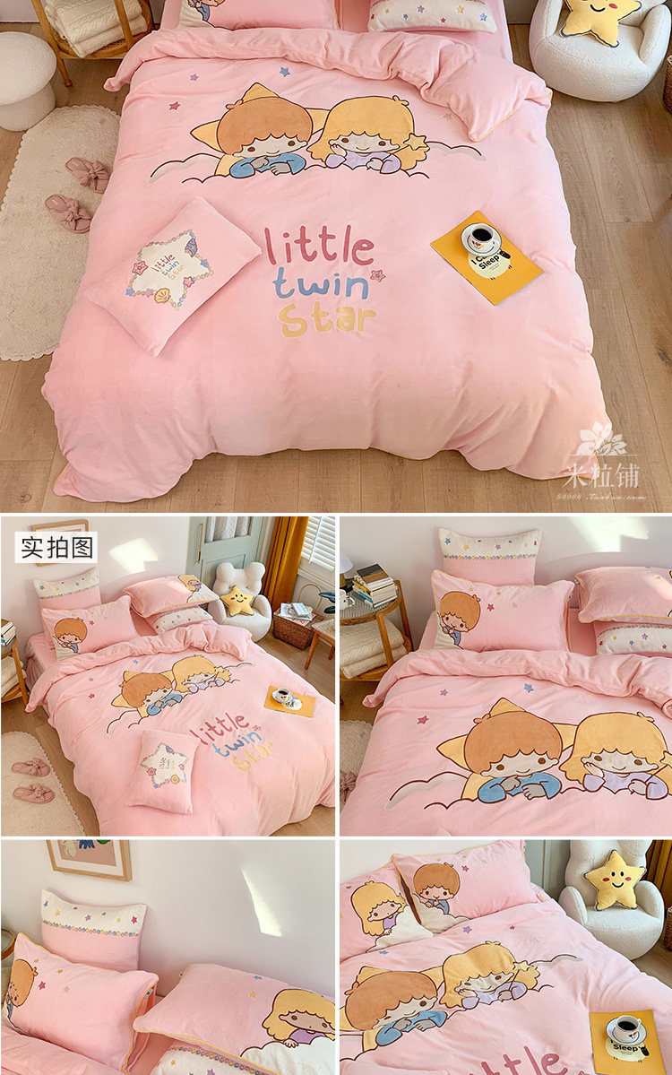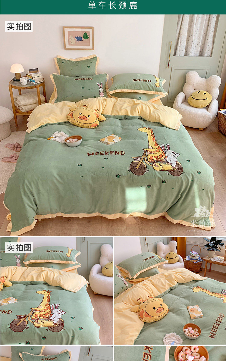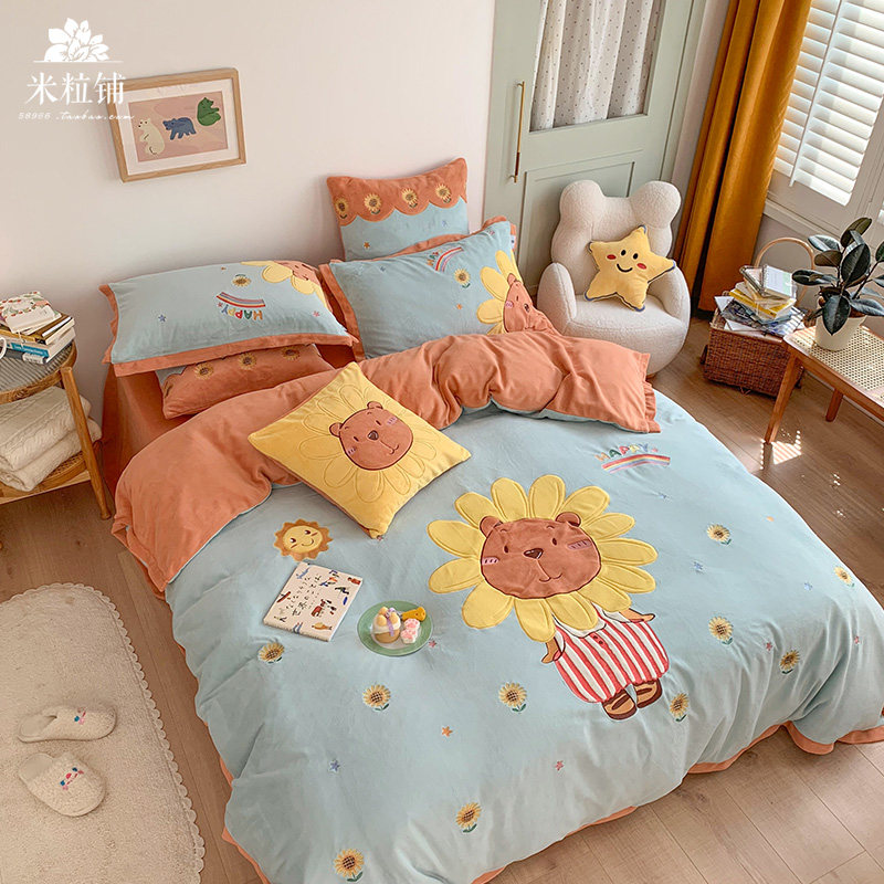 Милый мультяшный зимний коралловый комплект, двусторонний пододеяльник, простыня для кроватки, покрывало, 4 предмета