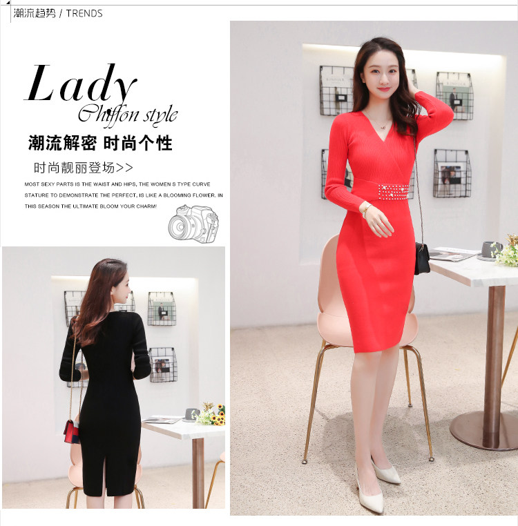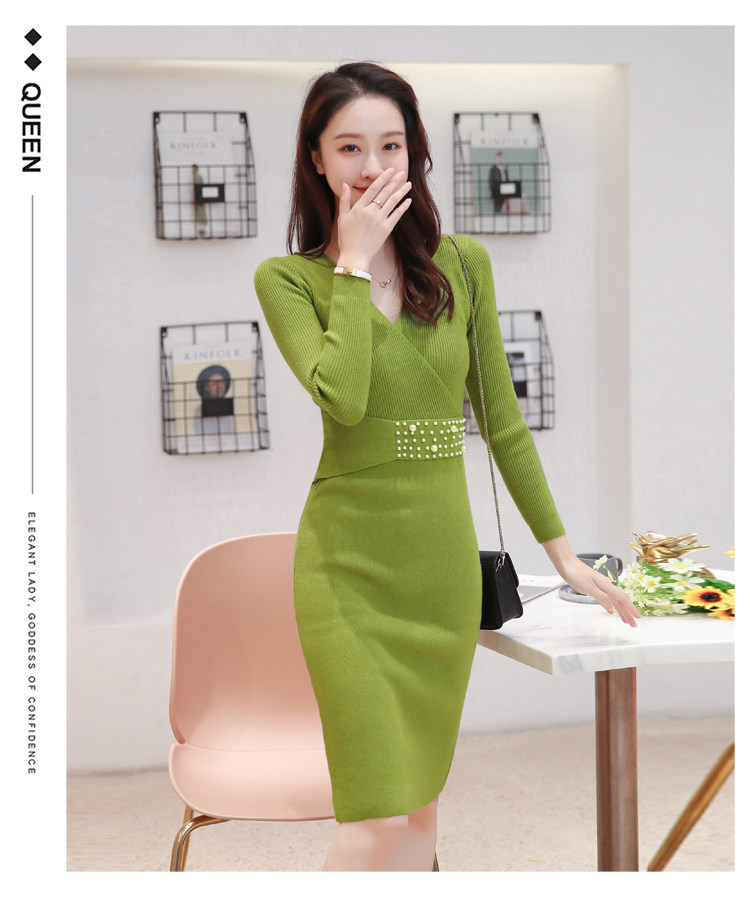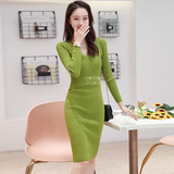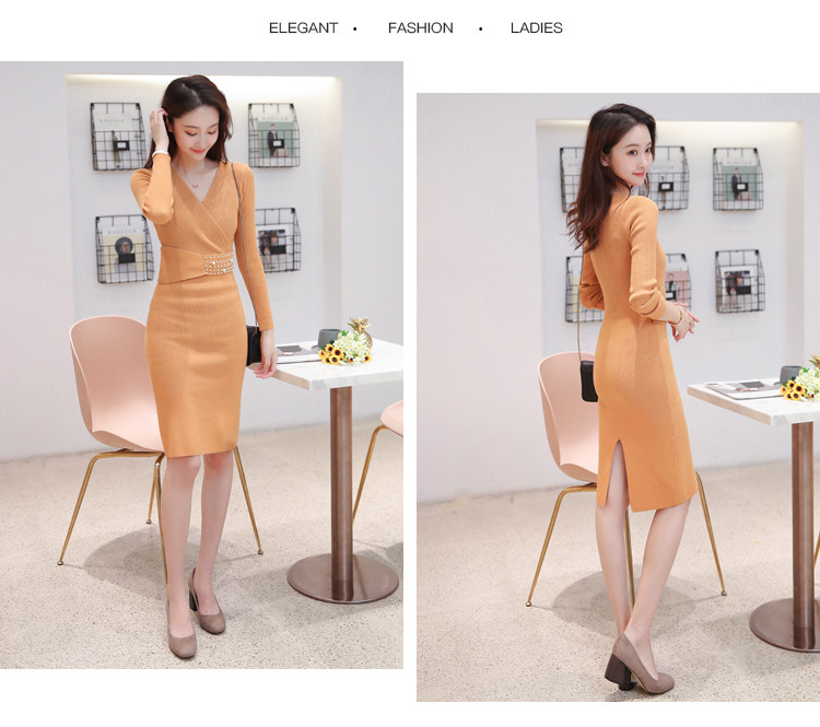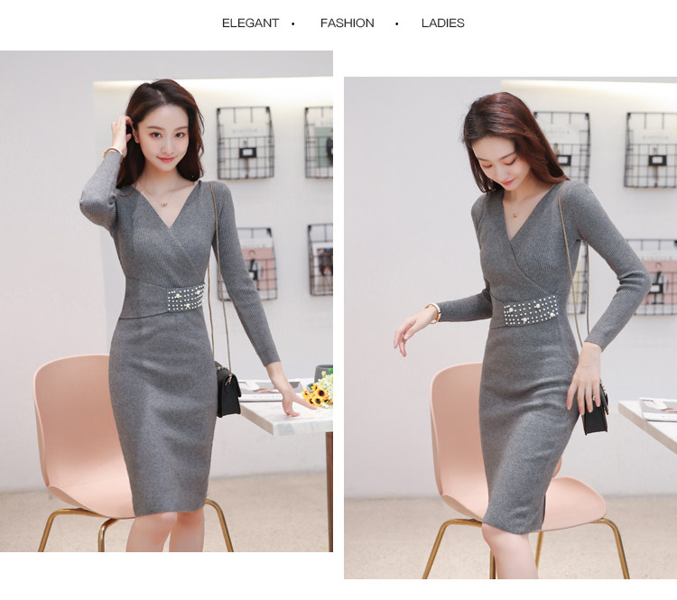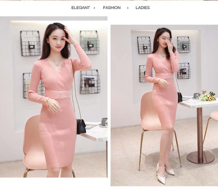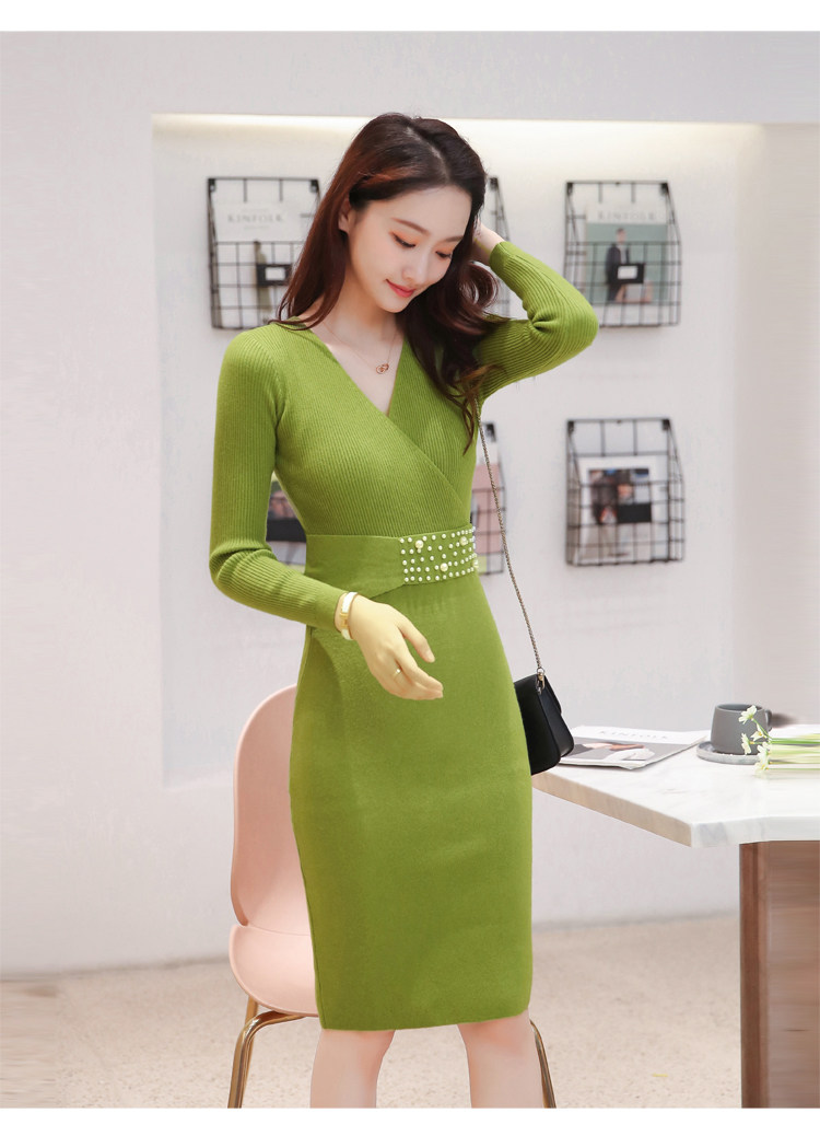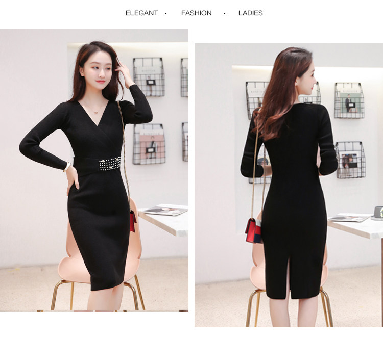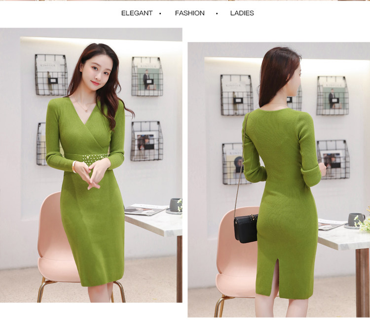 Лонгслив, приталенное платье, длинный свитер, V-образный вырез, средней длины, с акцентом на бедрах
