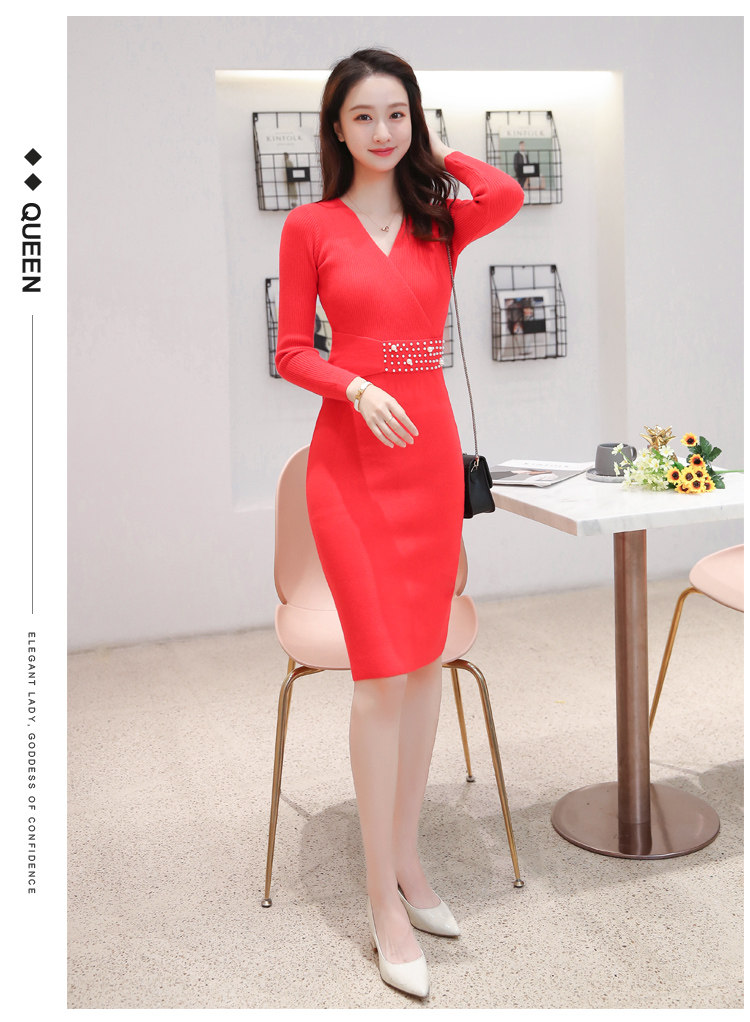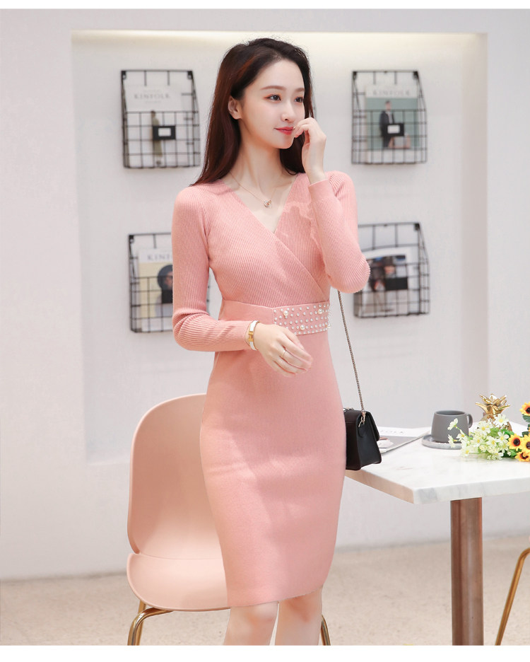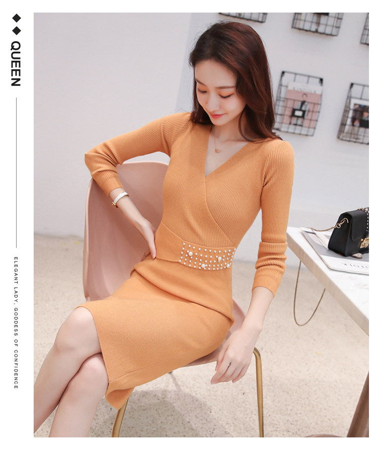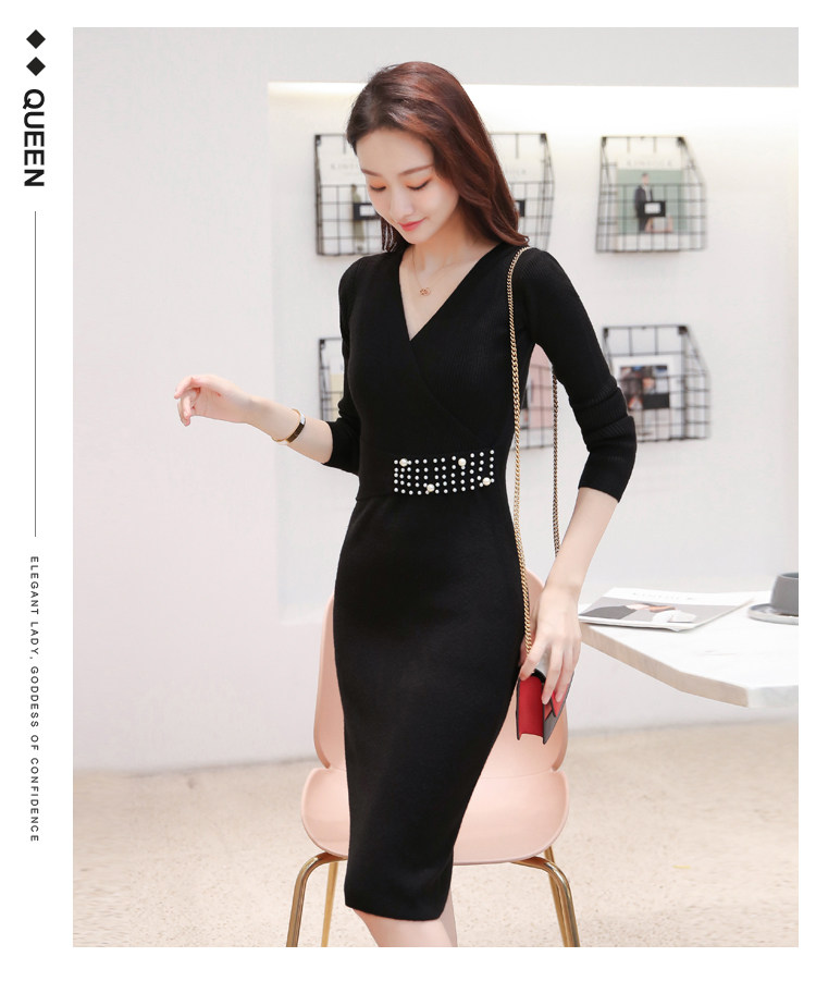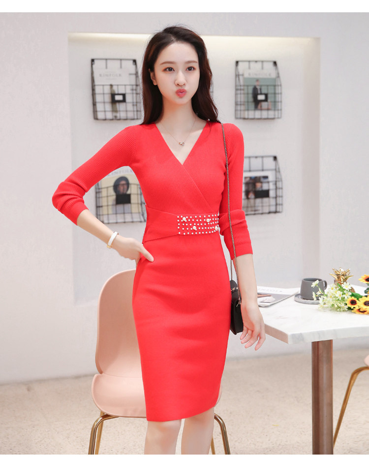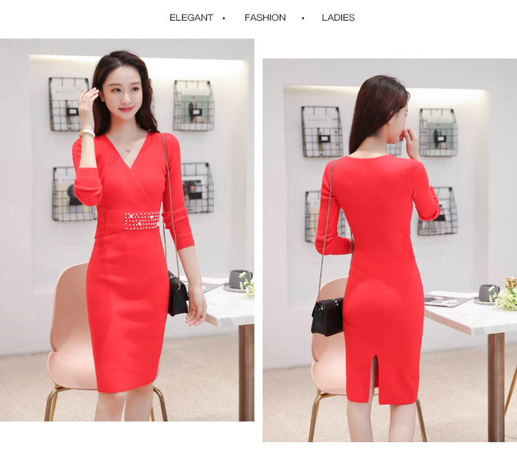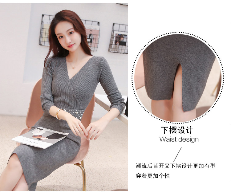 Лонгслив, приталенное платье, длинный свитер, V-образный вырез, средней длины, с акцентом на бедрах