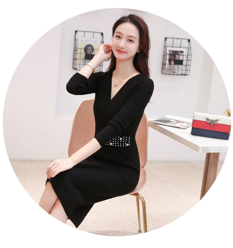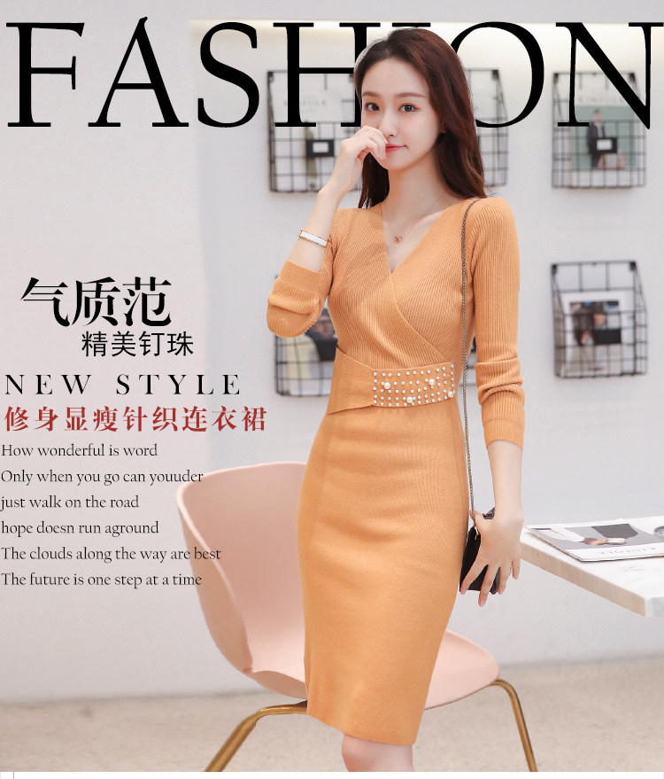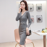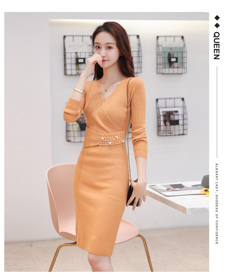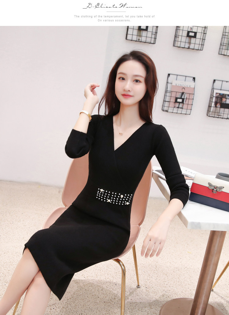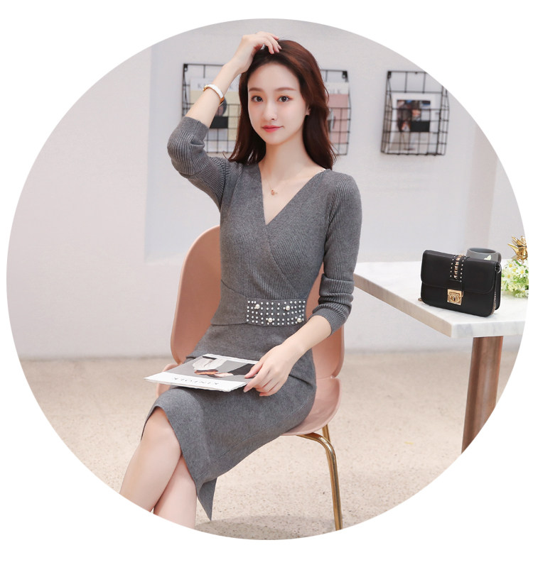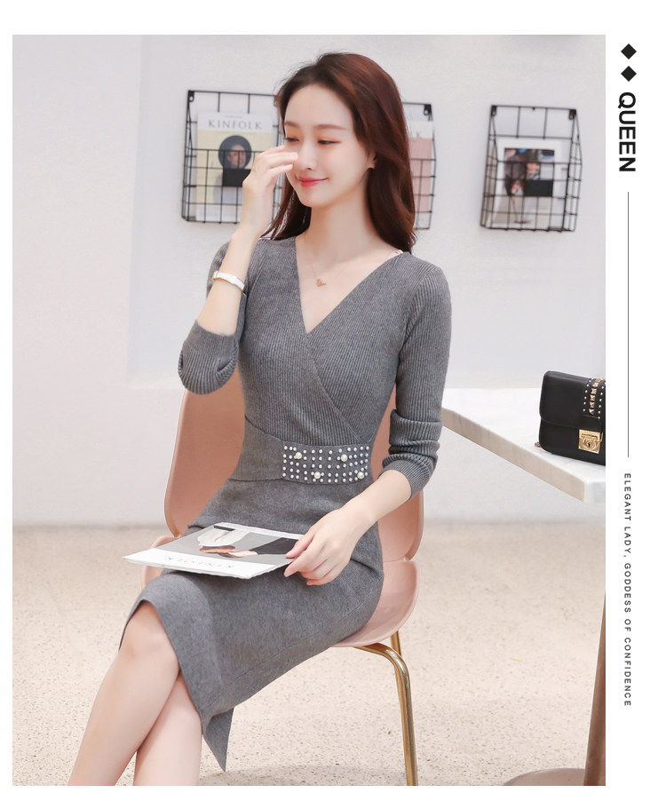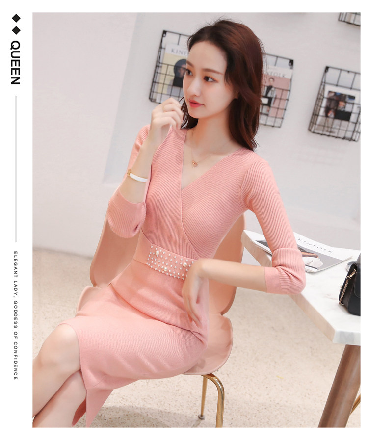 Лонгслив, приталенное платье, длинный свитер, V-образный вырез, средней длины, с акцентом на бедрах