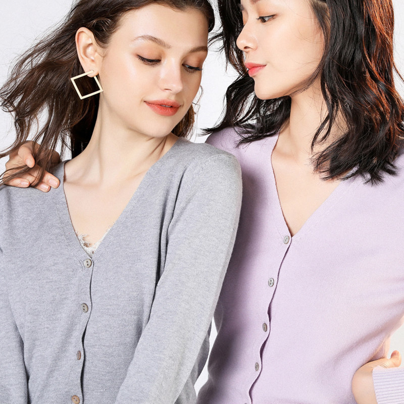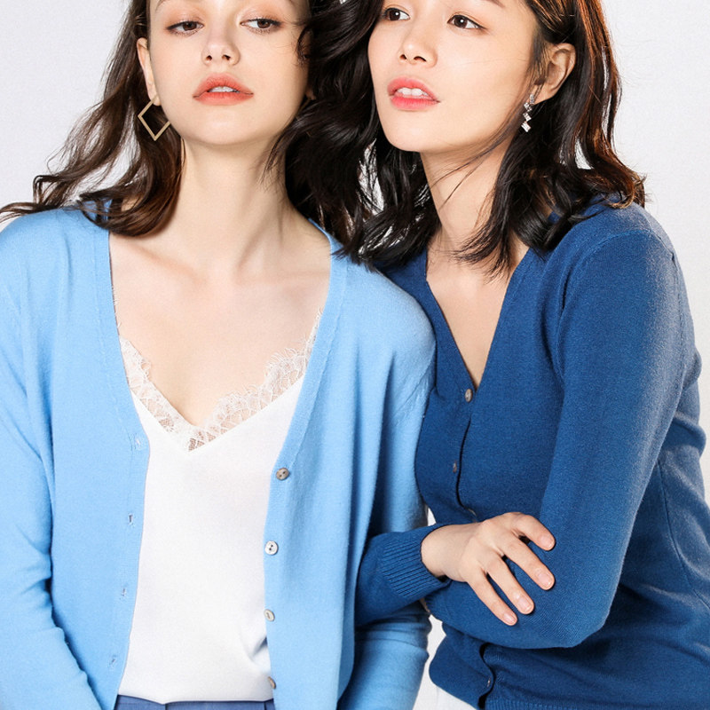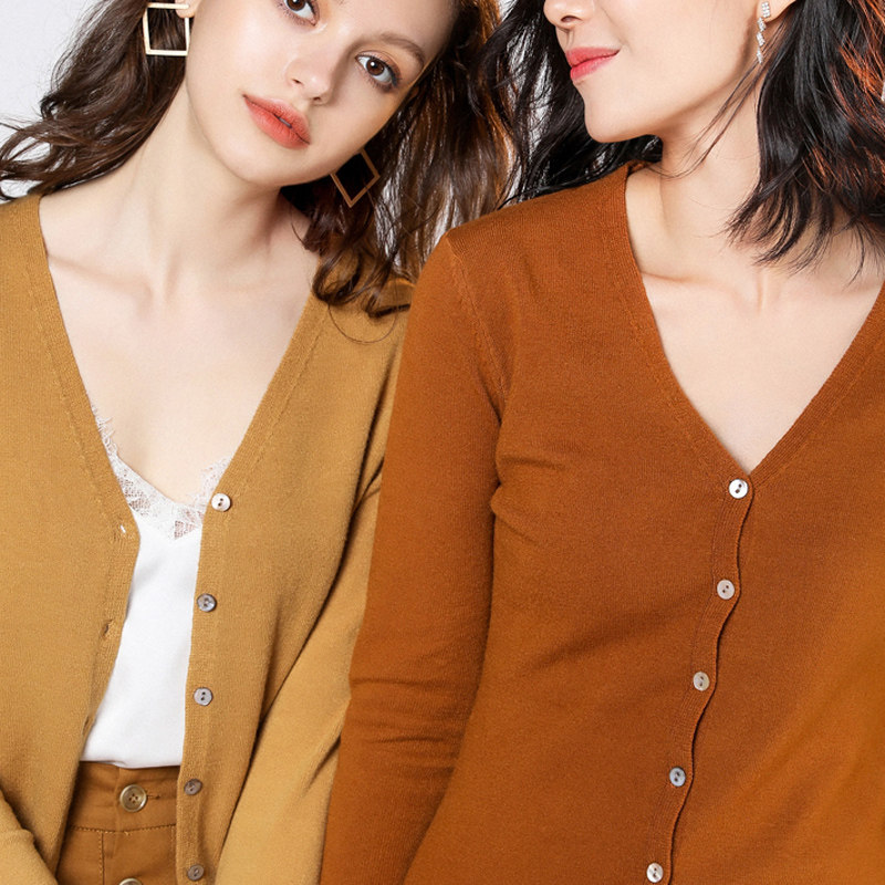 Весенне-осенняя кашемировая однотонная короткая многослойная рубашка с V-образным вырезом