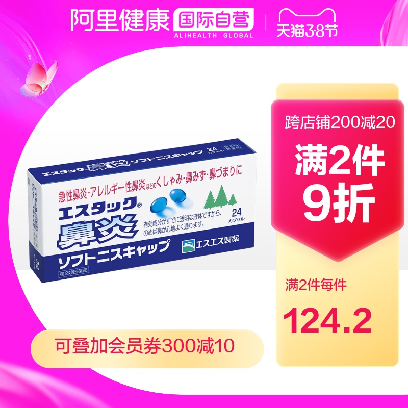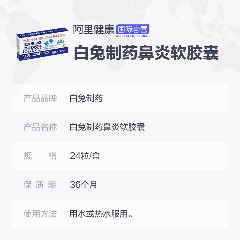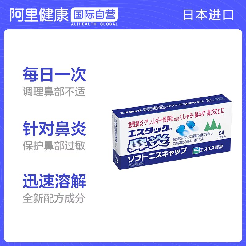 Япония SS Фармацевтический ринрит белого кролика мягкие капсулы 24 Острый ринит аллергический носовый шлепатель