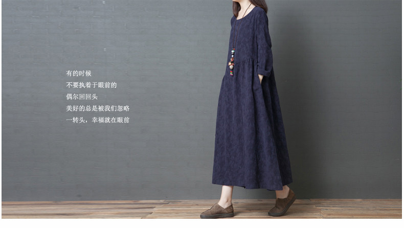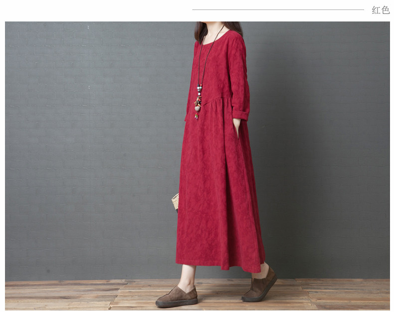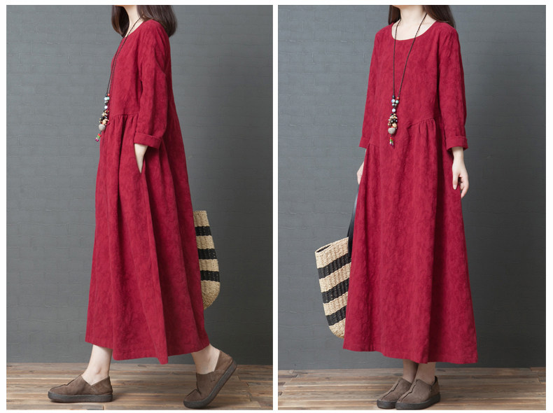 Осеннее ретро длинное платье, базовая юбка, из хлопка и льна, длина миди, средней длины, свободный крой, большой размер, в западном стиле