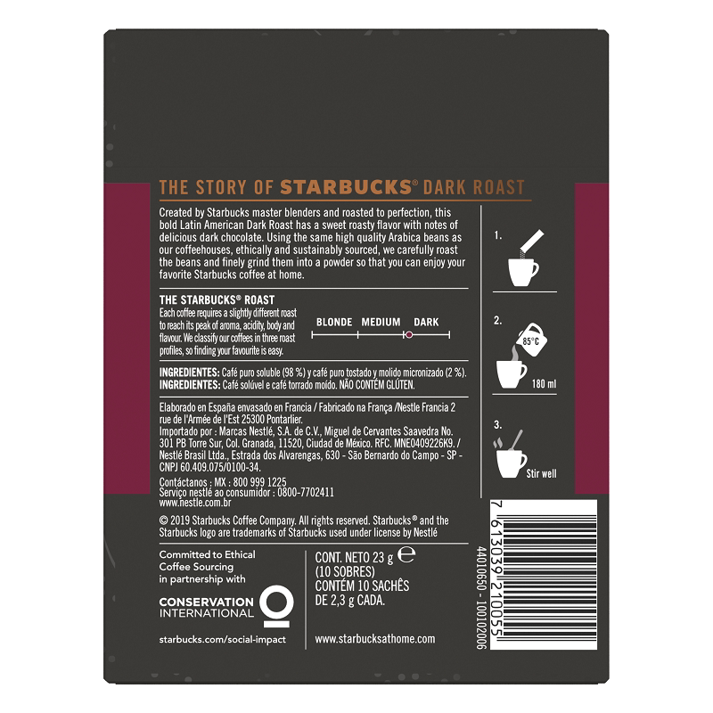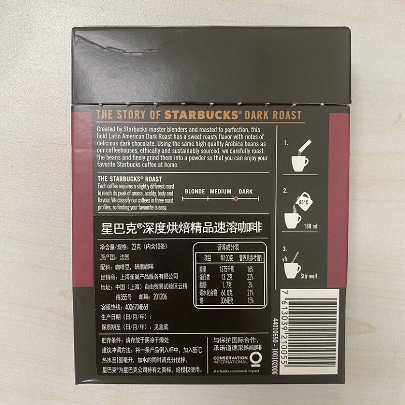 Импортированный из Франции, растворимый кофе Starbucks темной обжарки, 23 г/коробка.