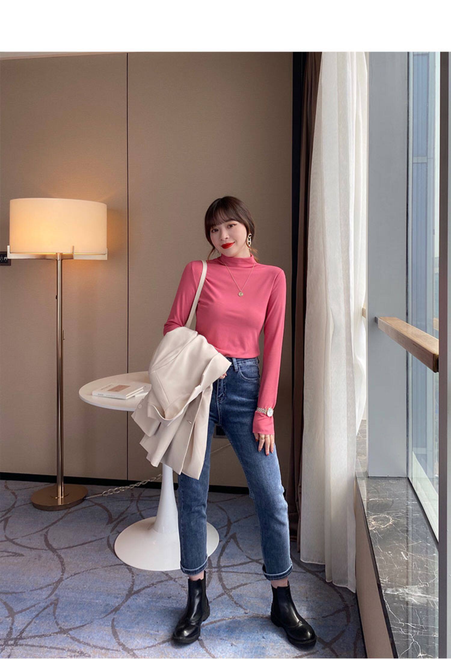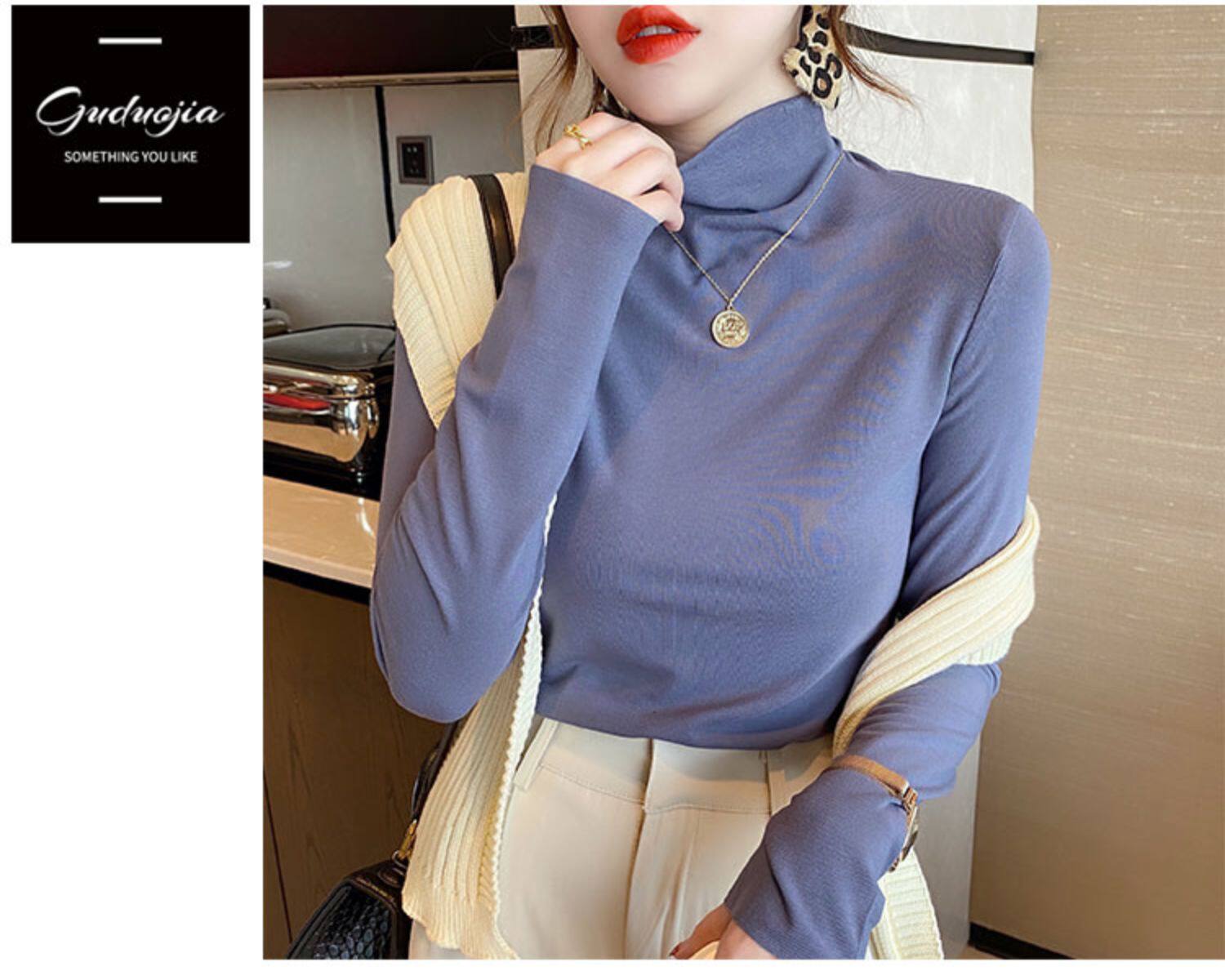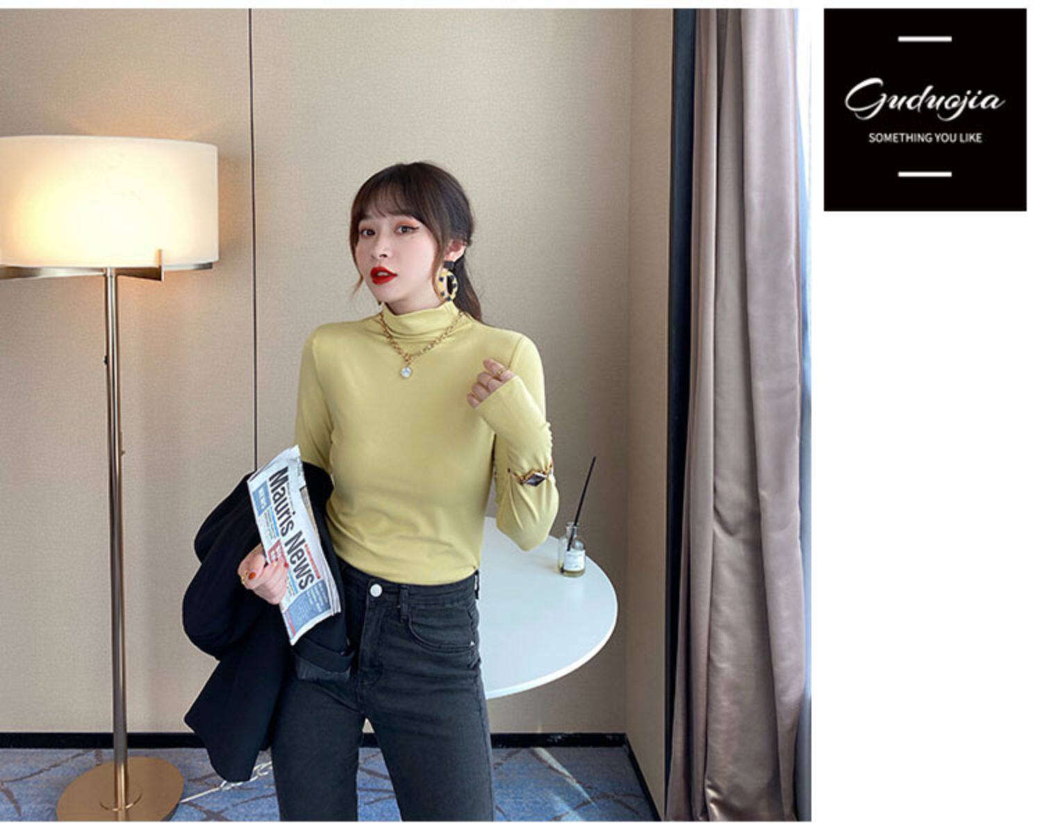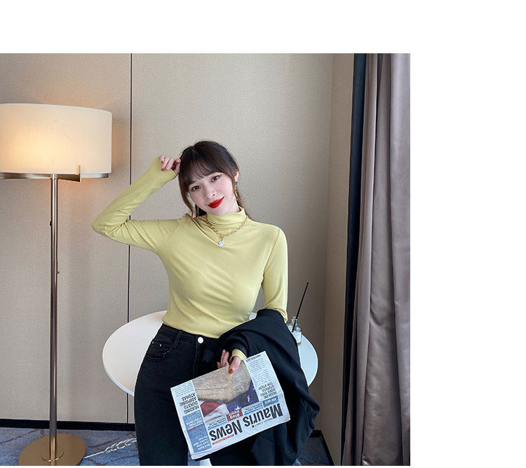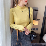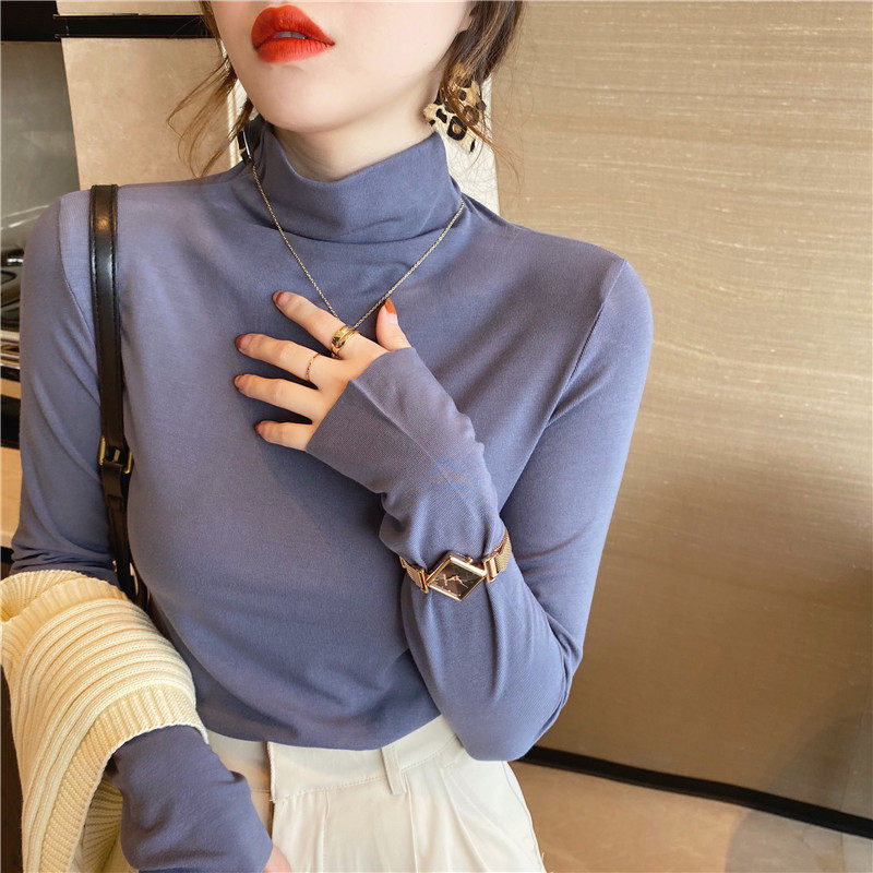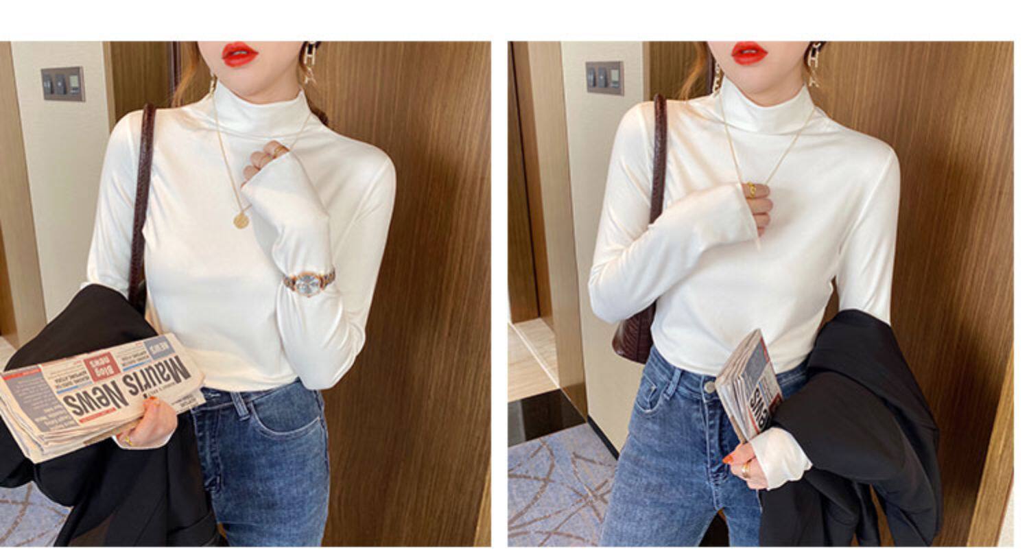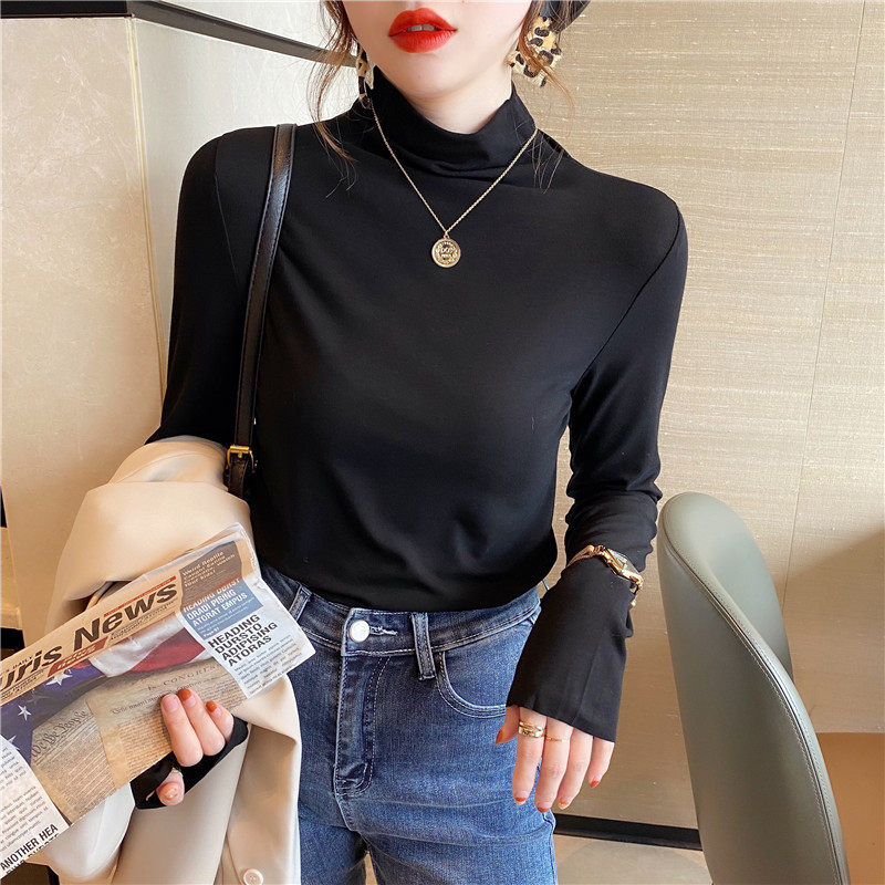 Базовая приятная телу демисезонная футболка, высокий воротник, коллекция 2022, в западном стиле, облегающий крой