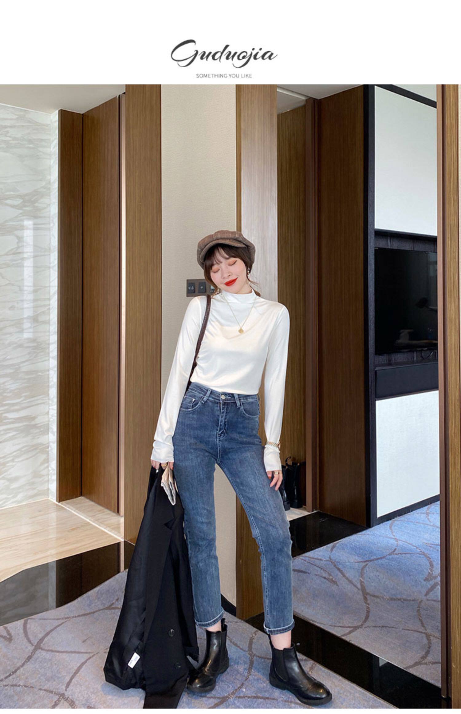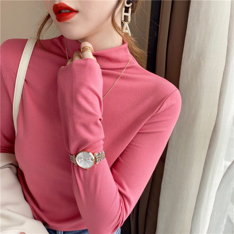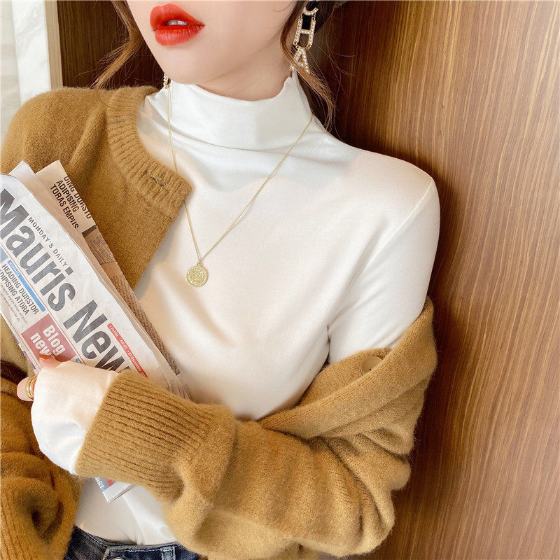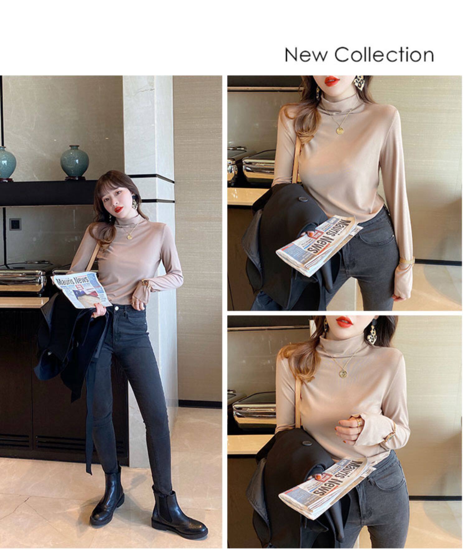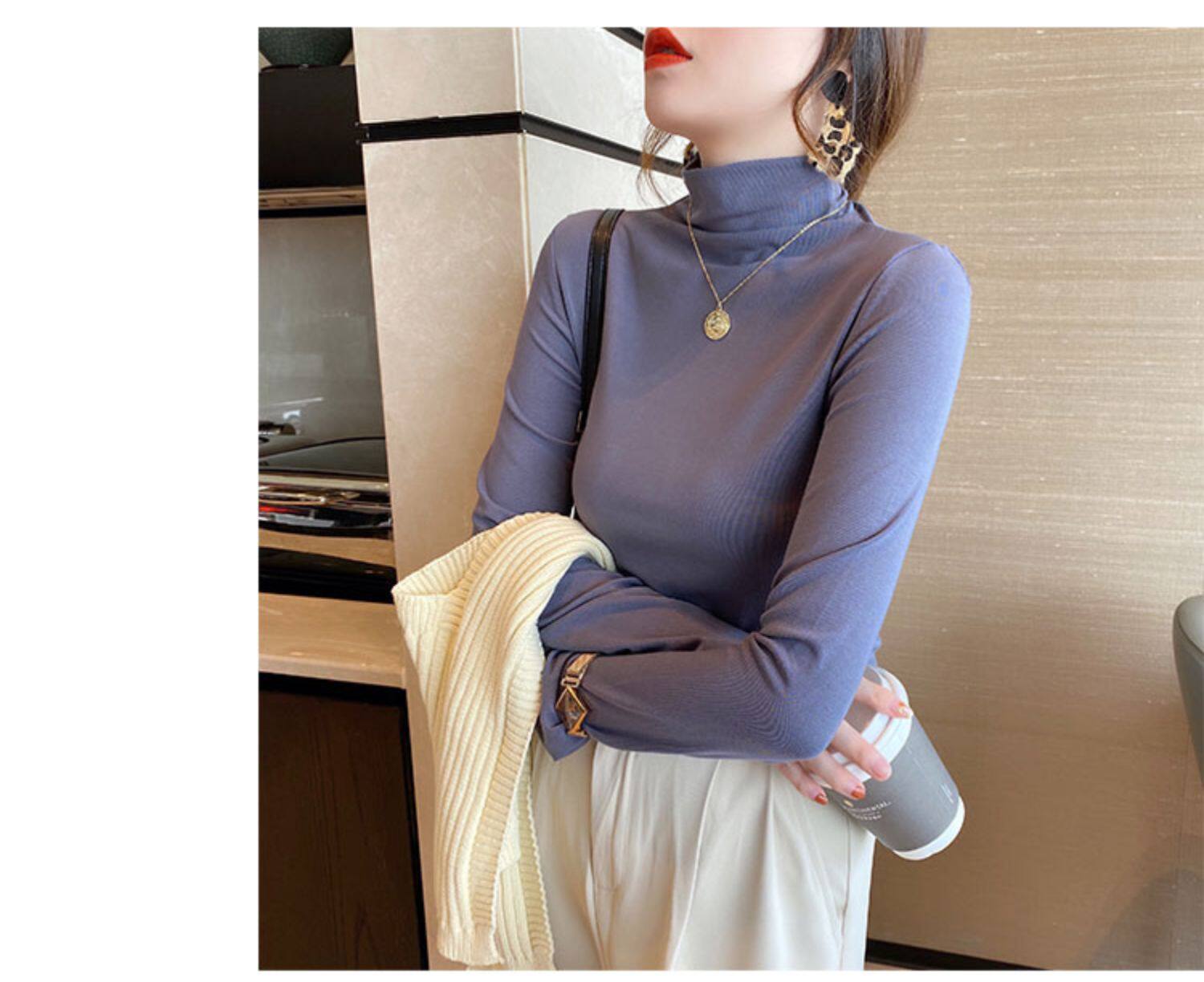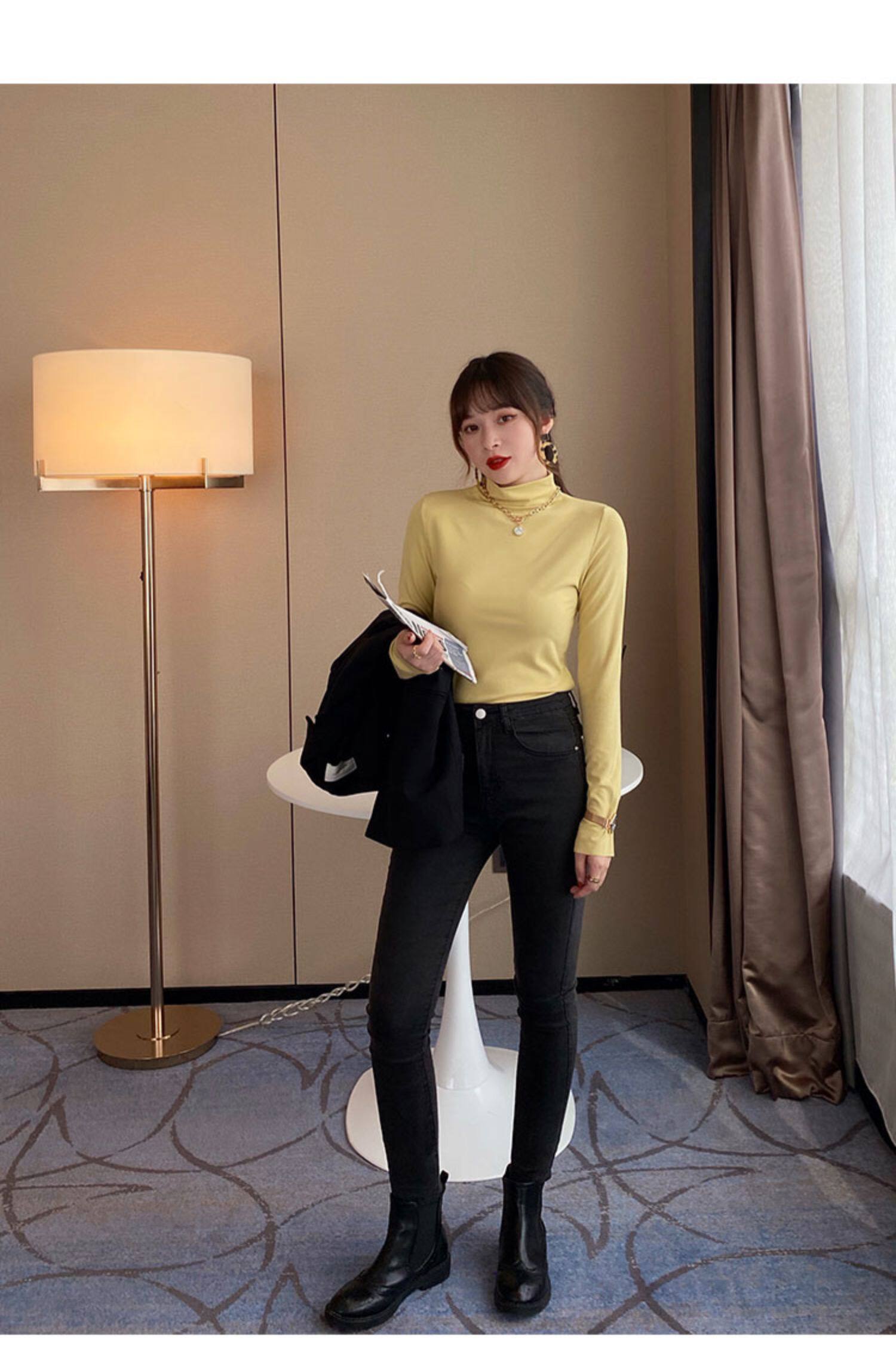 Базовая приятная телу демисезонная футболка, высокий воротник, коллекция 2022, в западном стиле, облегающий крой