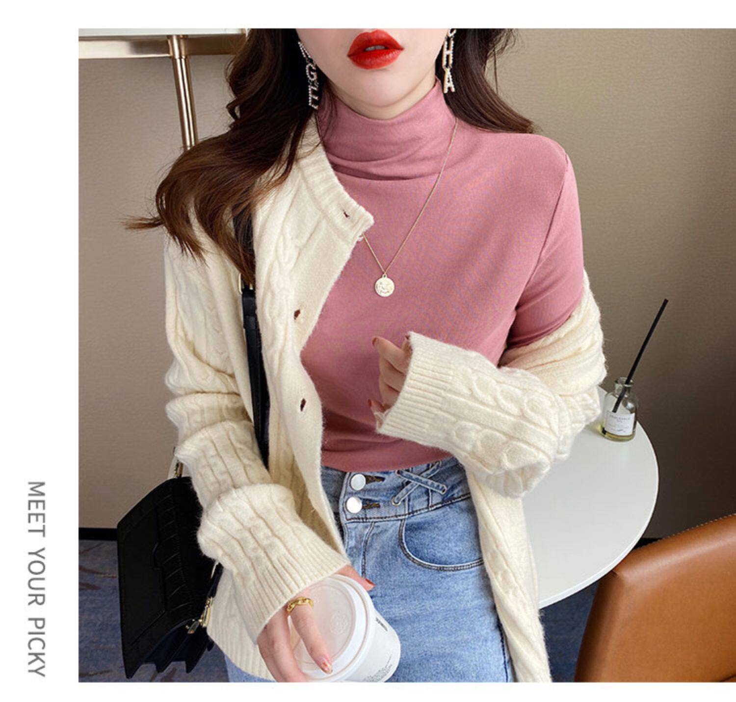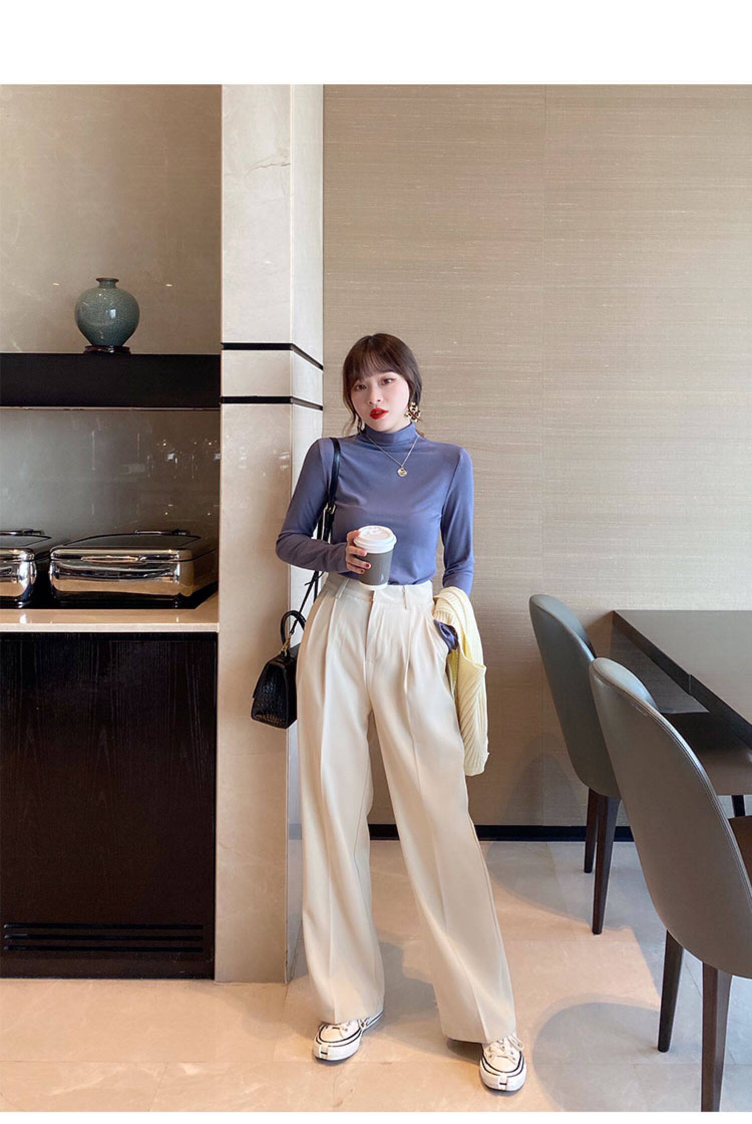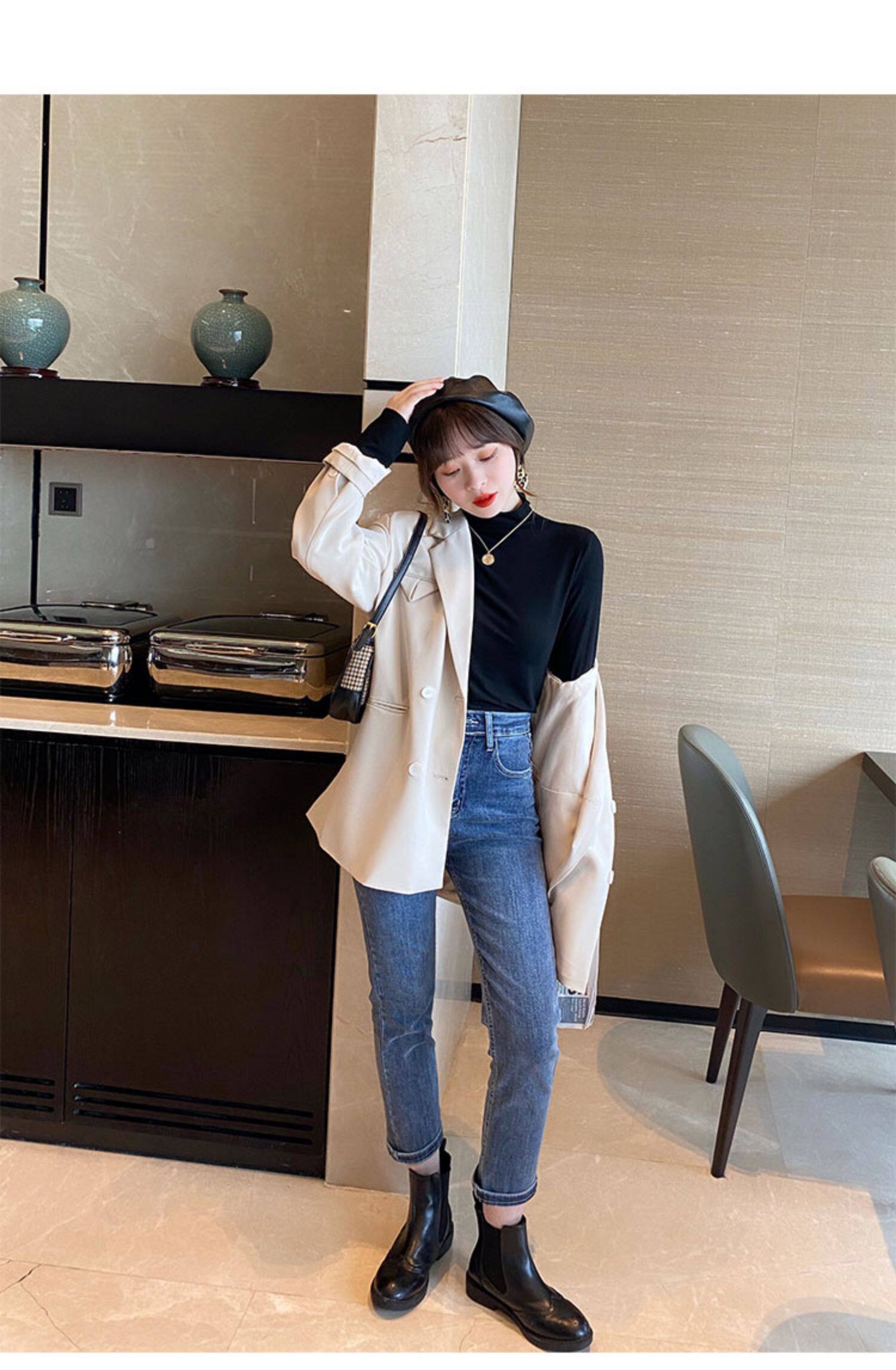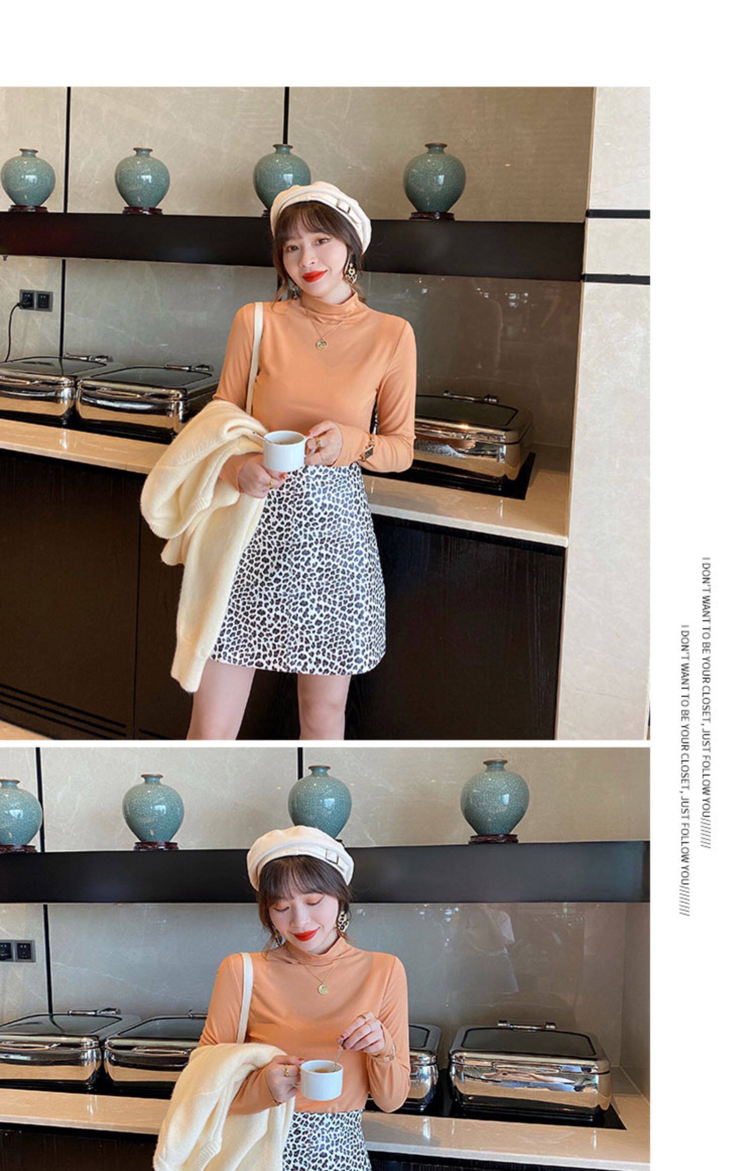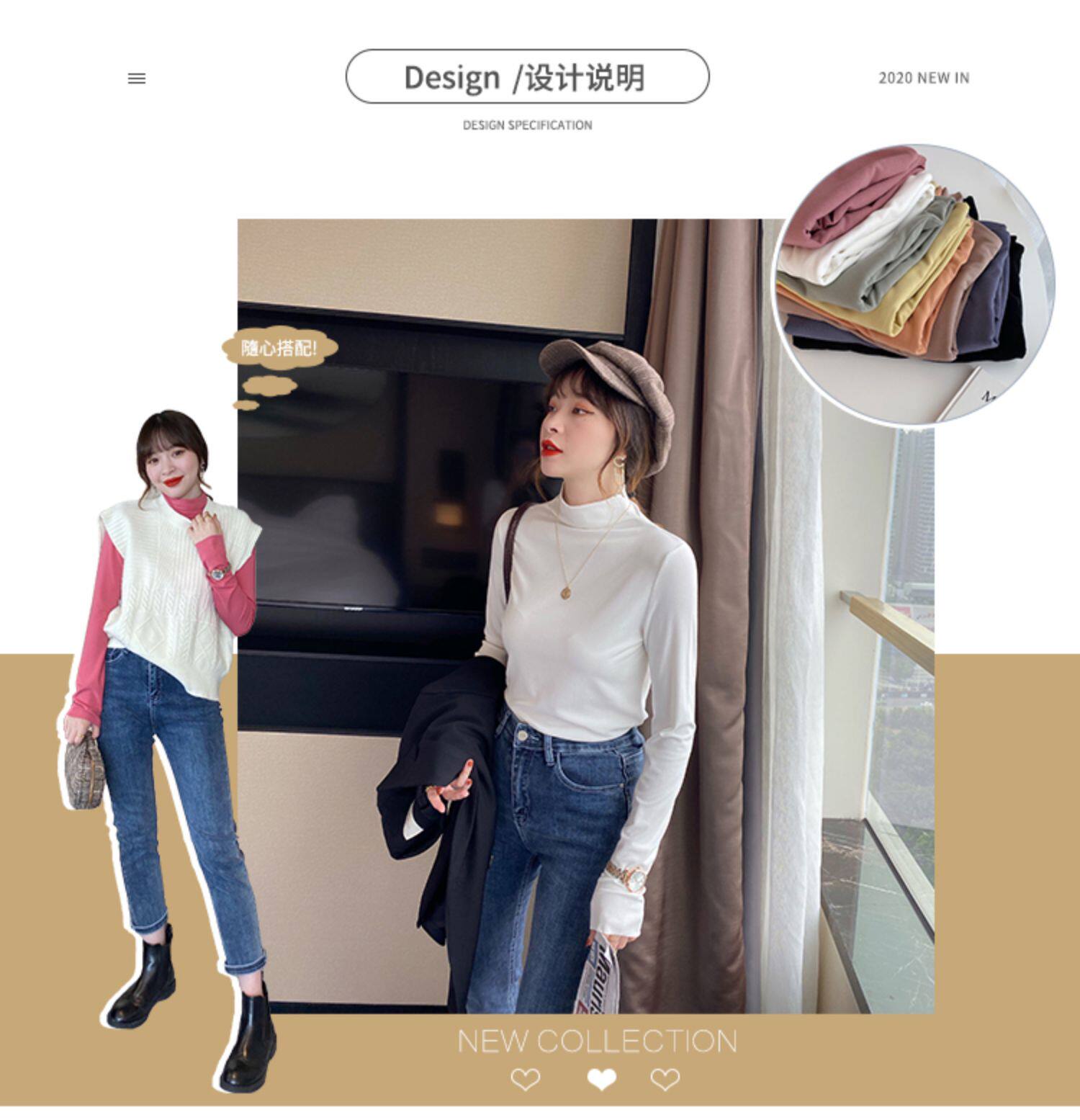 Базовая приятная телу демисезонная футболка, высокий воротник, коллекция 2022, в западном стиле, облегающий крой