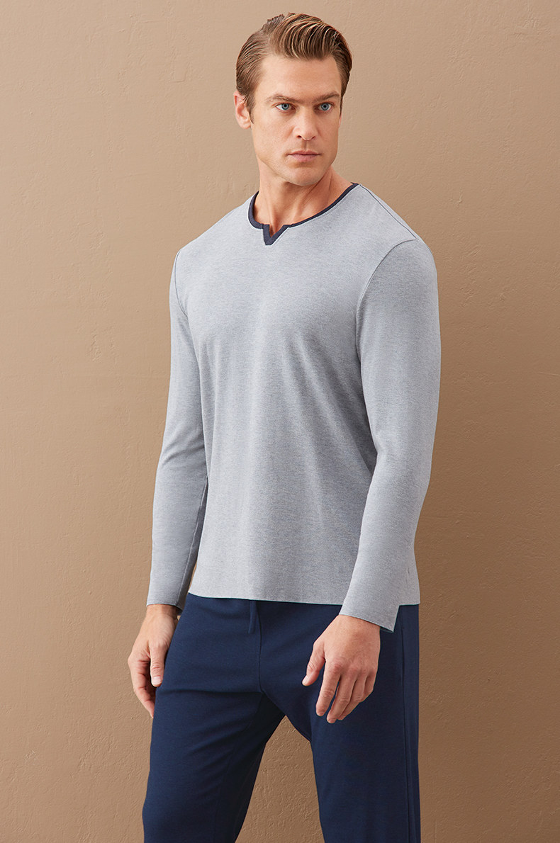 Aimer Men, Mran Men 20aw Milk Sleep Home Mall V -neck с длинным рукавом NS41D441