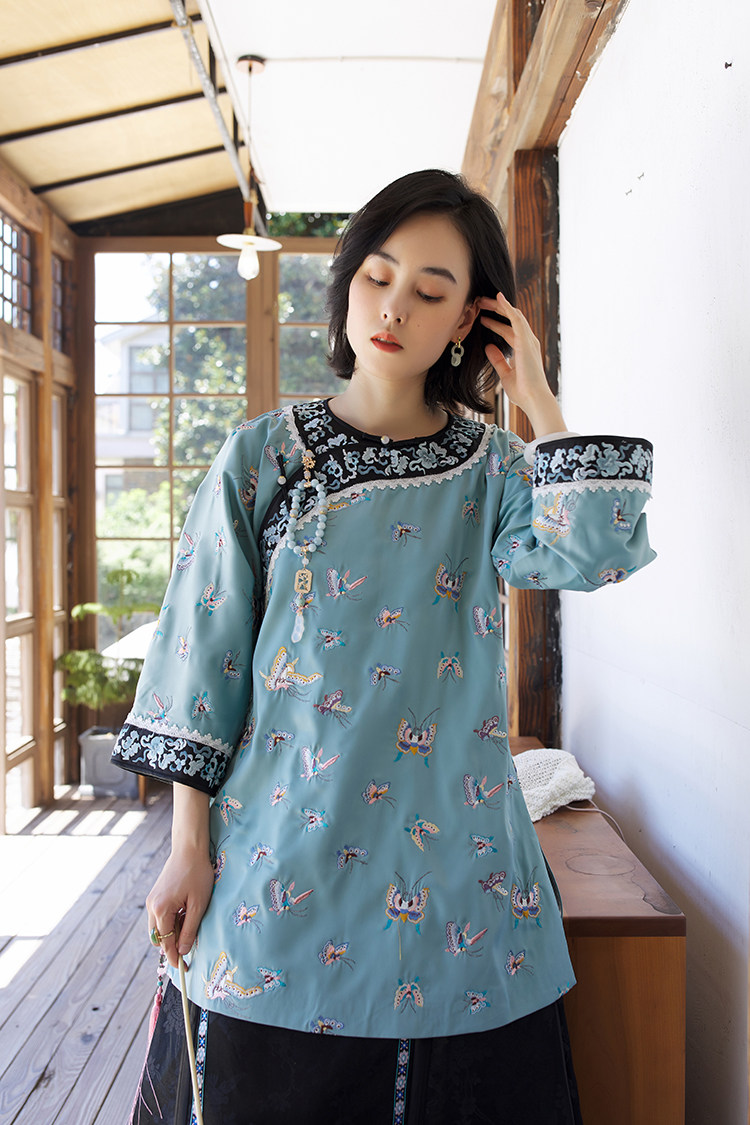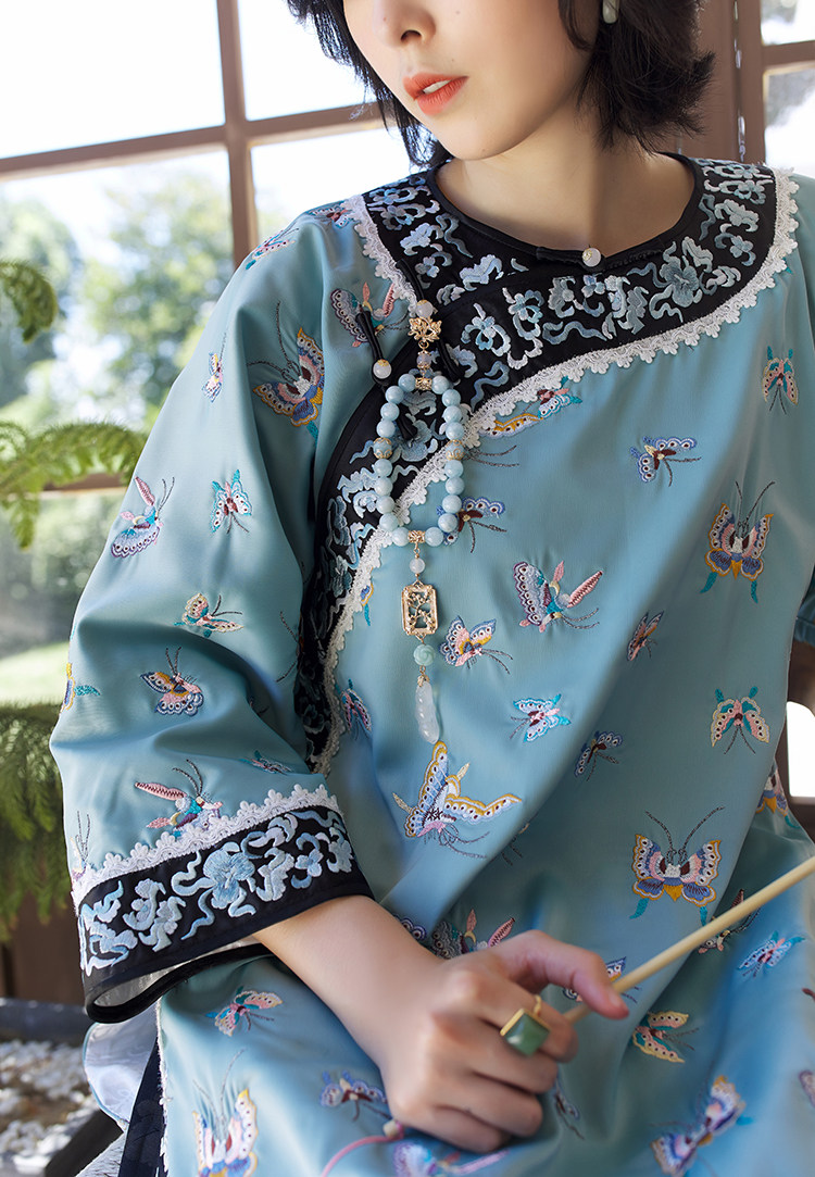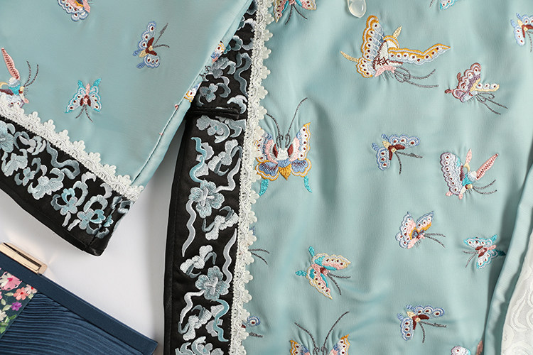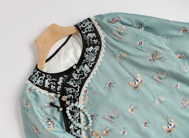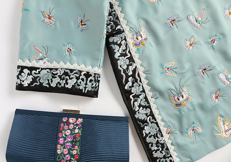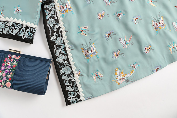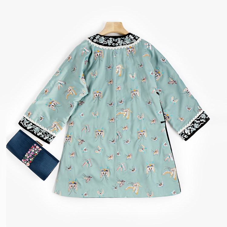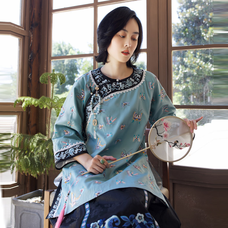 Антикварная ретро длинная осенняя куртка, с рукавом, с вышивкой, китайский стиль