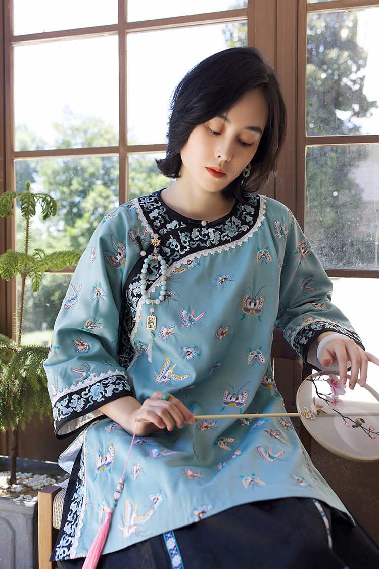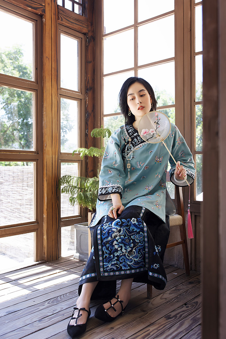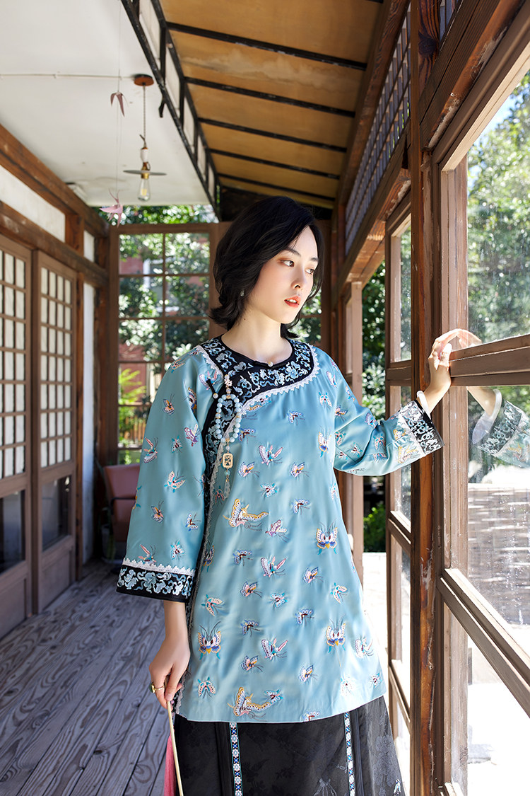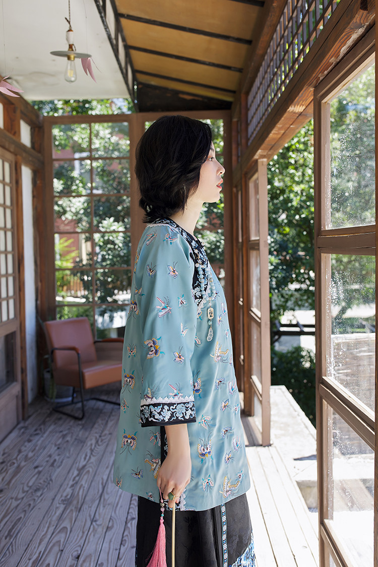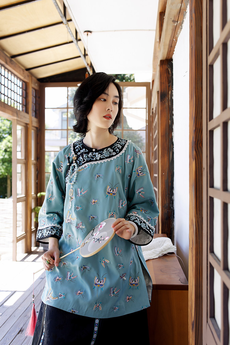 Антикварная ретро длинная осенняя куртка, с рукавом, с вышивкой, китайский стиль