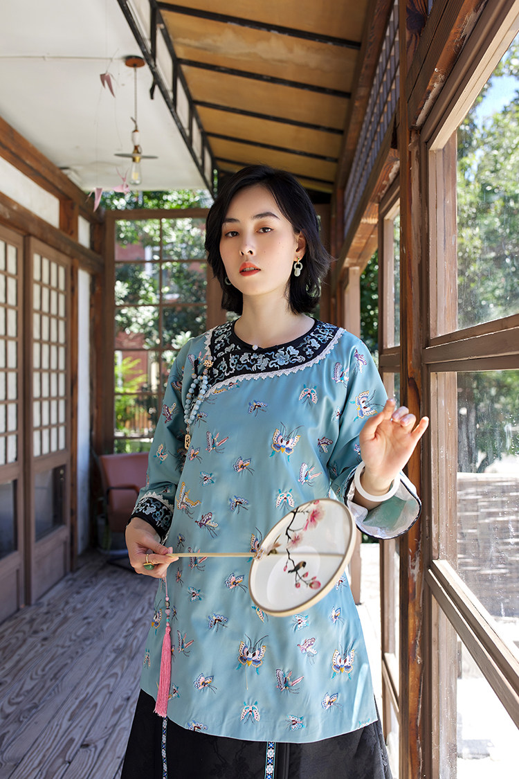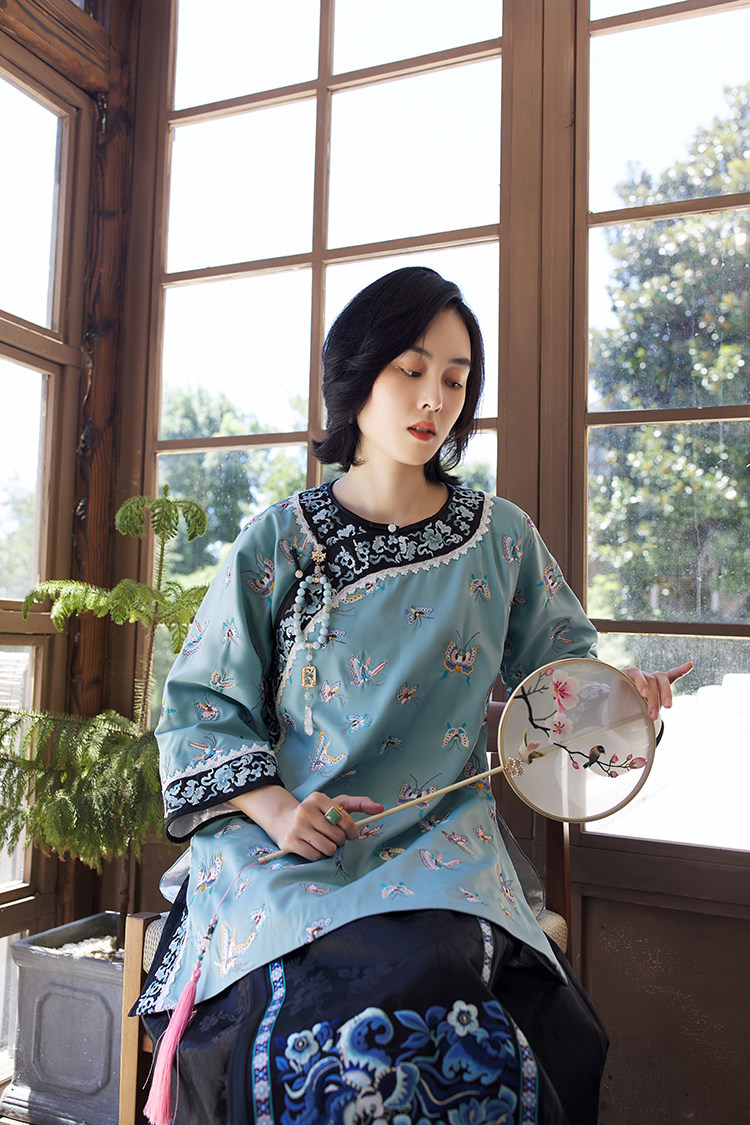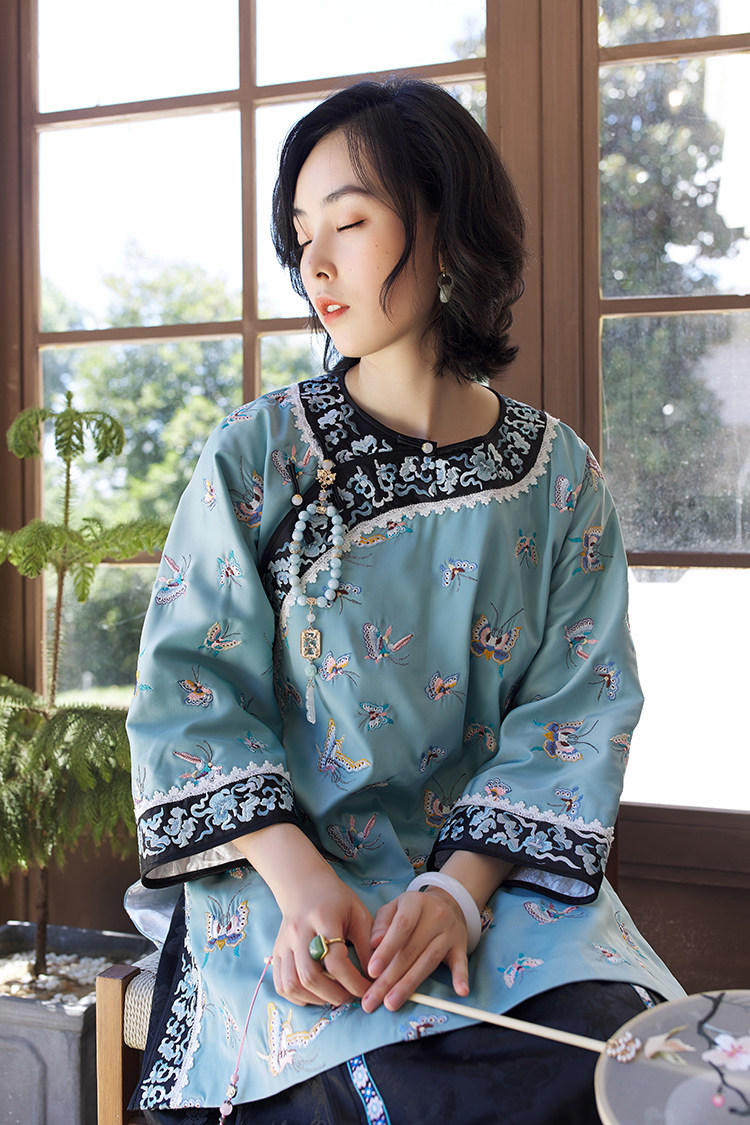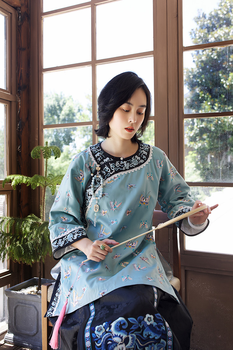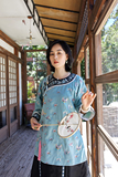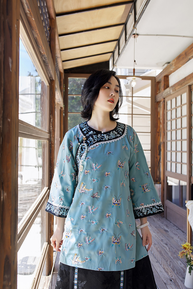 Антикварная ретро длинная осенняя куртка, с рукавом, с вышивкой, китайский стиль