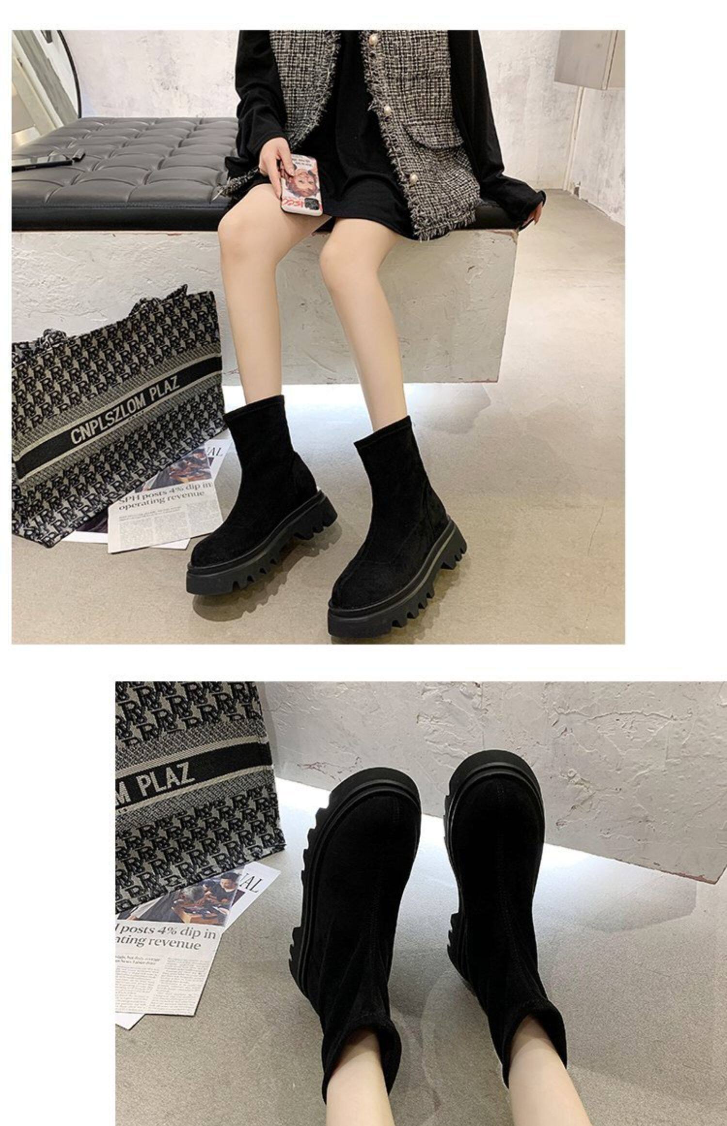 Martens, демисезонные эластичные ботинки, высокие короткие сапоги на платформе, 2020, популярно в интернете