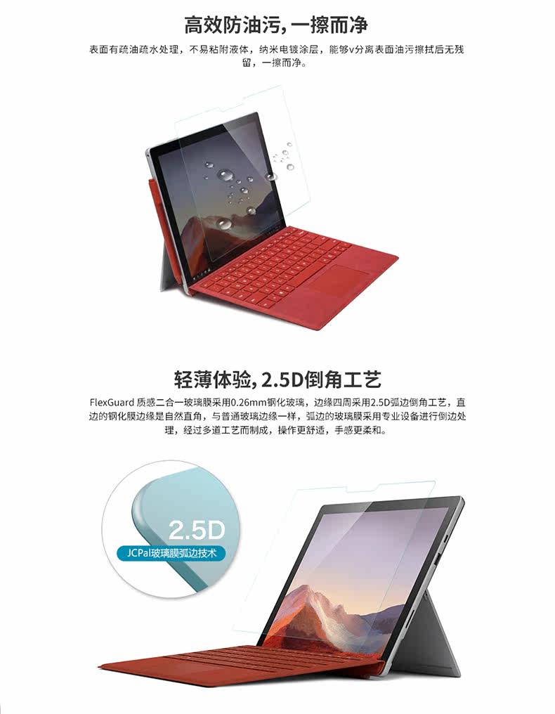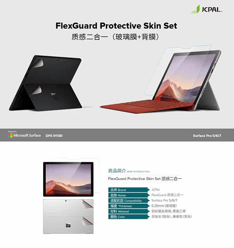JCPAL для Microsoft/Microsoft Surface Pro 5/6/7 Стеклянная пленка+задняя мембрана
