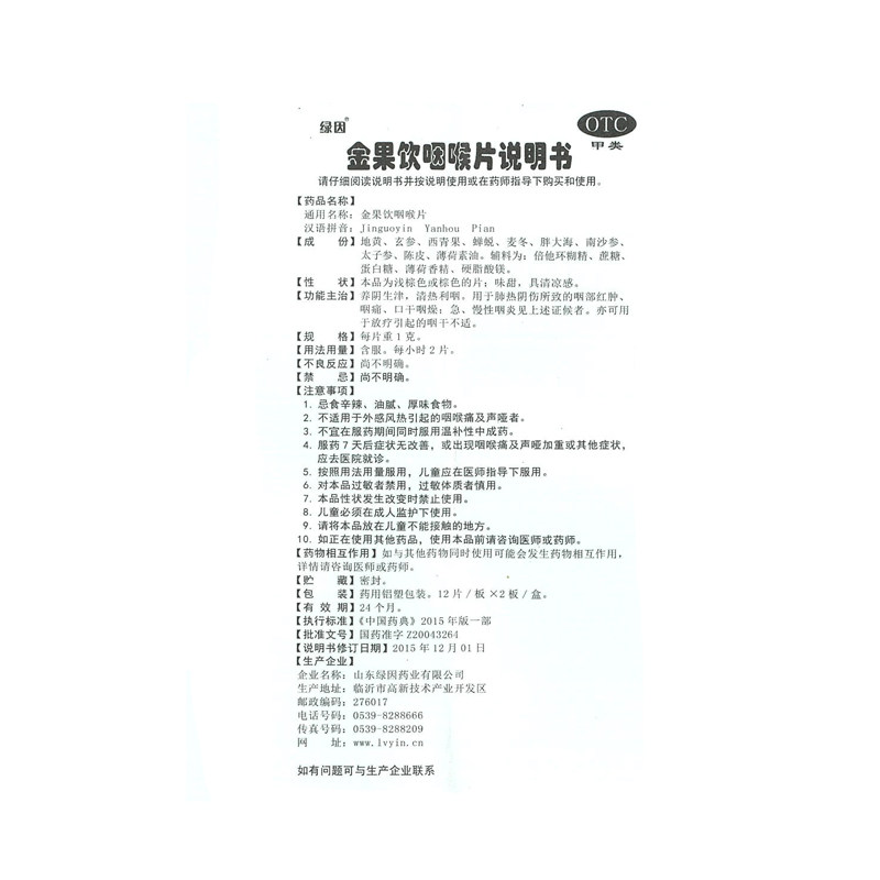 绿因 Золотые фрукты пьют горловые таблетки с 1 г*24 таблетки/коробку прозрачные легкие и легкие, хронический фарингит, горло, горло, тепло и горло