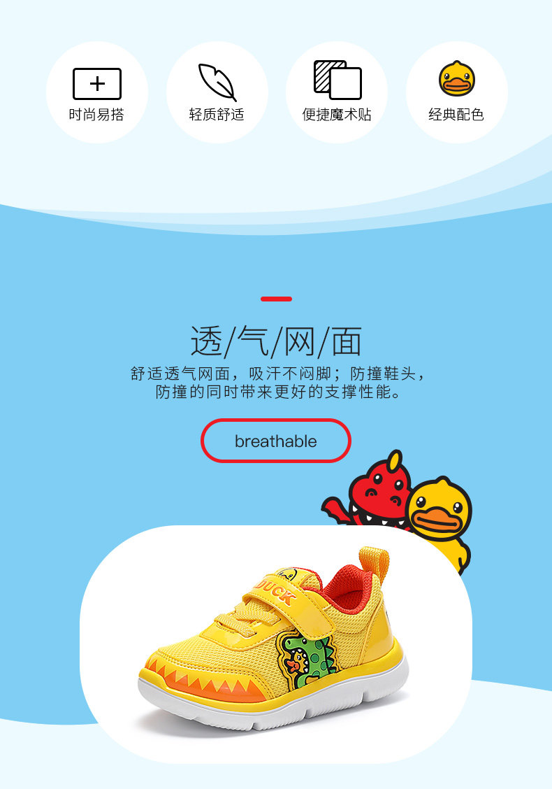 [小黄鸭童鞋春秋旅游单鞋网鞋儿童跑步鞋男童休闲鞋小孩运动鞋潮鞋]
