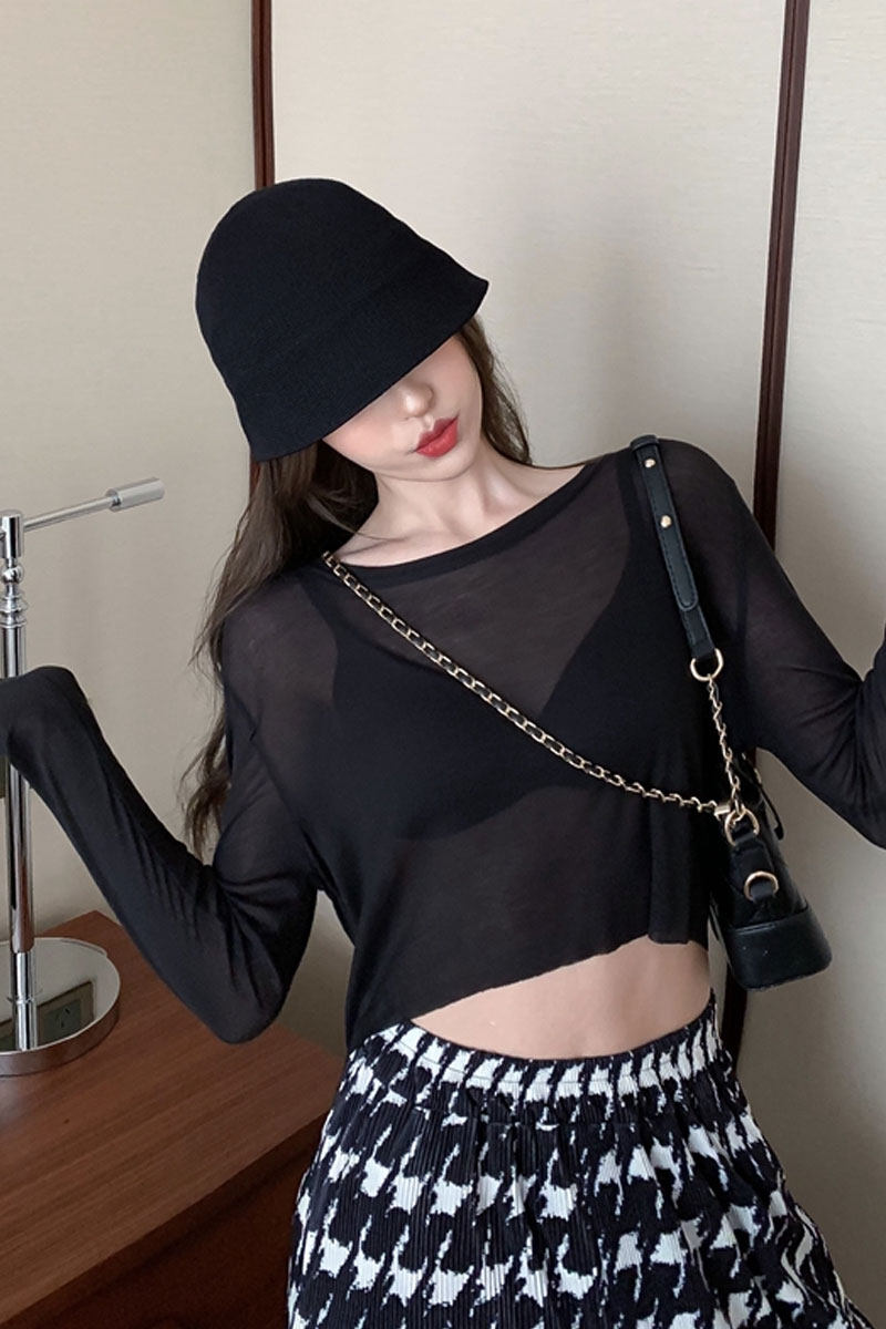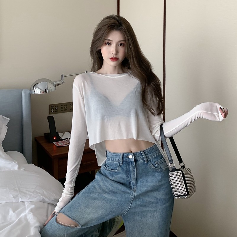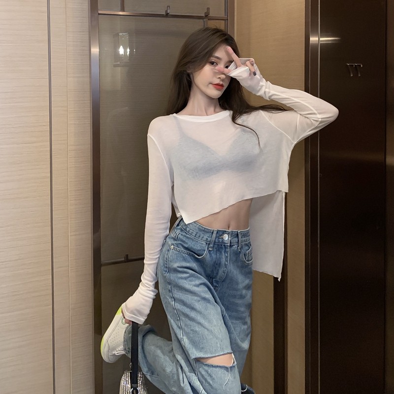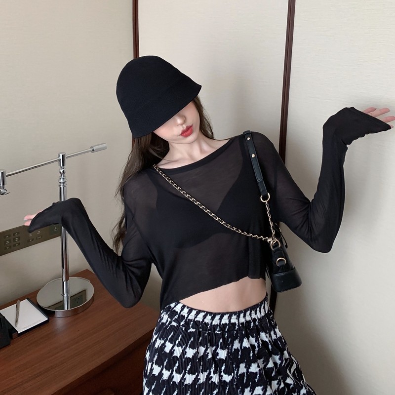 Лонгслив, сексуальная короткая базовая приятная телу футболка, защита от солнца