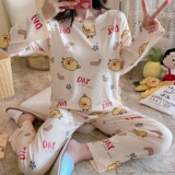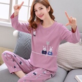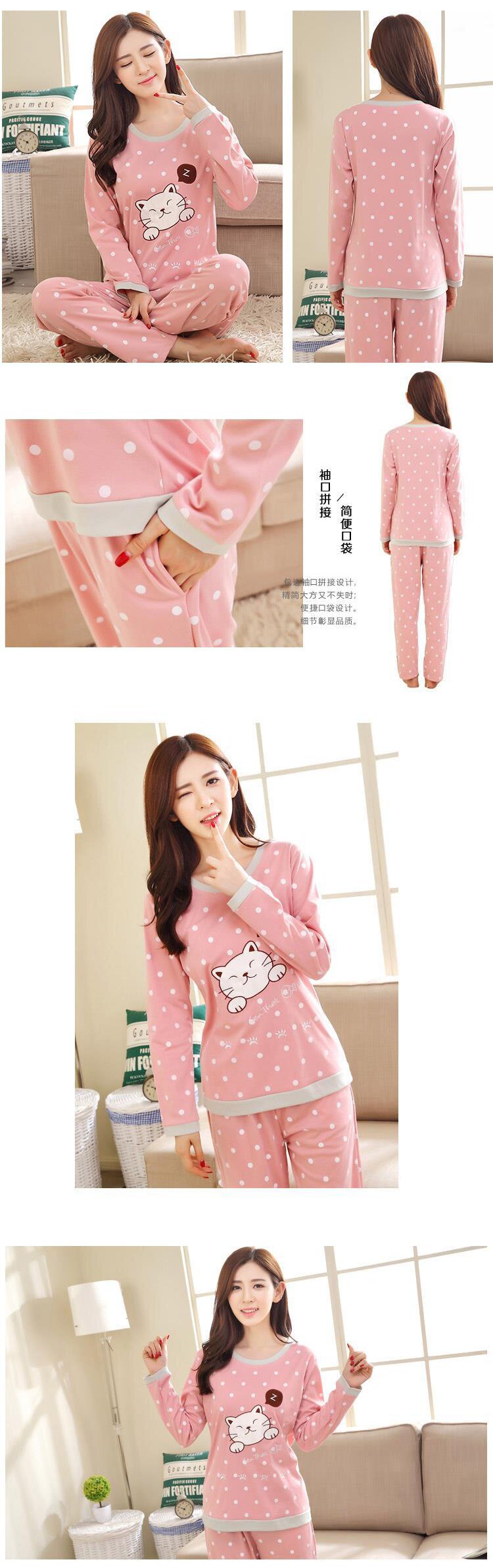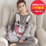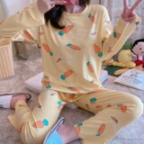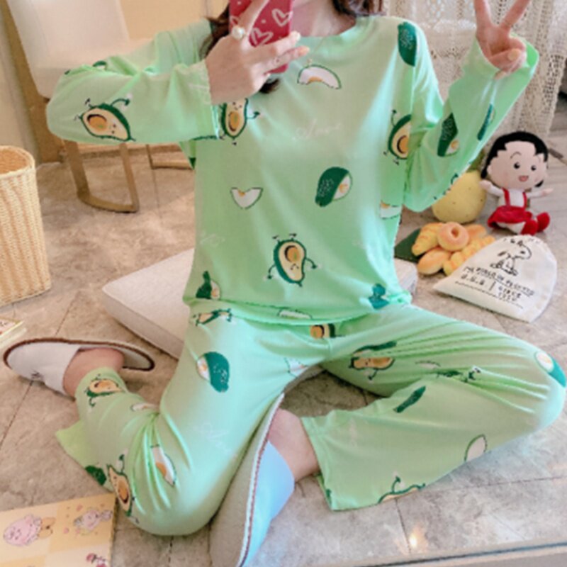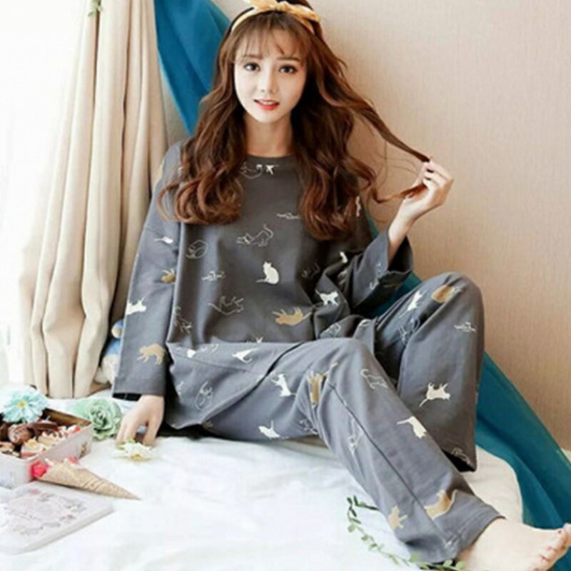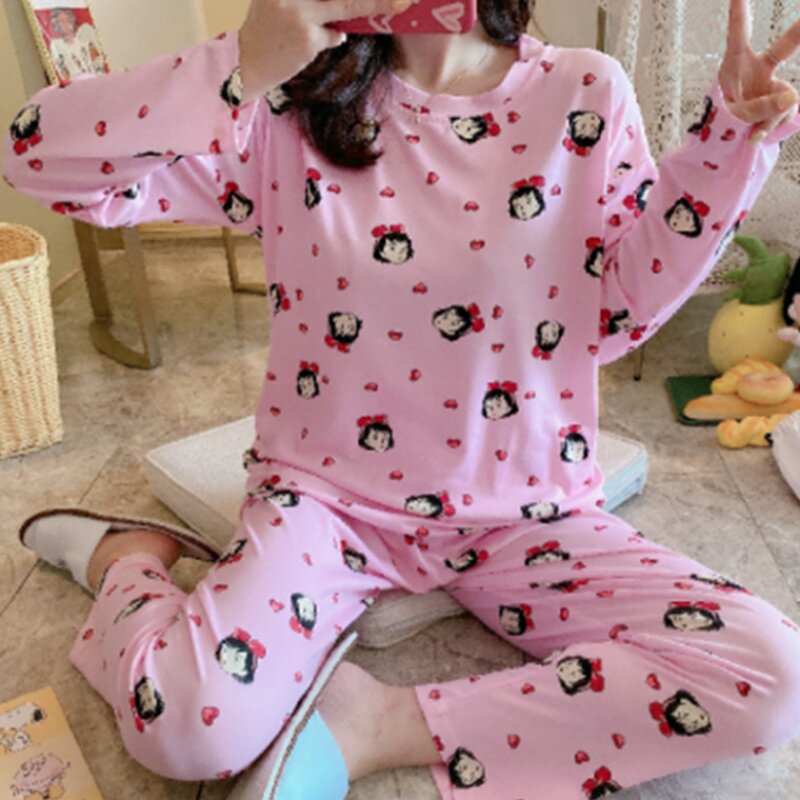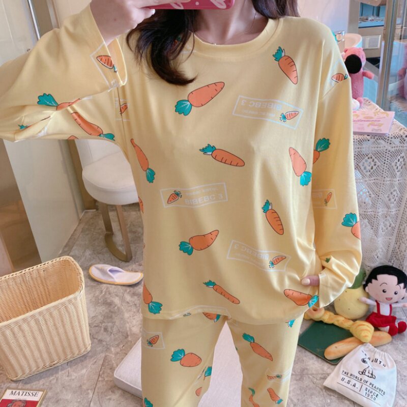Осенняя пижама, хлопковый летний лонгслив, милый комплект для отдыха, большой размер