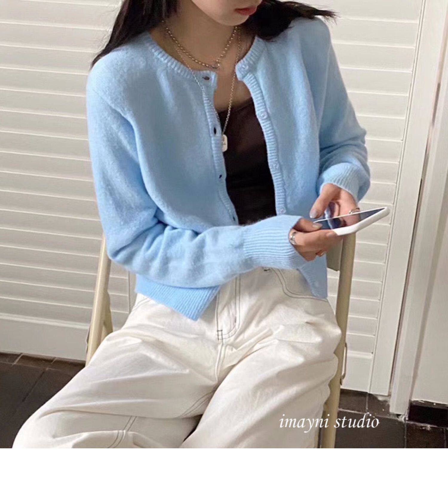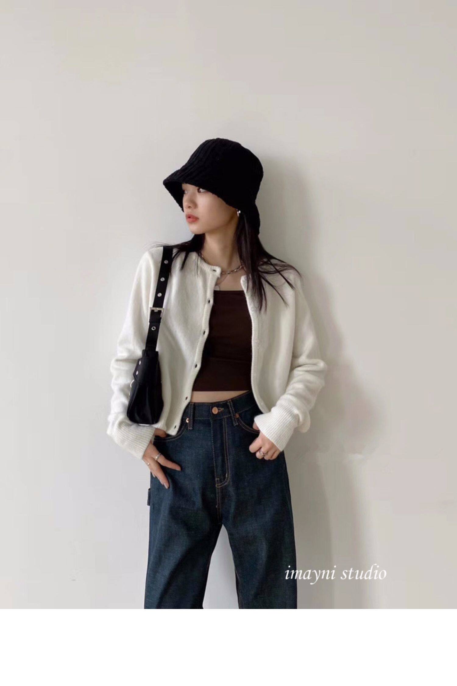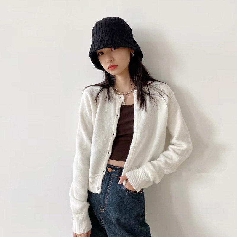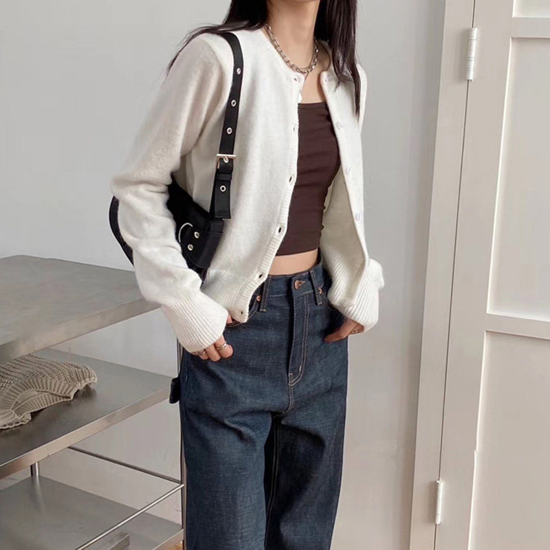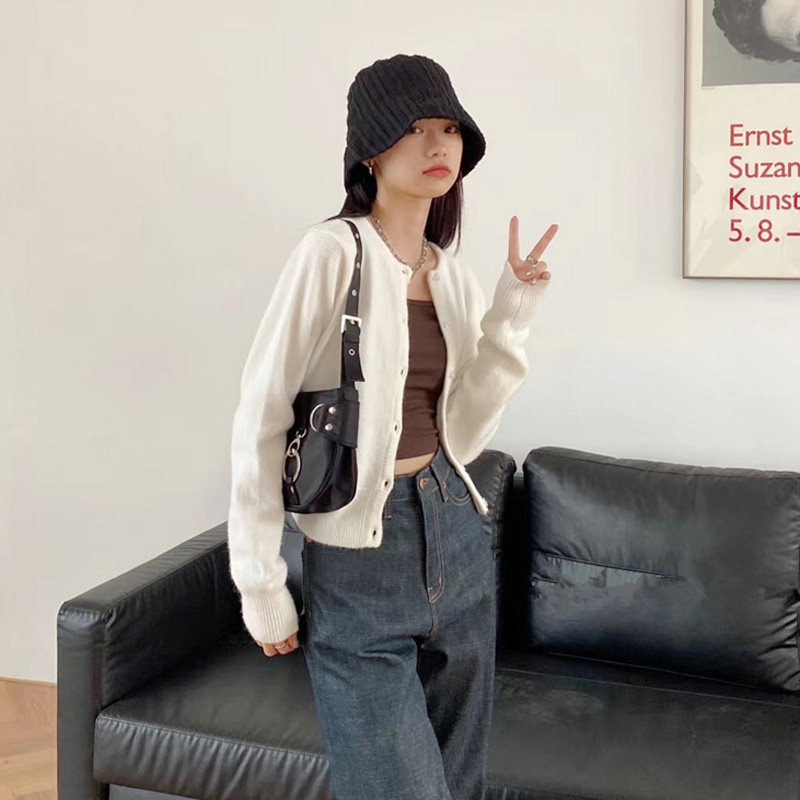 Брендовый белый короткий свитер для школьников и студентов, куртка, трикотажный кардиган, французский стиль