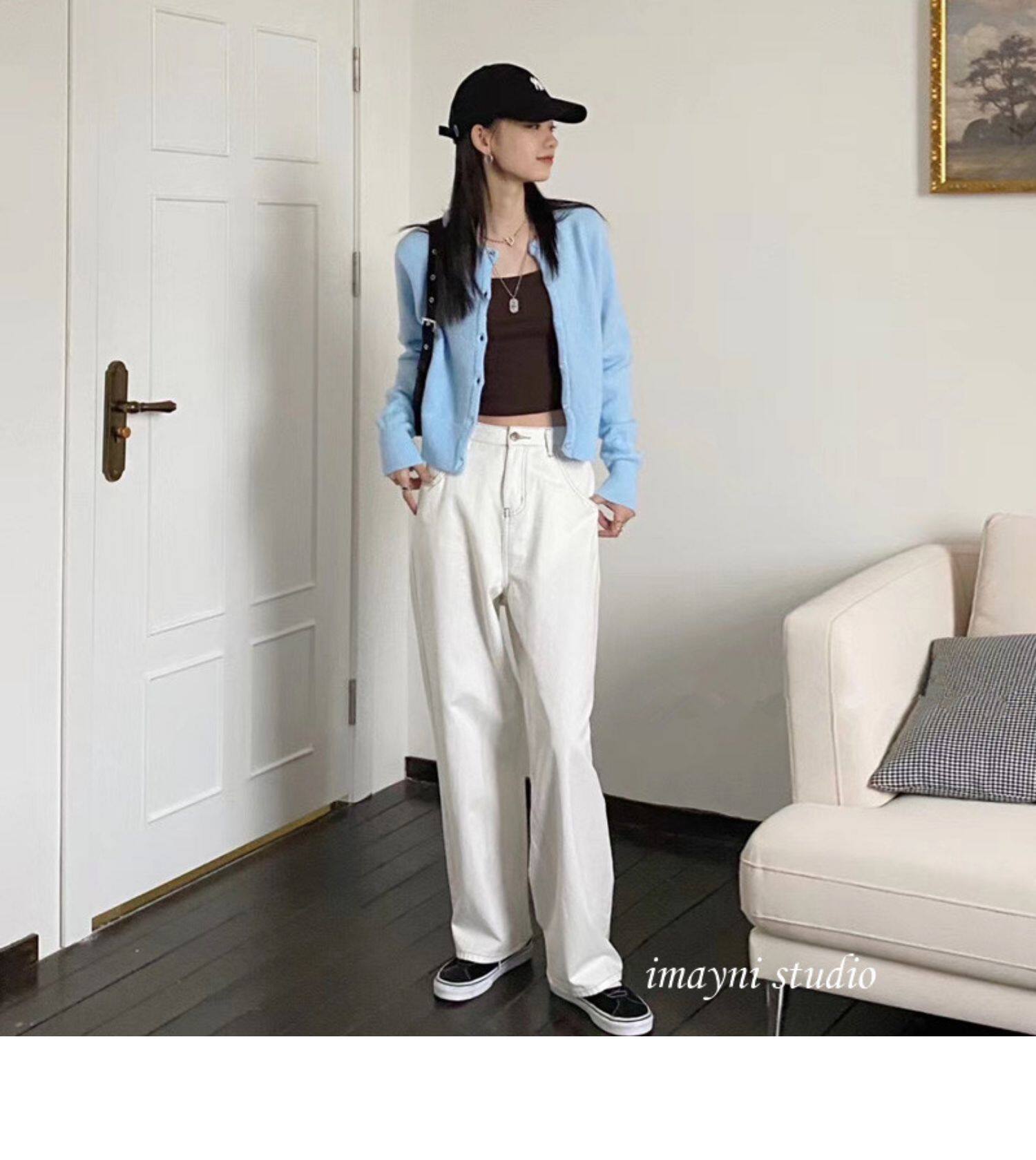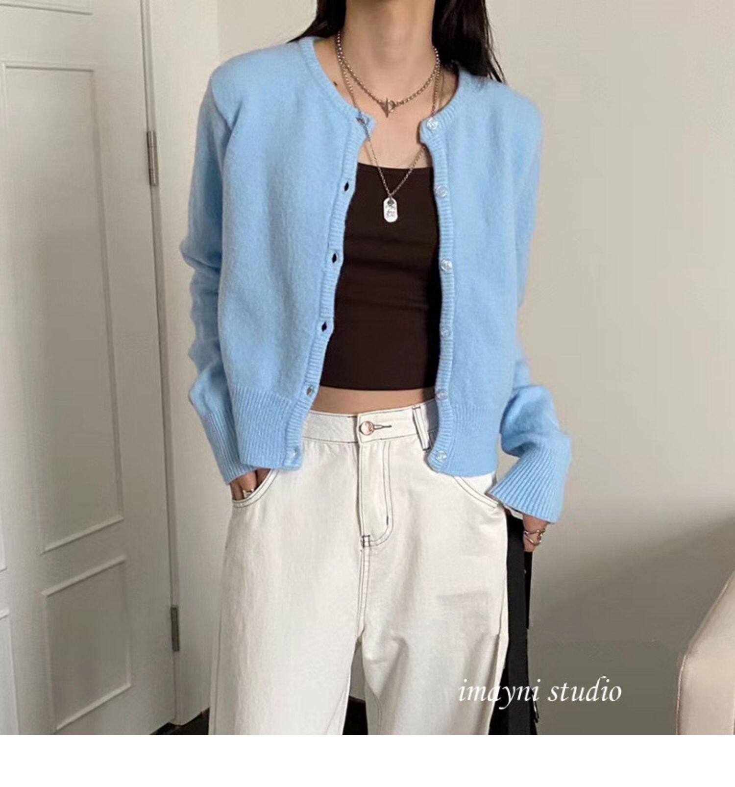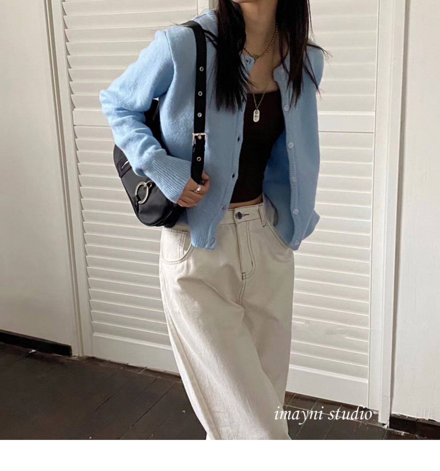 Брендовый белый короткий свитер для школьников и студентов, куртка, трикотажный кардиган, французский стиль