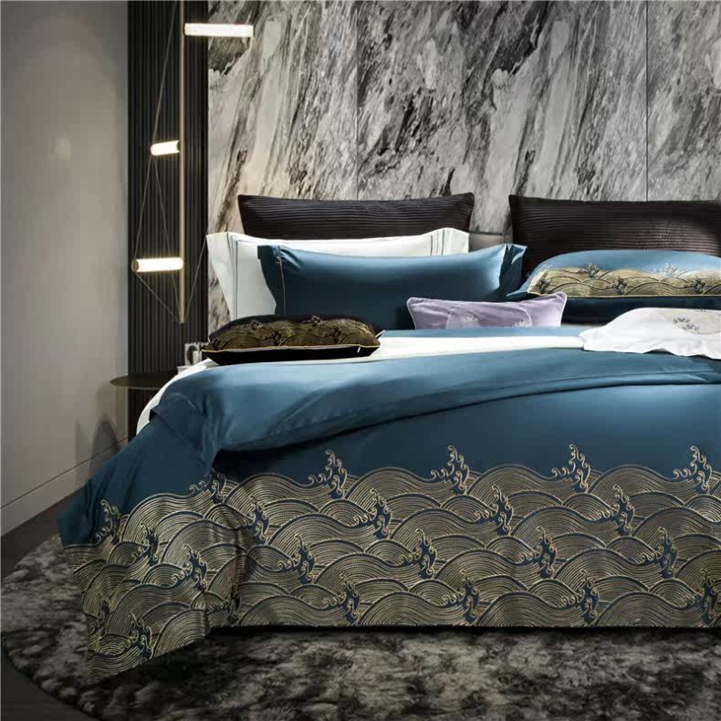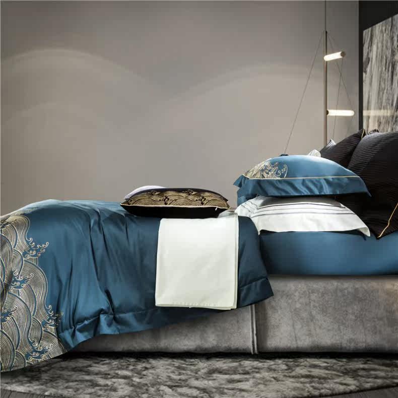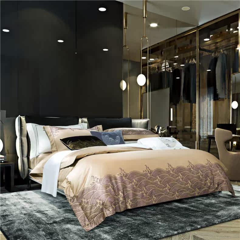 Элитный хлопковый комплект, вилла, китайский стиль, 140 шт, с вышивкой, 4 предмета, европейский стиль, легкий роскошный стиль, постельные принадлежности