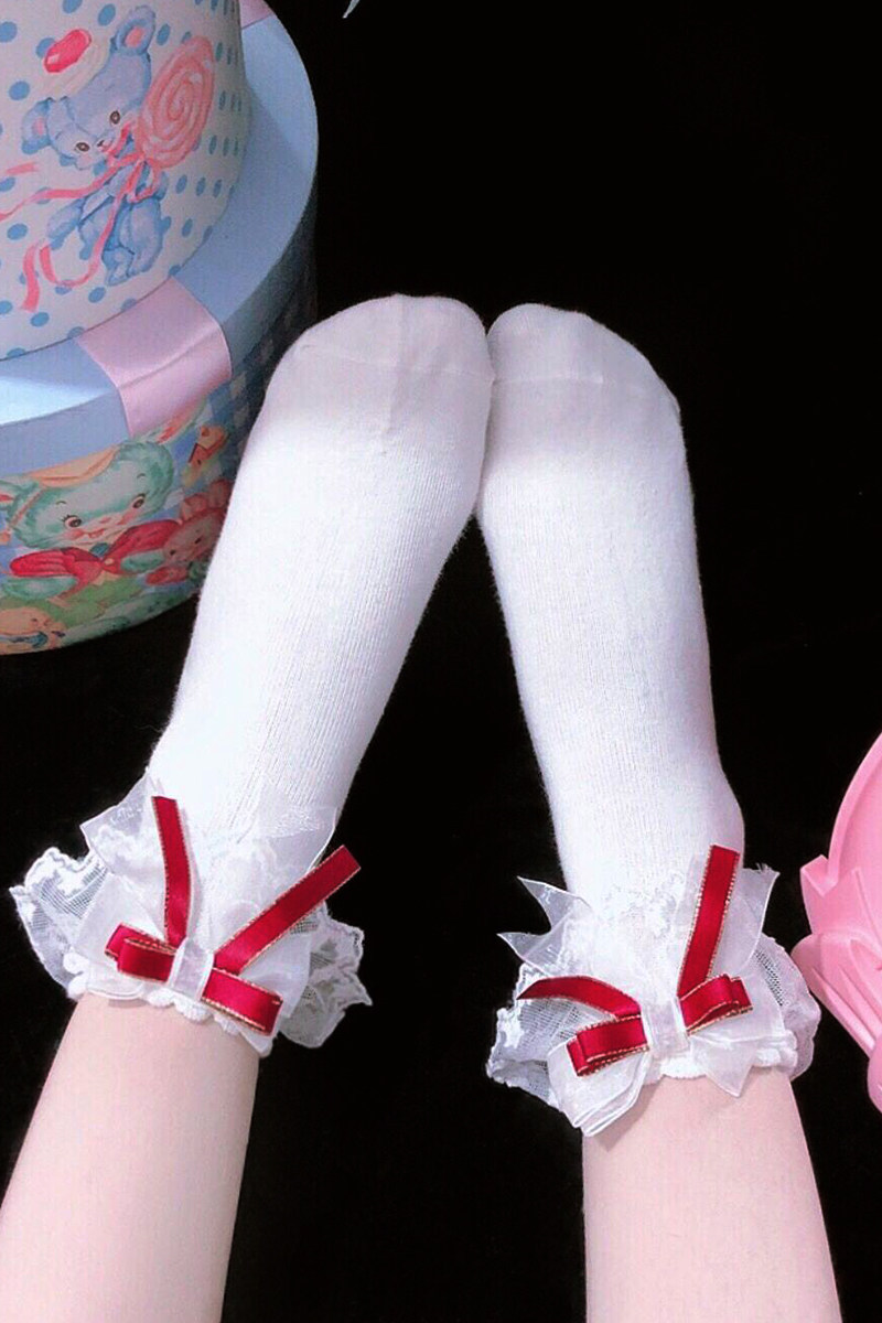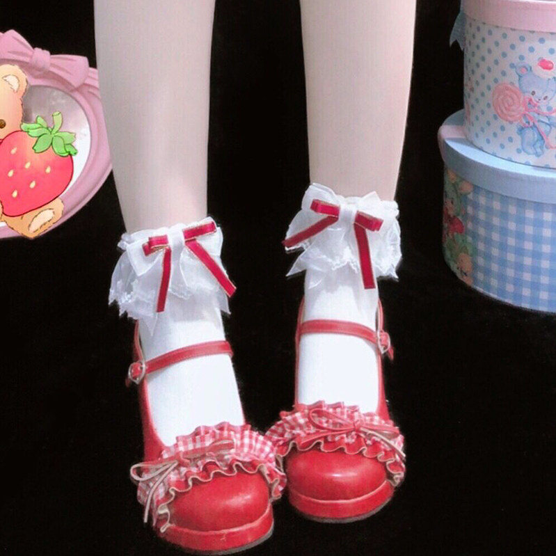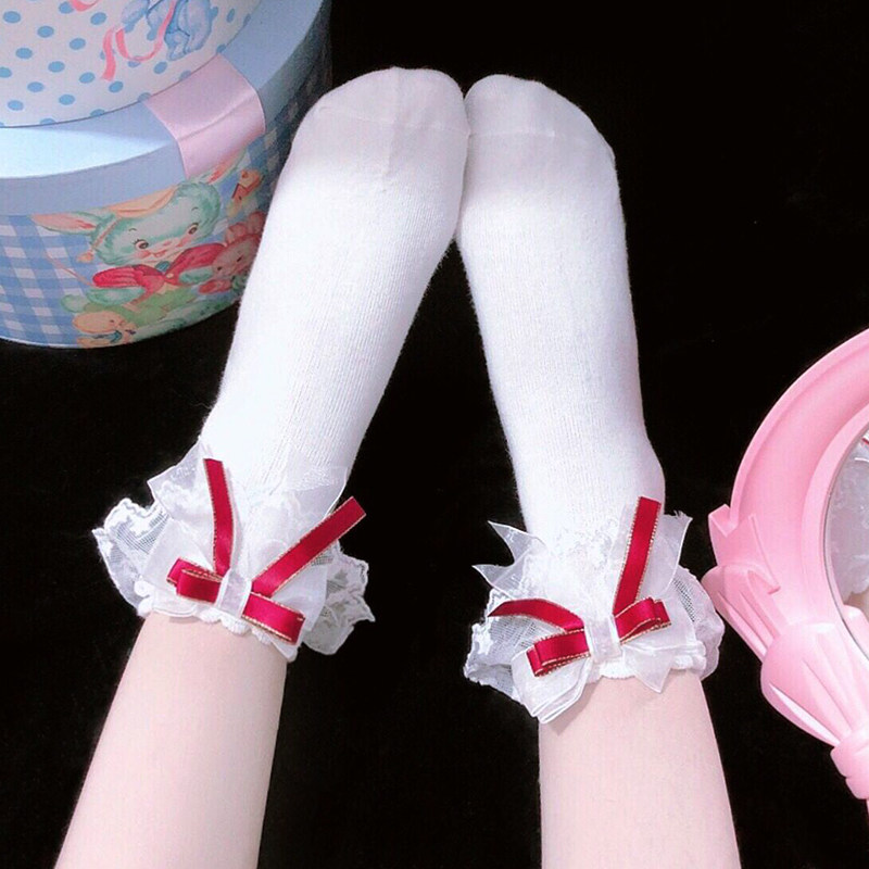 Японские кружевные милые хлопковые носки с бантиком, стиль Лолита, кружевное платье