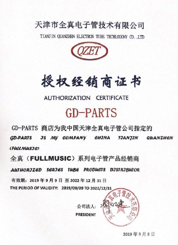 Компания имеет Tianjin Quanzhen Fullmusic Factory официально отметила сертификат лицензии, чтобы гарантировать, что каждая электронная трубка является совершенно новой оригинальной подлинной.
