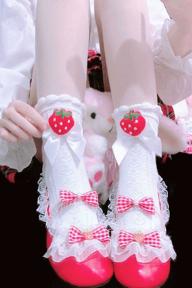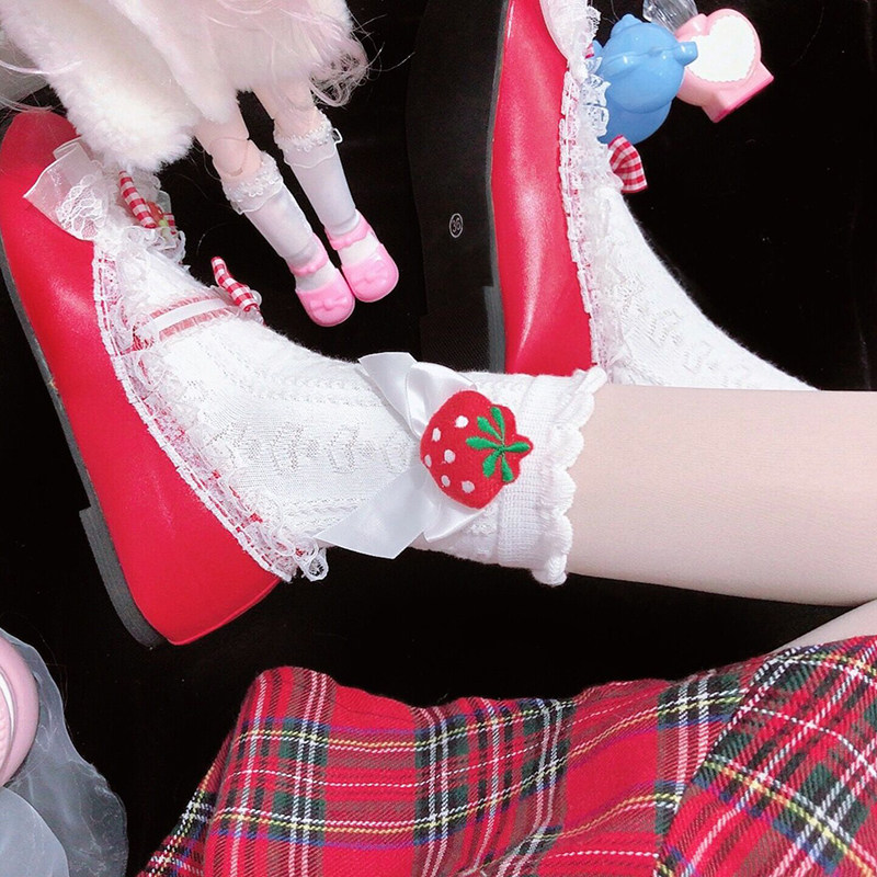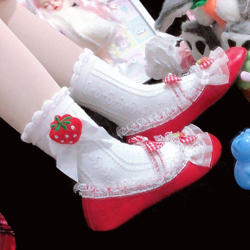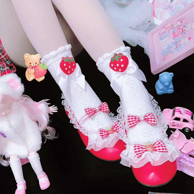 Японская милая хлопковая клубника с бантиком, носки, стиль Лолита