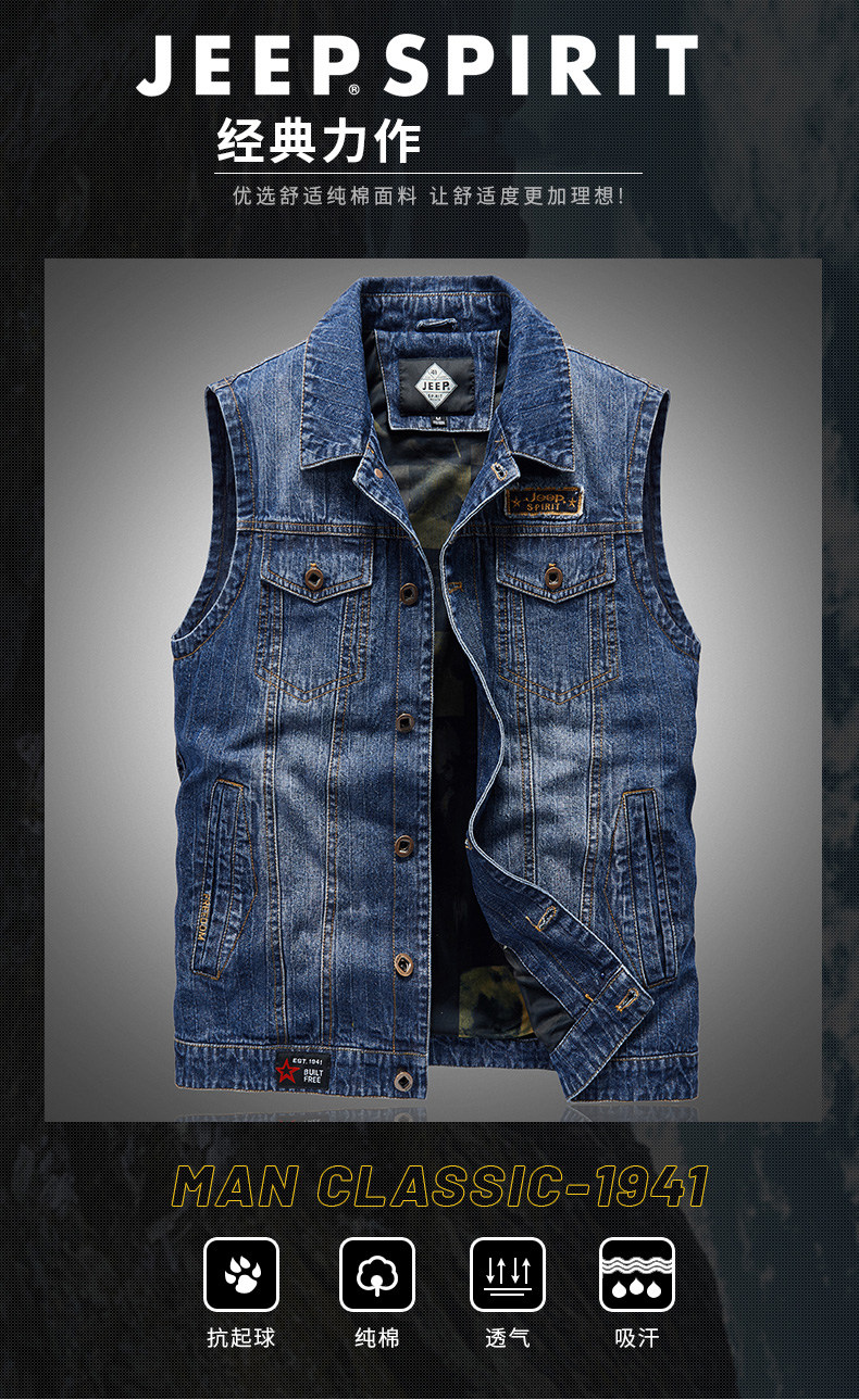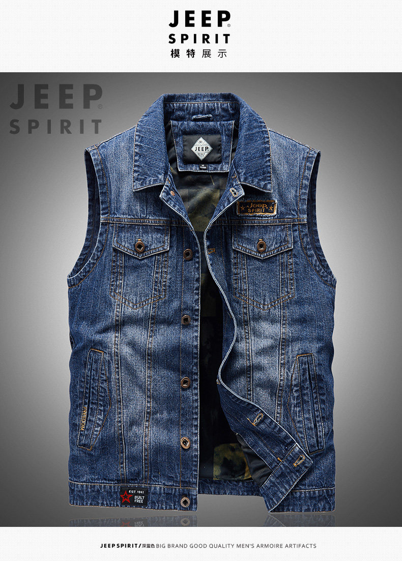 Jeep, джинсовый джип, мужской осенний тонкий жилет, дорожная майка топ, куртка, оверсайз, в корейском стиле
