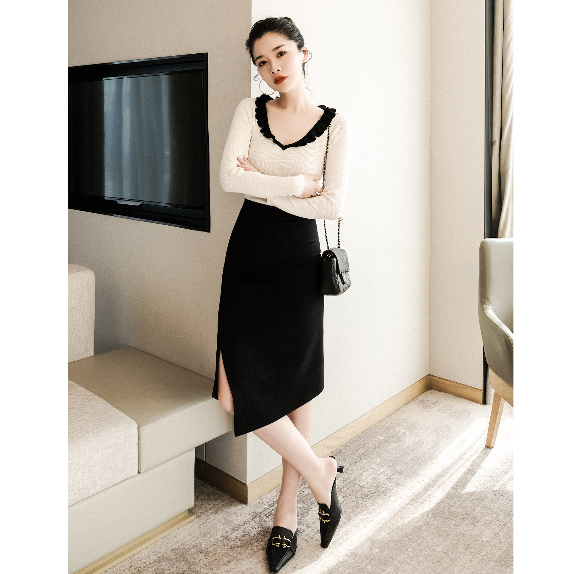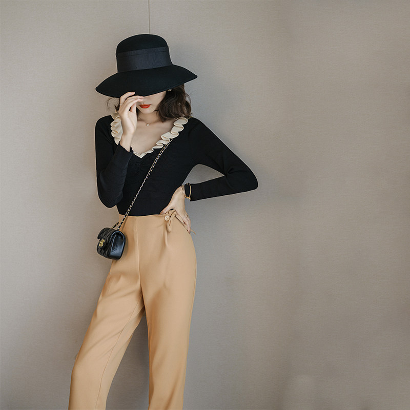 Оригинальный трикотажный осенний базовый приятный телу свитер, 2020 года