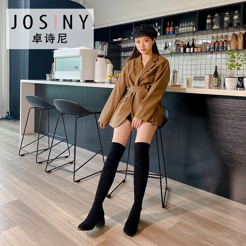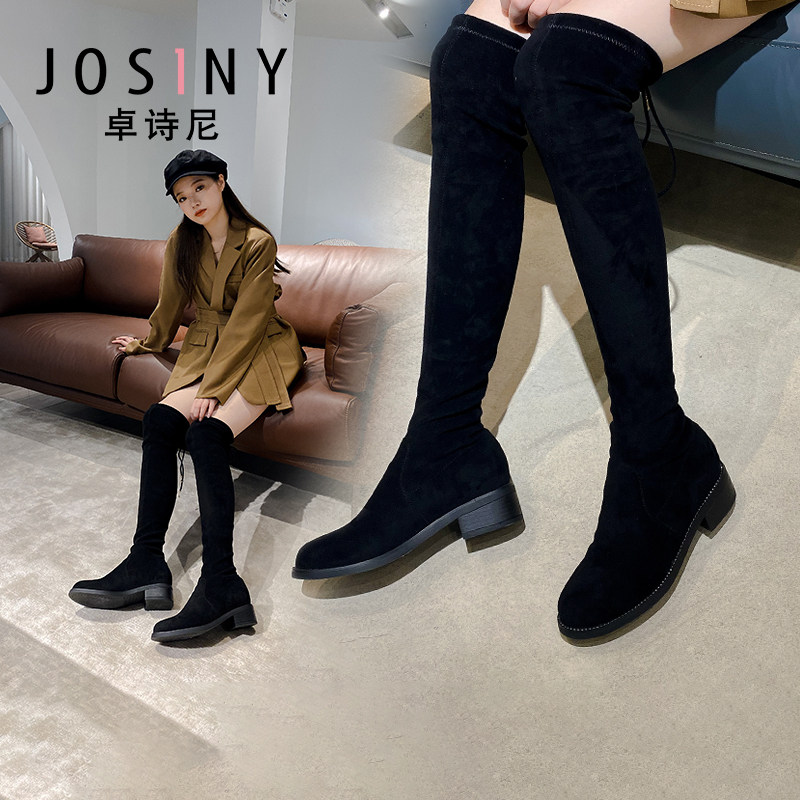 Сапоги, модные универсальные демисезонные замшевые эластичные ботинки, коллекция 2021