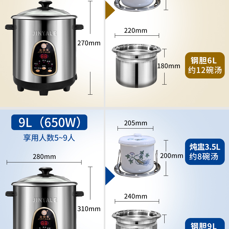 - Многофункциональный 9-литр с 3,5-литровым тушеном горшком/5-9 человек