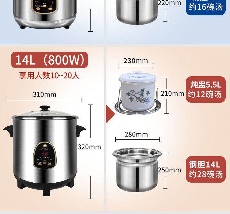- Многофункциональный 14-литровый с 5,5-литровым тушеном горшком/10-20 человек