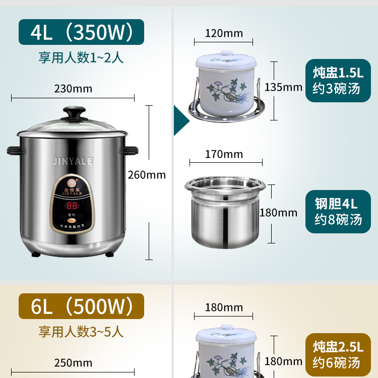 - Одиночная функция 6 литр с 2,5-литровым тушеном горшком/подходящим 3-5 человек