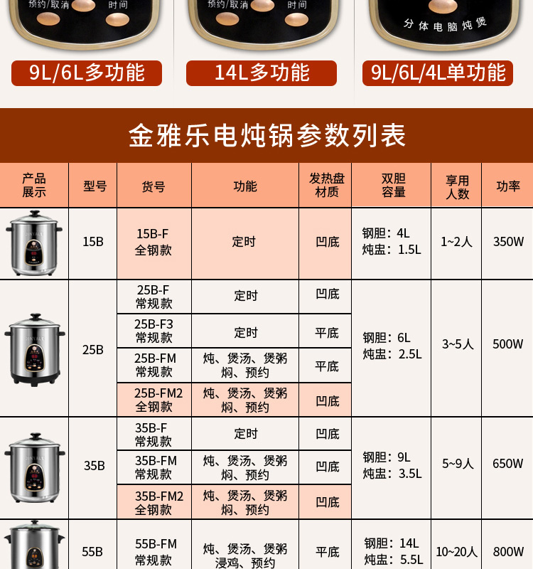 - Единственная функция 9 литров (без тушеного котла) подходит для 5-9 человек