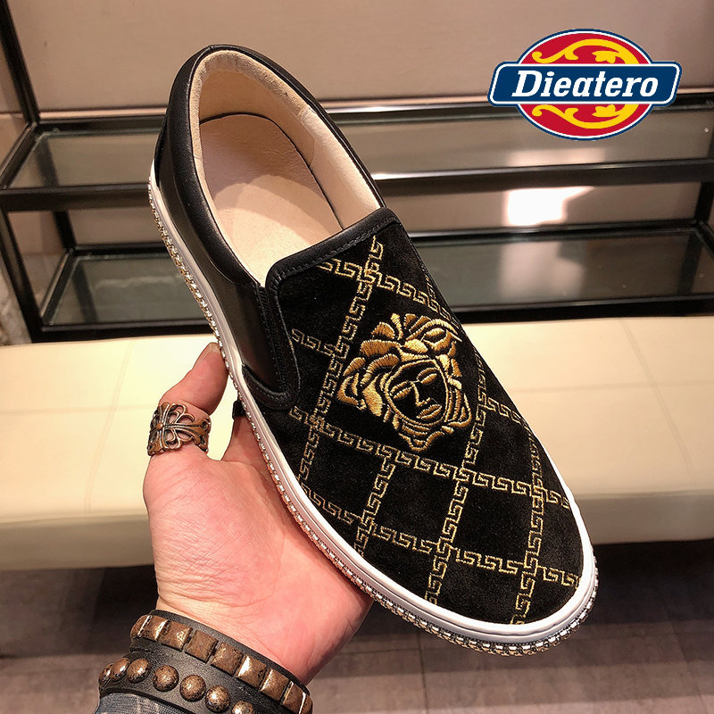 Европейские кожаные лоферы из нубука со вкусом, мужские повседневные ленивые повседневные модные брендовые мужские туфли на одной ноге Medusa