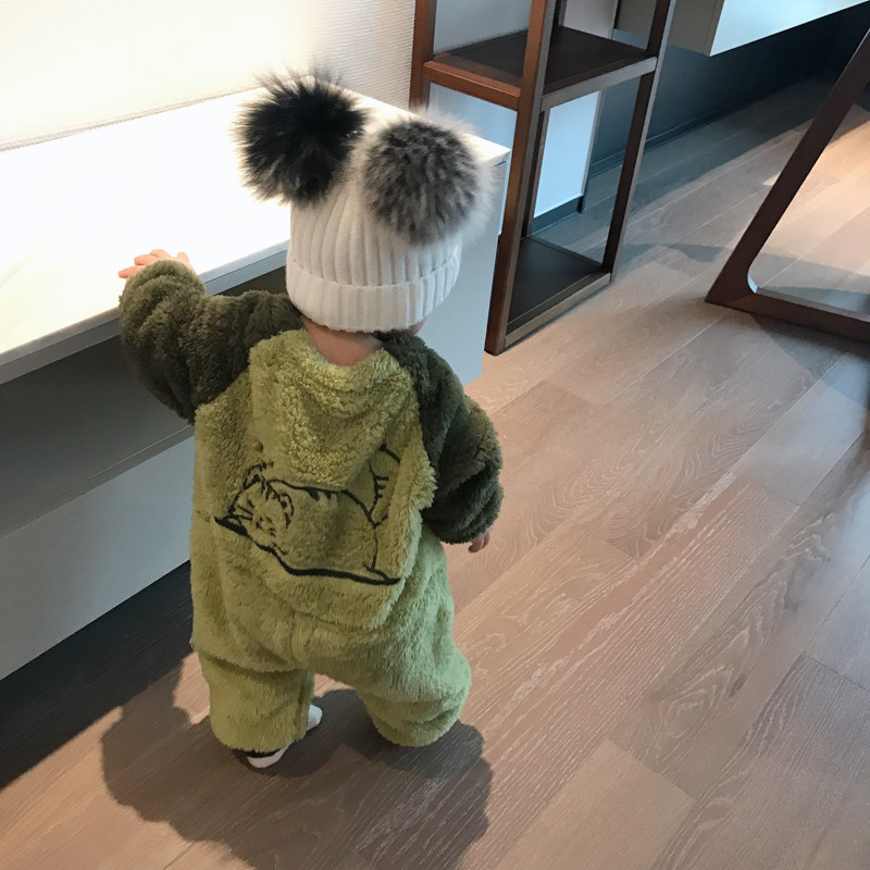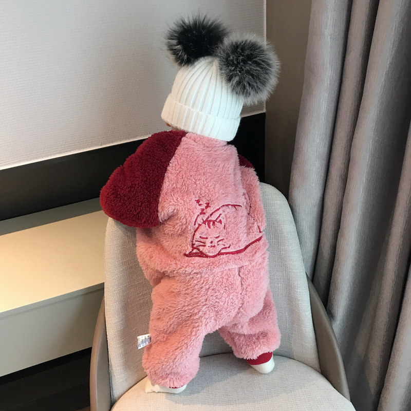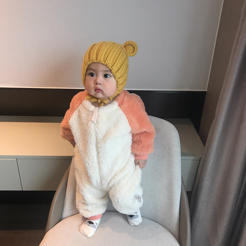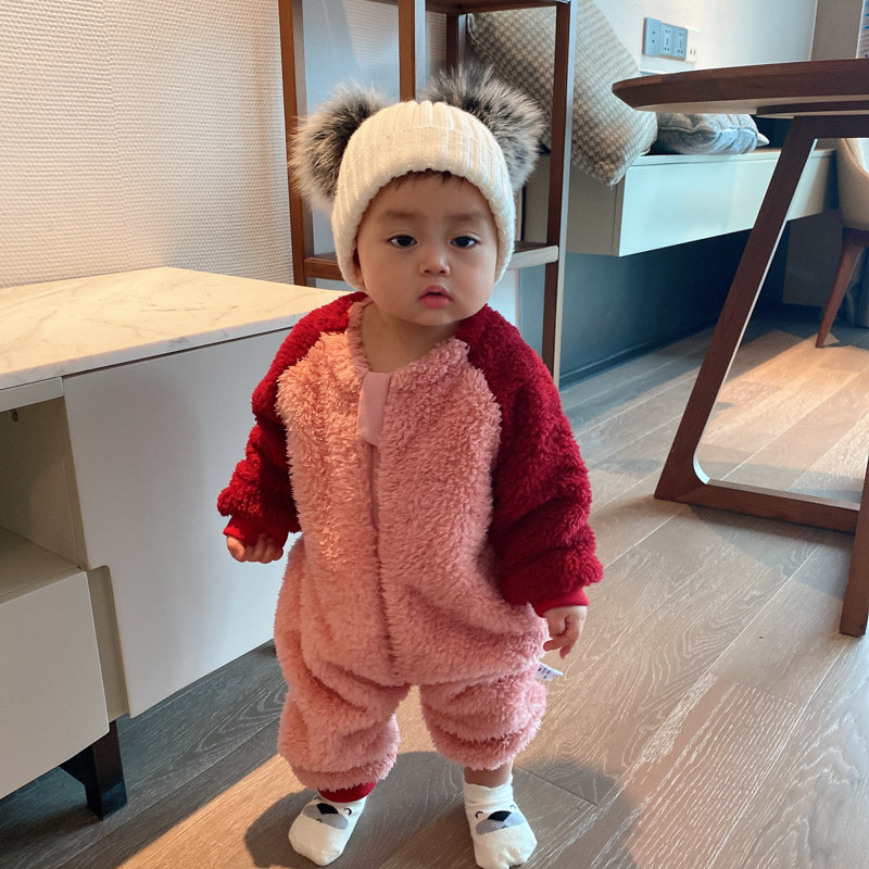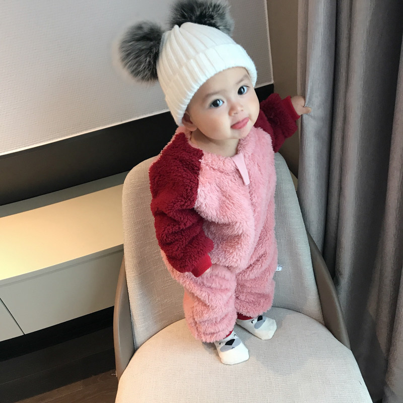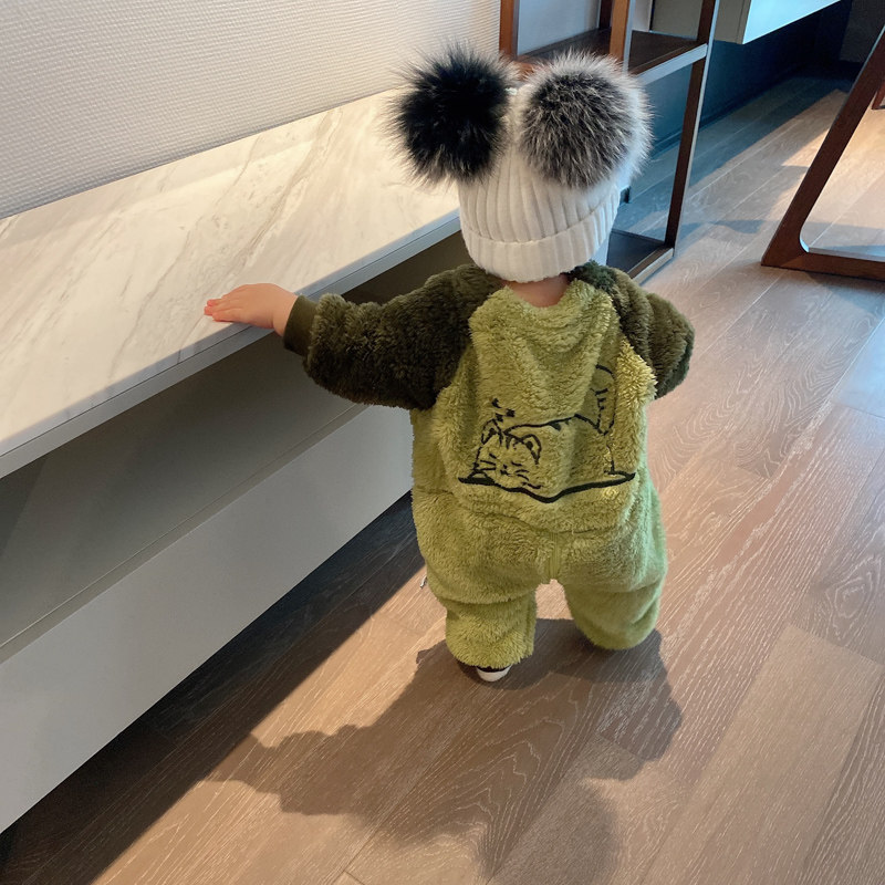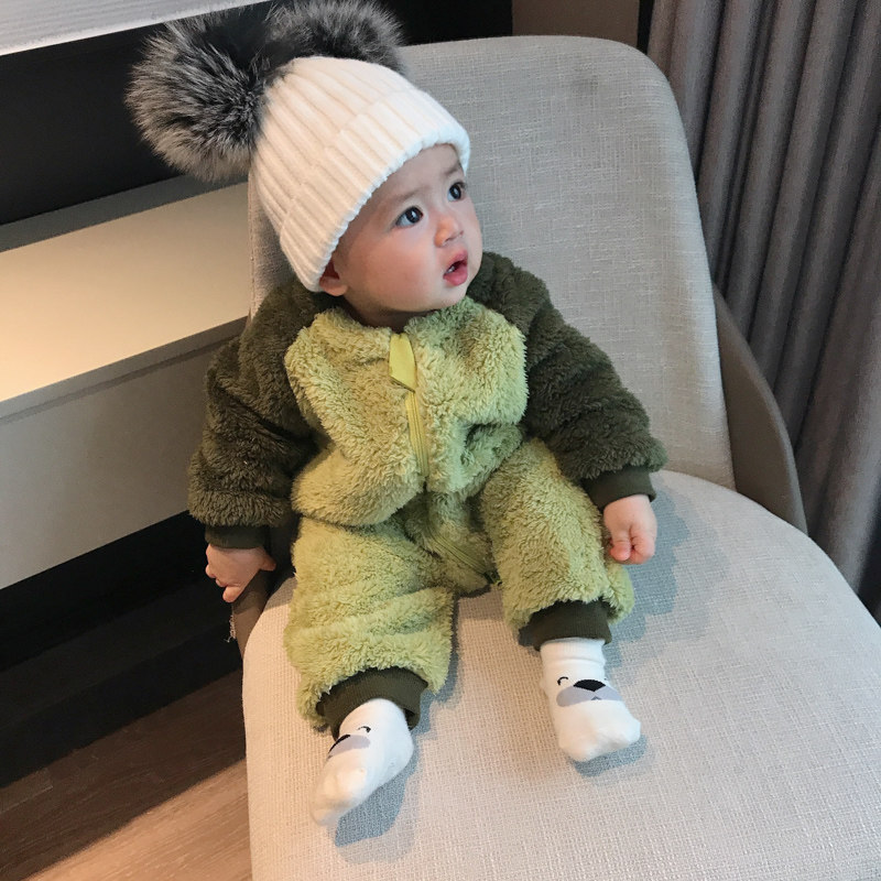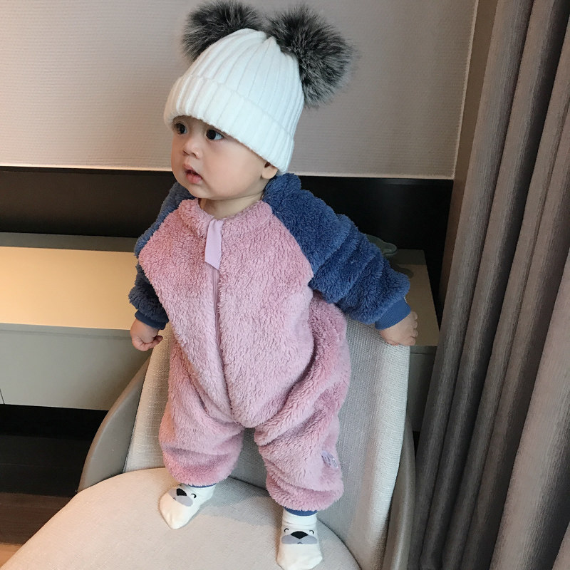 蓓莱乐 Детский пуховик, комплект, детское боди, фланелевая бархатная коралловая пижама для новорожденных, увеличенная толщина
