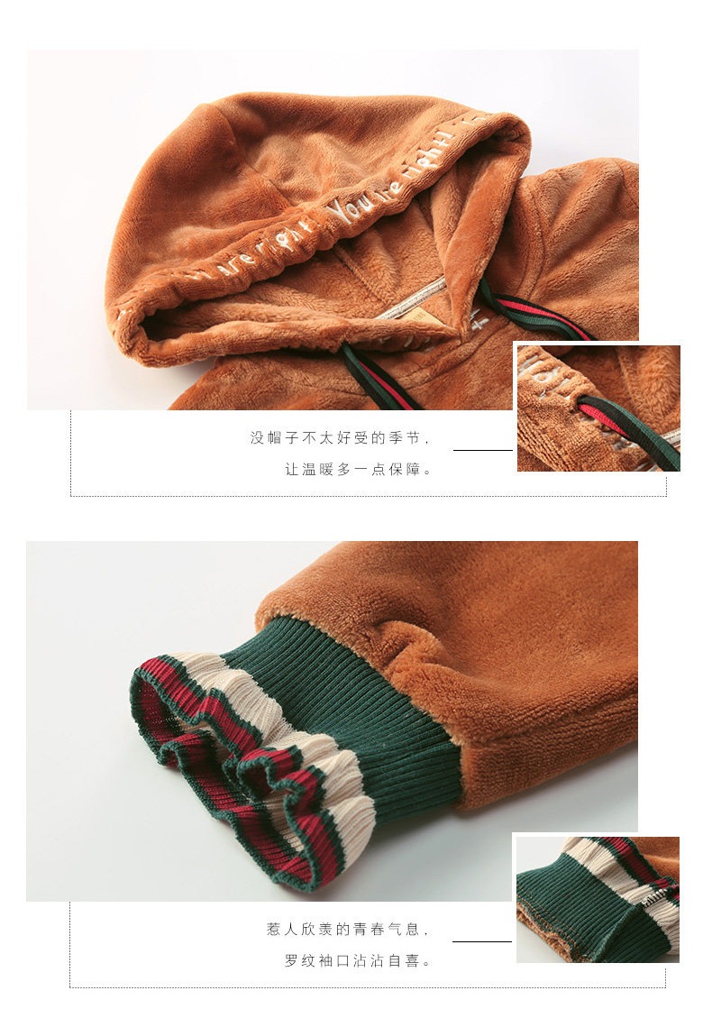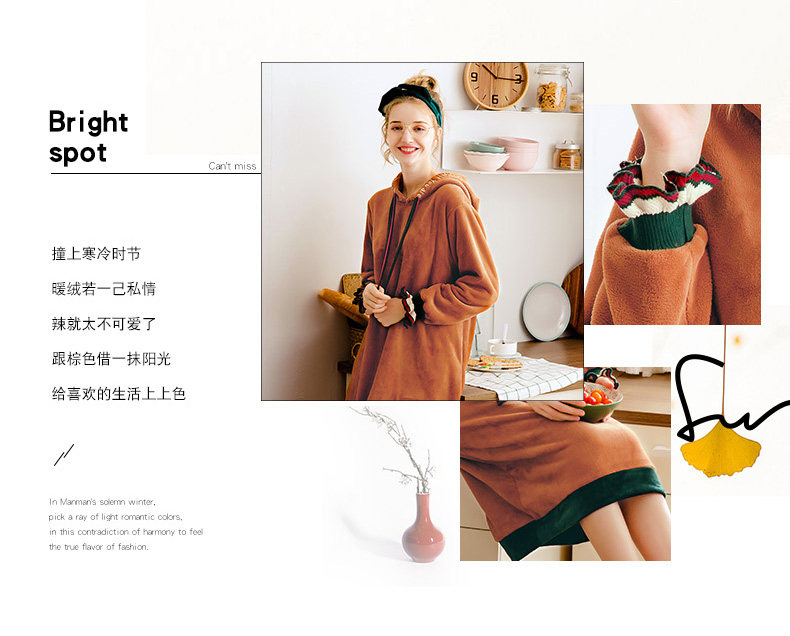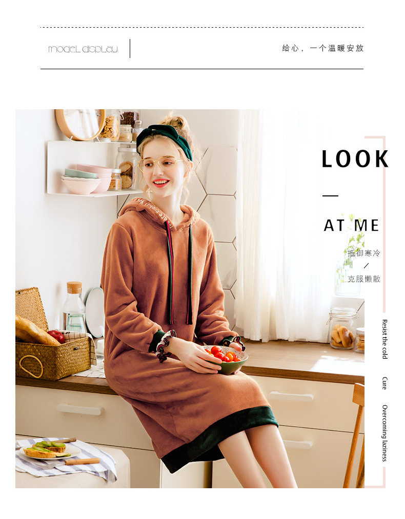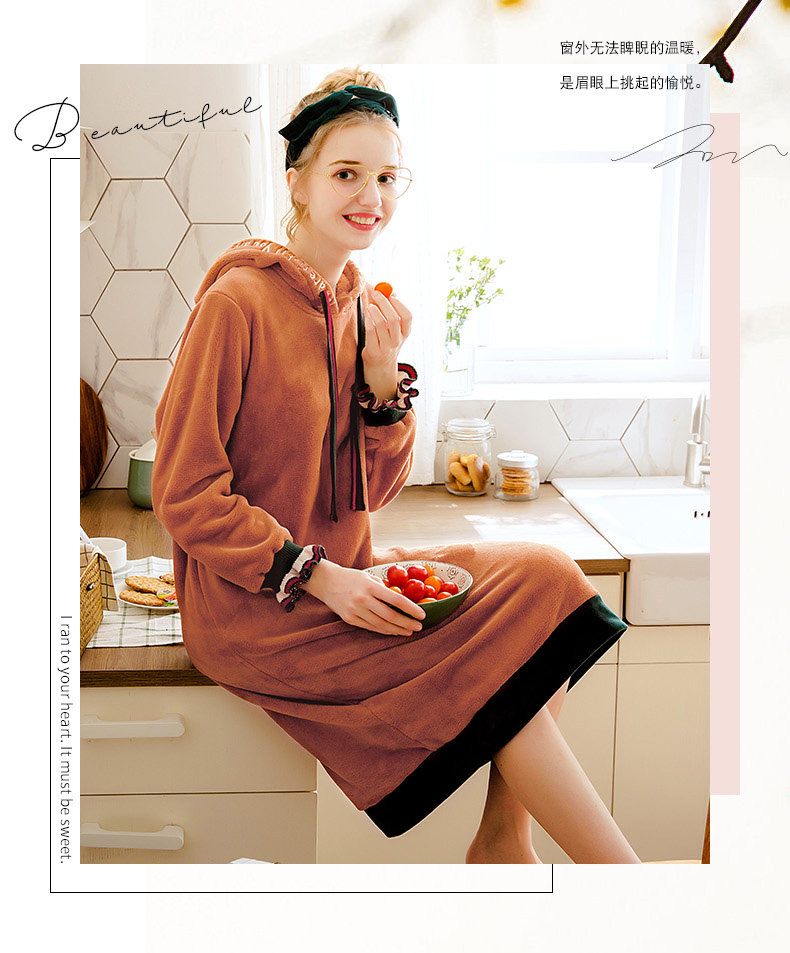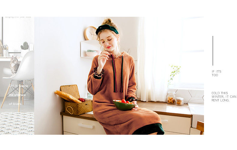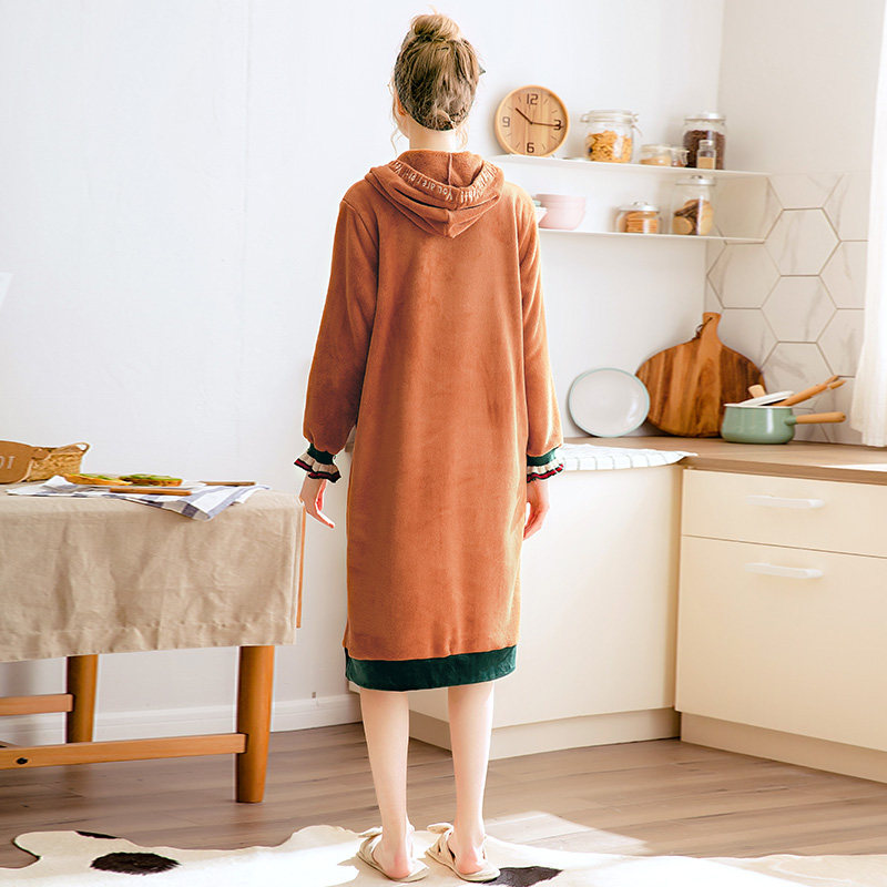 芬腾 Коралловая бархатная демисезонная пижама, юбка, толстовка с капюшоном, фланелевое платье, увеличенная толщина