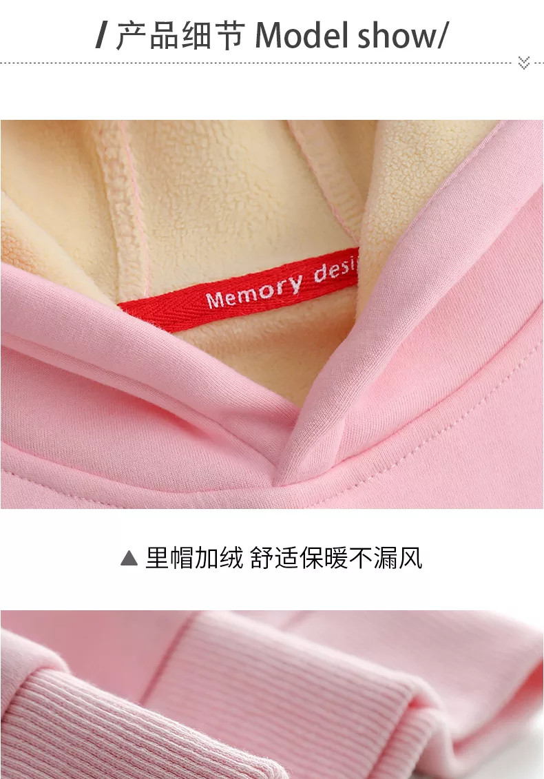 Розовая бархатная детская демисезонная утепленная зимняя толстовка с капюшоном, подходит для подростков, в западном стиле