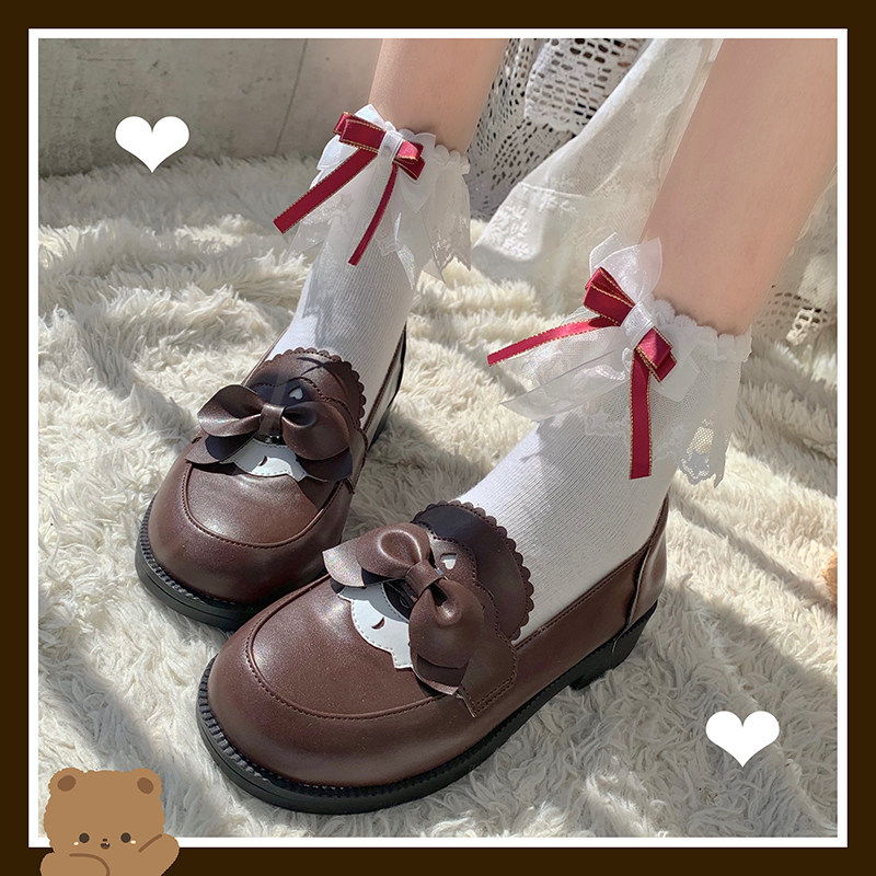 Милые хлопковые японские кружевные носки для принцессы с бантиком, стиль Лолита, кружевное платье