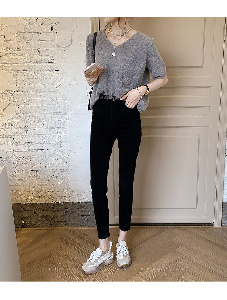 Джинсовые приталенные эластичные штаны, коллекция 2021, высокая талия, облегающий крой, свободный прямой крой