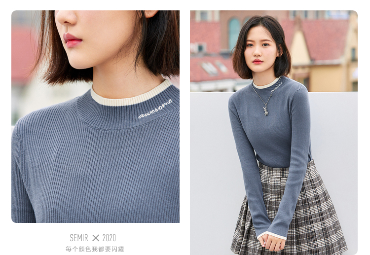 Semir, осенний приятный телу трикотажный свитер, 2020 года, высокий воротник